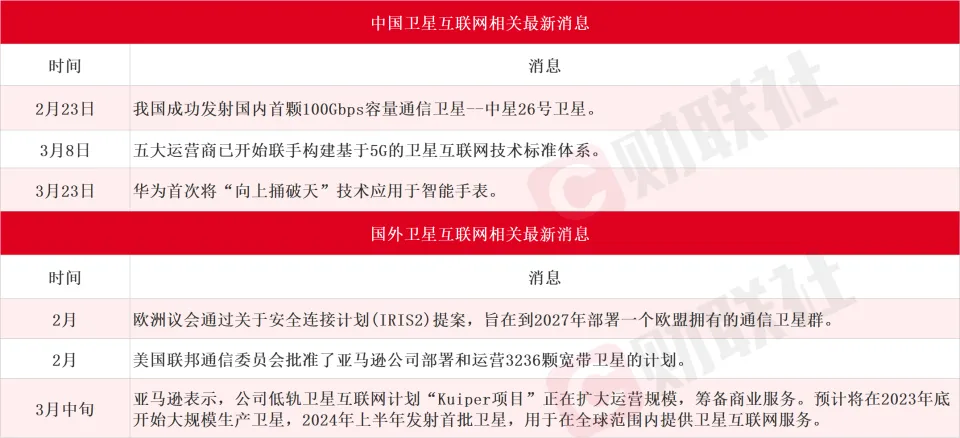 财联社4月2日讯(编辑 刘越)放眼举世,低轨卫星互联网已掀起基建怒潮。据国际主流卫星星座规划,凌驾7.4万颗卫星将被发射,如今已累计发射超4000颗卫星,用户数目已突破百万。中国、加拿大等国也相继推出超大规模星座项目,低轨卫星已成新一轮科技革命的竞技场。 先到先得,太空卡位赛已经枪响。地球近地轨道最多可以容纳约莫6万颗卫星,而当前国际卫星频率及轨道利用权采取“先登先占”竞争方式获取,同时若发射的卫星寿命到期可重新发射举行增补,造成“先占永得”的局面,如能抢占先机则能在后续竞争中上风尽显。空间轨道及频谱资源乃稀缺战略资源,如今卫星互联网已纳入我国“新基建”成重点发展方向。 海表里卫星互联网近期干系消息一览国盛证券研报指出,卫星互联网是大国竞争的新高地。军用范畴,俄乌战场Starlink大放光彩而且“星盾”已开始服务美国防部。民用范畴,如今地球上凌驾70%的地理空间,涉及30亿生齿未能实现互联网覆盖,卫星互联网是办理地球“无互联网”生齿数字鸿沟的告急本领之一。别的,卫星互联网将在数字经济中发挥独特作用。其一,资助5G进步覆盖度,化身6G技能前锋,构建空天地一体网络;其二,开辟手机直连卫星的新赛道;其三,通过技能融合,助推财产互联网。 据美国投行摩根士丹利发布的《太空:投资“终极国土”》陈诉,预计到2040年举世太空经济的代价将到达1万亿美元,卫星互联网将占市场增长的50%,在最乐观的情况下将到达70%。瑞银推测,除了传统卫星、军事太空应用等范畴的增长,太空经济也将开始在以卫星宽带互联网为代表的其他范畴产生巨大溢出效应。 SpaceX、亚马逊等西欧巨头争相结构 卫星互联网创建高投资高回报 “天文数字”一样平常的市场规模背后,是极高的行业门槛,卫星互联网企业投资规模巨大。据美国卫星财产协会,卫星互联网财产链可分为4大环节,分别为卫星制造环节、卫星发射环节、地面吸收发射装备财产和星运营管理服务财产。干系资料体现,卫星互联网的最大本钱在发射环节,如今国内单行本钱在500-1000万元之间。 低轨道卫星空间轨位和频谱资源日益告急,西欧卫星摆设领跑,OneWeb、O3b、SpaceX、Telesat等多家西欧企业已提出卫星互联网筹划。根据ITU官网数据,制止2022年12月31日,举世累计申报NGSO卫星网络筹划2240个。 值得一提的是,SpaceX的Starlink在客岁实现了贸易化快速发展。据SpaceX在客岁12月公开的信息,Starlink已有凌驾100万的生动用户。这比2022年3月一位公司高管在一次行业运动中披露的25万用户大幅增长。而就在2月末,Starlink还调解了费用代价,这已经是其连续第二年进步服务售价。亚马逊也加速步调,赶来分羹。公司以致直言,相较马斯克的星链等一众竞争对手,自财产品“更小、更强、更实惠”。 熬过高投资,就是回报高光。以星链为例,制止2022年12月,星链已有凌驾100万用户,按100美元服务月费盘算,一年营收超10亿美元。有机构估算,星链如今发射的全部卫星本钱是6亿美元,也就是说,运营不到一年即可覆盖本钱,开始进入高回报阶段。而马斯克在某次采访中曾体现,星链建成后,预计每年收入可达300亿美元。 中国卫星互联网快速跟进 “总计划师”中国星网有望定位为第四大通讯运营商 中国卫通、中国卫星股价大涨 民营企业星星之火渐成燎原之势 数据体现,2021年举世各国在轨卫星数目,中国以499颗排名第二,仅次于美国。国盛证券指出,中国卫星互联网起步较晚但发展较快,快速跟进,多个项目结构中国版“星链”。Starlink筹划推出后一年左右,中国航天科技和航天科工团体,就分别提出了“鸿雁工程”和“虹云工程”低轨卫星通讯星座筹划。当马斯克的Starlink率先辈入贸易化试运营的时间,我国互联网星座也已经完成了第一轮投入期。 我国卫星互联网财产为有待拓展的“蓝海”,创建恰逢其时。2021年国资委建立中国星网成为中国卫星互联网的“总计划师”,谋定后动,统筹规划推动行业全面快速发展。中国星网公司在国资委企业名录排序26,位于中国电信(23号)、中国联通(24号)、中国移动(25号)之后,有望定位为第四大通讯运营商。 国资牵引,央企总抓,2016-2018年间,航天科技、航天科工、中国电科、中国电信等央企纷纷提出了各自的低轨互联网星座创建方案,并连续发射了试验星。2020年9月,GW项目12992颗巨型星座的申请获批拉开了星网公司统筹创建的新篇章,2022年同一招标第一批卫星落地伴之而来的将是首星发射,国盛证券以为2023年将成为中国星网创建的元年,卫星互联网有望迎来长达十年的发展期。 从二级市场体现来看,中国卫通和中国卫星自2022年4月低点迄今股价累计最大涨幅分别达204%、113%。 民营航天力气对于我国卫星互联网创建至关告急。民生证券研报指出,星河动力、星际光彩、蓝箭航天、零壹空间、天仪研究院、银河航天、微纳星空、长光卫星、航天驭星等贸易航天公司快速崛起,民营力气对于贸易航天发射所须要的低本钱、大规模、快速迭代、充实竞争等要素有着天生的敏锐性与顺应本领,而且能在资源的加持下得到快速的发展。星星之火渐成燎原之势,民营航天快速发展迎拐点。 详细来看,我国第一批贸易航天企业起步于2014年,颠末8年发展已经渐渐发展出星河动力、银河航天等良好的民营贸易航天公司,民营力气全面渗出到运载火箭、火箭发动机、