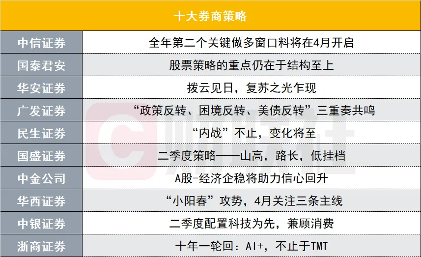 财联社4月2日讯,3月成为已往,二季度正式开启。拨云见日,复苏之光可已出现?市场风格在二季度将怎样切换?4月股市投资又当怎样规划……请看本周十大券商计谋。 中信证券:整年第二个关键做多窗口料将在4月开启 一季度,A股分别履历了代价、发展和主题的显着估值修复,发展类体现亮眼;预测二季度,环球活动性和国内根本面两大拐点已根本创建,并将在4月得到宏观数据和A股财报两个层面的验证,叠加外部金融风险与地缘扰动显着改善,预计A股整年第二个关键做多窗口料将在4月开启,财报业绩驱动将代替主题炒作,成为阶段性主线,而作为年度主线的数字经济财产和环球活动性拐点相干板块将分化或轮动。 一方面,环球活动性紧缩预期下修的拐点已经创建,西欧金融风险与外洋地缘扰动也已显着改善,打开估值修复空间;国内根本面预期上修的拐点也将在4月创建,提升A股设置代价。另一方面,经济根本面预期将在4月得到宏观数据与A股财报披露两个层面的验证,预计一季度宏观数据有望超预期,GDP同比读数在4.5%~5%,一季报将反映业绩逐季改善的趋势。 综上所述,根本面、估值、风险偏好共振上修的市场环境下,A股料将在4月打开整年第二个关键做多窗口;财报业绩驱动将代替主题炒作,成为阶段性主线,发起关注制造中的新能源、基建、一带一起出口中的细分范畴;年度主线方面,受益于环球活动性拐点的创新药、医疗基建以及科创类企业将在二季度轮动,数字经济财产分化下,上游芯片、云盘算底子办法等业绩有支持的细分范畴更加受益;年度主线和阶段性主线将接力并轮动。 国泰君安:股票计谋的重点仍在于布局至上 指数横盘震荡,股票布局至上。总的来说,我们以为现阶段就是淡化指数,布局至上。从自上而下的角度看,当前阶段股票计谋的大逻辑岂论国内还是国外的经济增长和宏观政策“预期的好没有更好”,但同时“预期的差也没有更糟糕”。因此,在相对更中期的逻辑和形势清朗前,尤其是4月中下旬告急集会对于总量经济政策是否有新的变革前,上证指数上下的空间并不会太大。指数震荡并不意味着当前是投资的垃圾时间,固然与总量经济相干的板块弹性有限,但国内数字化/安全化政策和外洋创新以致国企改革的变革却日新月异,差别的股票风格间出现极大水平的分化。股票计谋的重点仍在于布局至上。 发展风格占优,四月器重扩散。起首要明白一点,就现在国内经济和地缘政治角度而言没有太大的未预期到的不确定性因素,因此对股票而言有两个影响:第一,投资者持有钱币的意愿不高,当前仍然处在“布局做多期”;第二,股票风格不在确定性,而在于找边际变革和弹性。与此同时,当前暖和的总量政策与边际放缓的经济活动(5月后进入淡季)意味着总量经济板块预期上修空间受限,思量外洋金融紧缩周期处于尾部,当前发展性/恒久期资产相对占优。但与2-3月差别的是,当前市局面对着过分会合的成交布局与A股总成交放缓之间的抵牾,加之一季报的相近,或将推动将来一段时间发展风格出现扩散。一方面在于TMT+医药的轮动,另一方面关注传统范畴中的细分发展方向。 强势股有空间,布局低位扩散。器重股价调解充实、红利预期见底,微观筹码出清,且中期维度受益周期性复苏和技能创新的板块,美元紧缩周期的尾声也有利于恒久期资产,积极布局低位发展:电子(半导体、斲丧电子),医药(创新药)。2)国内数字化政策+外洋创新大周期,公募团体低配,中期财产大主题。必要关注的是,当前看空者没有筹码,而踏空投资者较多,高风险偏好投资者主导强势股行情。强势板块与强势股仍有肯定空间,但由于市场缺乏增量资金,要留意风险控制。关注轮动:盘算机(“AI+”应用)、通讯(电力信息化)、传媒(影视院线/游戏)。 3)部门传统赛道估值公道且交易业务并不拥挤,此中具备发展性或一季报有望超预期的细分方向将受益发展扩散,关注传统发展细分:啤酒/食品/小白酒/小家电/中药/零售药店。 主题与个股:掘金硬科技、数字经济与低估斲丧。1、围绕构筑当代化财产体系,增强科技自主自强本事,保举电子(中微公司)/盘算机(杰创智能)/高端装备(英维克/力合微)。2、布局处于财产发展早周期的数字经济和AI应用,保举数据服务(天孚通讯/数据港)/AI+(受益蓝色光标/盛天网络)。3、业绩验证期具备估值上风的斲丧(青岛啤酒/益丰药房/长城汽车)。主题保举:绿氢/人工智能/数据要素/捏造现实。 风险提示:经济复苏不及预期;环球地缘政治的不确定性。 华安证券:拨云见日,复苏之光乍现 在1-2月宏观数据疲弱、政府工作陈诉及总理记者问中转达政策稳信号使得市场政策预期下修以及外洋金融风险袒露,发达经济体加息预期弱化的影响下,3月市场团体出现震荡格局。设置上,受ChatGPT驱动、数字经济催化剂变乱频现,TMT领衔上涨。预测4月,市场对经济复苏以及宏观政策低预期有望迎来修复。一是增长偏悲观预期,有望在一季度数据公布后得到肯定修复,先行指标PMI已体现3个月一连改善;二是对政策力度偏弱的预期,有望在一季度政治局集会、扩内需政策渐渐落地以及基建相干的政策性开辟性金融工具落地后有所改善。团体判定,4月份A股可以更乐观一些,有望好于2-3月,围绕尚未被订价的经济复苏预期差和TMT财产周期举行设置,关注三条主线:一是可选斲丧稳步复苏,关注食品饮料,医疗