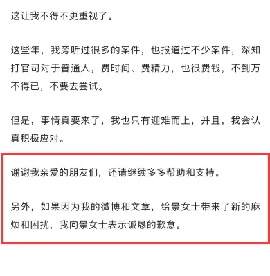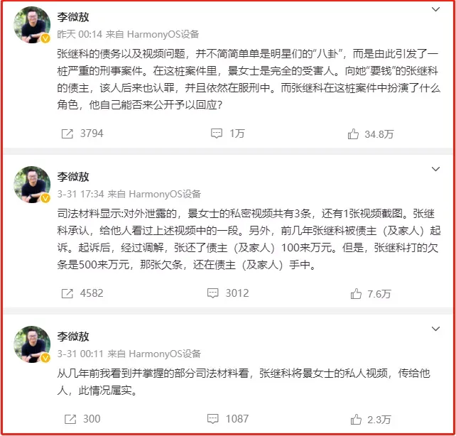 北京时间4月2日,继网络上传播出张继科使用女星景甜私密照归还赌债这一消息传出之后,舆论正在连续发酵。作为揭破事故原形的告急记者,李微敖仍在连续发声,这一次他再度发布长文给出回应,表明本身会积极应对的态度,而且还朴拙向景甜致歉了。 根据李微敖所说,他早在20年的时间就知道了张继科欠了不少外债,而且由于赌博更加是负债累累,当时李微敖就想过要写一篇文章来揭破此事。接着近来这段时间有人曝光张继科的消息,他选择站了出来说出了本身知道的很多毕竟,因此以致受到了张继科粉丝的网暴威胁。 李微敖体现本身熟悉到一位S老师,张继科曾经欠了S老师很多钱,而张继科并没有选择还钱,反而是将景甜的干系私密视频发给S老师借此让景甜代还债务。然而当S老师找到景甜的时间,景甜反而报警将S老师抓了起来,这也让事故更加空中楼阁。 随着证据的不停更新,李微敖还晒出了张继科乞贷五百万的一份乞贷条约,上面有着张继科的署名以及清楚的指纹,可以看出这份条约确实是张继科亲身乞贷的条约无疑。因此李微敖也直接断言,张继科使用走漏景甜的私密视频来归还赌债的做法是毕竟无疑。 一时之间无数人都在推测张继科这个曾经中国乒乓球的自满,一个天下冠军,他到底会不会做出这些毫无道德底线的事故。也有媒体直言让张继科出来回应,简单的澄清已经无法竣事这件事故了。不外张继科方面不停都没有进一步的体现,以致面临记者的采访直接挂断了电话。 着实作为一家着名报社的记者,李微敖本身在记者业内也算是相当着名的人,他曾经报道过和揭破过不少鲜为人知的东西,他也算是一个端正的记者。在这个条件下,他显然不会平白无端污蔑张继科,因此当李微敖晒出这些证据的时间,张继科很大概已经慌了。 而且如今按照李微敖的说法,他不但已继续到了不少张继科粉丝的网暴威胁,而且他的家人尚有人身安全都已继续到了威胁。至于张继科方面更加是直接发布了状师函,接下来李微敖所面临的东西很大概是无休止的告状,不外他也并不担心这一点,他体现本身会积极应对此事。 早就有不少状师朋侪表明本身乐意资助李微敖打这场官司,这也代表了李微敖的为人,这些状师是知道李微敖手中肯定有证据才乐意资助的。而且李微敖也明白这件事故将会给景甜等主角也带来很大的贫苦,因此他也非常老实向景甜发表了致歉声明。 只管是面临张继科这种在全网范围内拥有上万万粉丝的乒乓球国手,李微敖仍旧是丝绝不慌,由于他也有着作为一个记者的态度和尊严。在这种环境下,李微敖肯定会选择和张继科硬刚到底,他后续能否给出更多的证据证明张继科的黑料,这也让我们拭目以待吧! |