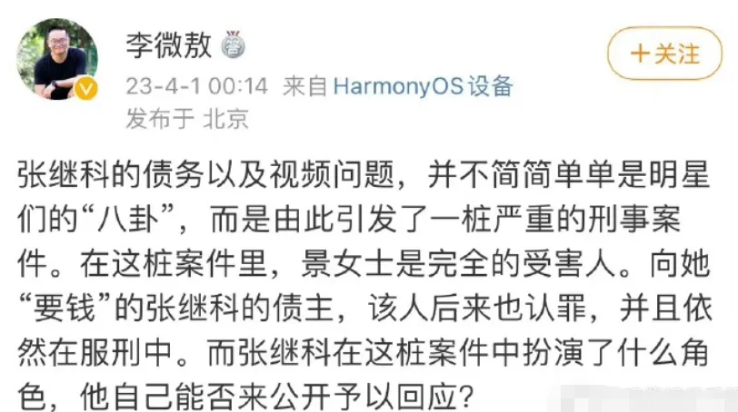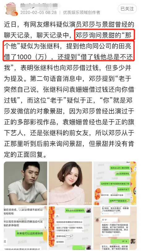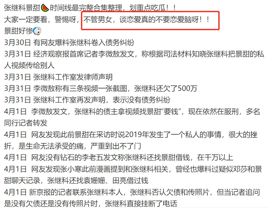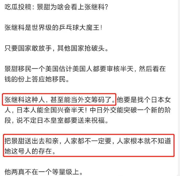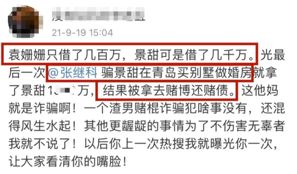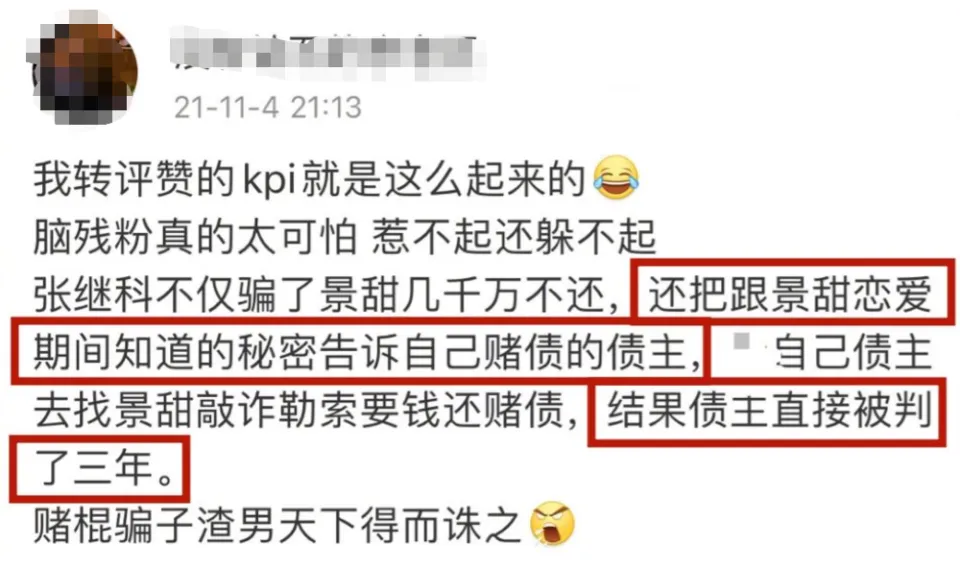 从备受痛爱的天之骄子,到“各人喊打”的赌徒,乒乓球奥运冠军张继科,仅仅用了3天,就从顶端跌落,陷入舆论的漩涡。 (就是下面这两条动态,让张继科“万劫不复”) 信赖不少人和小8一样,这个周末,都贡献给了景甜和张继科真假难辨的消息中,赌博负债、将女友私密照“卖”给借主......这一桩桩跌破大众眼镜的消息,彻底毁了张继科。 变乱发展到本日这个田地,固然张继科方发出了声明,否认和这些变乱干系,还准备告状,但越来越多的爆料,指向这件变乱并不是空穴来风。 乃至另有不少明星牵涉此中:邓莎、袁姗姗、于正、田亮等等,一个个名士到场此中,都让这些爆料增长了不少可信度。 固然了,除了因赌博,欠钱不还外这些消息外,另有更多的网友心疼景甜,在这件变乱中,她是“最大的受害者”。 有人整理出这次变乱发酵的全过程,发现景甜在这场爱情中,遭遇了太多:被男友诱骗感情、借给男友的财帛(说是买婚房着实还赌债)、还被男友背刺,将私密照“卖”给借主等等,妥妥的大冤种了。 而且在履历这么多欠好的变乱后,分手4年,仍然没有选择说过前任的任何一句欠好的话,给相互留了最大的面子。 可以说,也正是景甜的善良,让张继科享受了4年的好韶光、凭着奥运冠军的光环,在娱乐圈混得风生水起,接广告、接代言、参加综艺,直到这次变乱的发生。 回到两人爱情过程,小8发现,女方受到的伤害不少,委曲往肚里咽的时间也不少。 从最初被曝光恋情,景甜就被骂,配不上为国争光的张继科。当时,外界不少人以为,景甜是一个靠干爹“上位”的花瓶,哪怕硬塞资源也没有火,而张继科则是能充当“交际筹码”的国之栋梁。 确实,当时间的景甜,口碑并欠好,相较于同期其他同砚还在娱乐圈里苦苦挣扎,她一出道,资源就像坐了火箭般,第一部作品就是主角。 今后敏捷和圈内大佬相助,在2011年,和孙红雷、金喜善、吴镇宇共同主演《战国》,那年,她才23岁。 接着,又是和成龙相助《警员故事2013》、和甄子丹相助《特别身份》、和周润发、谢霆锋相助《澳家声云》。险些将港圈的大佬相助了个遍,而观众却对于强塞进来的花瓶感到不满,景甜引起了不小的争议。 无奈当时的港圈已经式微,硬捧也没有出路,她又转换方向,进军电视荧幕,同样是大女主脚本,什么《大玉儿传奇》中的“大玉儿”、《班淑传奇》中的“班淑”。 还和张艺谋相助《长城》,进军好莱坞也是戏份不少,《金刚.骷髅岛》、《环平静洋2》里都有她的身影。 哪怕是如今被张艺谋“独宠”的刘浩存,碰到当年的景甜,恐怕都要自叹弗如。固然参加了这么多大制作,但红就是玄学,景甜始终缺点火候,还因资源太好被外界推测靠“干爹”。 不外这种盛况并没有连续多少年,厥后的景甜资源固然下去了,路因缘却好起来了,有了代表作《大唐光彩》和《司藤》,给大众的形象也没有多大的斑点。 可以说,当时间的景甜,在国民气中,和奥运冠军、打出过大满贯的张继科是完全没法比的,一个是没多少本事的“戏子”,一个则是为国争光的体育栋梁,乃至有不少言论说景甜“高攀”了。 固然外界不看好,但其时两人也是实打实的甜蜜了一段时间。 当初景甜和张继科官宣爱情,也引起了娱乐圈的小地震,那是在2018年,景甜和张继科相继在交际平台上大方认爱,还晒出了海边牵手的甜蜜照片。 不但云云,两人爱情过程中也时常撒糖,还被狗仔拍到过在车内亲吻的视频。 景甜对这段感情投入颇多,两人一度走到了见家长的田地,外界也以为,景甜和张继科末了会终成眷属的。 不外两人这段感情,也就维持了一年多,就宣告竣事,在分手的时间,两人都保持了面子,祝福对方:感恩曾经相遇,愿以后齐备安好。 然而,就实际的环境来看,景甜的生存状态却不敷好,在反面有一次采访中(已经已往好几年),景甜说自己在2019年的时间,遭遇了人生的庞大妨害,而那段时间,和两人分手的时间线是差不多的。 景甜坦诚地说自己那段时间状态非常欠好,状态差到乃至无法走出房间的门,也以为没有人可以大概救济自己。 履历那件变乱后,她有一年半,靠近两年的时间,没有拍戏,不但无法工作,连生理都出现了很大标题,也怕告诉别人这件变乱后,别人以为自己小题大做。 以是,在2021年的时间,《司藤》这部作品,从某种意义上而言,真正地将她从泥沼中拉了出来。景甜在《司藤》爆火后,写的小作文里,也可以看到这一点。 而她遭遇的这件变乱,和不少爆料人说的“张继科将私密照卖给借主”不谋而合了,另有消息称,张继科还将这些私密视频中的某一段,给其他人看过。 想象一下,假如这个变乱真的发生,对景甜来说,是多么大的伤害?一个满身心爱着的人,却是反叛自己,伤害自己的“罪魁罪魁”。 而张继科呢,除了负债时将女友推出去,还骗女方说要完婚买新居,骗了巨额的财帛后,还赌债了不说,女方也是厥后才知道。可以说,在这段关系中,两人的位置就是不对等的,女方显着爱得更深,受伤害更深。 但景甜又是面子的,在分手后,没有说张继科一句浮名,在自己状态最艰巨的那段时间,也被网友扒出来做慈善,将自己的闲置物品卖出后,捐给慈善机构做慈善。 而且和一些明星将自己不要的“破烂”卖给大众差别,景甜的闲置物品生存的不错,买方拿得手也是好评居多,没有刻意割韭菜,也没有敷衍对待。 如今,张继科的变乱连续发酵,爆料人态度倔强,且有差别的