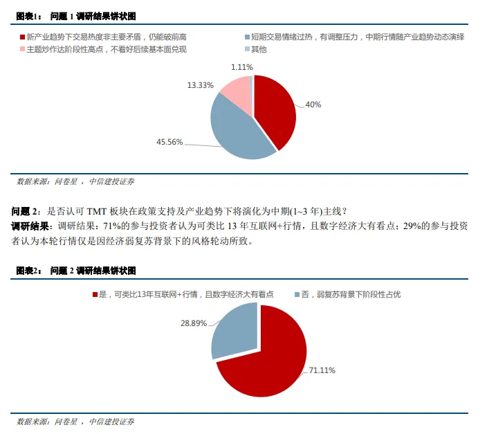 财联社4月3日讯,3月市场团体风格冷热不均,以宁德期间、比亚迪为首的新能源个股震荡整理。但同时,以ChatGPT为首的AI热度一连了一整月,板块诞生了不少牛股,三六零、同花顺等单月涨幅均超60%。 对于4月,券商青睐哪些板块和个股?财联社梳理了10家券商的金股后发现主线大抵有两个: 第一个是TMT为代表的数字经济。细分赛道为ChatGPT、AI、算力等,科大讯飞得到了三次保举。 第二条则是估值公道,业绩驱动的一季报行情。以传统的新能源、医美行业为代表。宁德期间、爱美客都得到了三次保举。 自从3月24日TMT+电子的成交占比到达46%后,市场对板块可否一连不绝争论不休。财联社整剃头现,大多数券商对后续TMT行情广泛看好。 兴证战略指出,本轮数字经济行情或类似当年的焦点资产与新能源。根本面和政策环境的双重驱动或支持“数字经济”其穿越短期的生意业务拥挤,继续形成市场中期的主线聚焦方向。别的,3月以来市场资金面团体回暖,此中外资设置盘更再次加速流入并重点加仓TMT方向,也将为“数字经济”行情的一连提供支持。 中信建投通过向白名单客户通干涉卷星情势发送了调研问卷,主题为怎样对待TMT风格的一连性。观察效果体现,85.6%的到场投资者以为TMT行情未完,中期趋势向好;71%的到场投资者以为本轮行情可类比13年互联网+行情,且数字经济大有看点。 除了以TMT为代表的数字经济外,不少券商将眼光投向了估值较为公道,行业团体增速较高的行业。也因此,以宁德期间、爱美客为首的老龙头能被券商会合保举。 浙商证券指出,需求快速回暖+医院积极促销,医美加速复苏。一方面,短期受益于医美疫后修复确定性强,速率快。轻医美项目多疗程、高复购、高粘性,且焦点客户面向收入稳固的中高斲丧人群,斲丧力更有保障。另一方面,中恒久受益于分泌率和斲丧频次的双重提升。中国医美分泌率仍为个位数,在市场教诲、技能升级、斲丧下沉等驱动下保持高增。 关于动力电池,人们广泛担心燃油车的代价战挤压新能源车销量,从而影响动力电池出货量。 浙商证券以为,在电池产业链,行业自2022年第四序度以来一连去库存,中游质料出货量低于现实需求。在代价/加工费方面,浙商证券预计2023年电池及质料产能过剩一连到临,在需求增速下行过程中,产业链贬价尚未见底,此中碳酸锂代价是焦点指标,根据SMM数据,停止2023年3月24日,电池级碳酸锂代价为27.5万元/吨,较年初降落46%。推测2023年后续,产业链本钱见底后有望维稳,斲丧者购车意向将渐渐兑现,产业链红利有望逐季回升。 (财联社 雷山谦) |