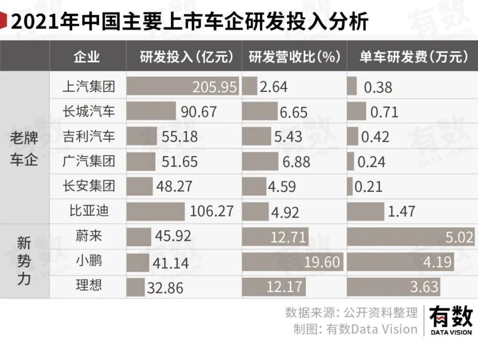 甲子光年在一次采访中用这句话形容马斯克、乔布斯以及Ilya:“科技发展通常不是最优解的胜利,而是开始造出来的人把它界说成最优解。”[5] 前面两位我们并不生疏,特斯拉界说了新能源车的最优解,苹果界说了智能手机的最优解,而Ilya Sutskever,OpenAI的团结首创人、首席科学家,为AI大模子界说了最优解。 与OpenAI和ChatGPT一同引爆科技圈的,尚有哗闹而上的舆论:为什么又不是中国? 就费钱搞研发这件事上,中国并不落后,现在研发付出占GDP的比重已达2.4%,并在2013年初次高出日本,成为了环球第二。 但一个很实际的标题则是:没有特斯拉、没有苹果、没有OpenAI,那这一年2.5万亿元的投入都去哪了? 一半互联网、一半“中字头”曾有一位着名分析师提出过一个标题:毕竟什么是“硬科技”公司? 而在这疑问之后还顺带附上了一句话:“宁德期间一年的研发费用,比互联网行业公认最没有技能含量的小米团体都不如,还什么硬科技呢。” 上市公司的财报中,有一项名为研发费用的本钱专门用来纪录一个时间周期内,公司在研发方面的投入。如果以该指标为衡量标准,中国上市公司中研发费用最高的三家分别是阿里、腾讯以及中国修建。 而在TOP20中,中字头公司和互联网巨头各占一半。 如果按“研发费用=技能力气”的逻辑,那么中国科技代表队中有一半是造房子大概修铁路的,而中芯国际一年41亿的研发费用得排到50名开外。 用这一指标来衡量技能力气显然不敷准确。实际上,这指标更恰当衡量一家公司对于研发的器重程度,好比中国石油167亿的研发费用可以大概吊打绝大多数上市公司,但其占营收比重仅为0.6%,这类可以用九牛一毛来形容的研发投入更靠近于一种固定投入,好比app开辟、储油罐技能升级之类的。 中文语境下的研发费用是什么?2018年科创板推出的同年,为更好的衡量公司的研发本钱,国内财报的规定中,正式将研发费用从管理费用中拆出。 按照管帐学的界说中,能被盘算在研发费用本钱中的项目,包罗研发职员工资、劳务费、质料费、试验费、装备折旧费、租赁费、专利申请费、以及直接购买技能等等。 简单来说,根本上只要是个新的东西,上到研发三体天下通讯器、下到马路牙子用的新式水泥,在这个过程中产生的统统费用都可以记为研发费用。 如果把研发费用除以公司研发职员总数,大抵可以得到一位研发职员,在该公司每年有多少预算能花。 以中国修建一年高达399亿研发费用为例,这笔钱就重要花在不停地重复试验底子修建质料的配方之上,就像2021年攻破碳纤维技能,冲破日本化工质料方面60年的把持。而这一质料重要用于战斗机、大飞机、战略导弹、火箭、卫星等高端制造上。 毕竟上,底子物理化学质料的研发,并不比ChatGPT之类的人工智能模子更自制。被三体智子封锁的对撞机一台要200亿美元,一块用于AI运算的A100显卡也就一万美元出头。 这里有一个知识点,财报中的利润表中的研发费用大概只是这家公司研发本钱的一部分。在实际处置惩罚中有两种情况:如果研发效果还不能带来收益,那么直接计入研发费用;如果可以大概转化为收入,则可以部分计入无形资产举行摊销(又称资源化率)。 后者的操纵可以大概明显增长当前公司的红利本领。举个例子,一家公司本年有10000元的营收和10000元的研发开支,如果全部计入研发费用(不思量别的费用),本年的利润为0。如果计入无形资产摊销十年,意味着公司每年研发本钱只有1000元,本年的利润为9000。 因此,资源化率高的公司,通常可以明白为公司以为本身的研发有稳固的变现本领。 固然,不扫除一些公司为了进步利润程度举行这种操纵的大概。好比长城汽车,作为一家老牌车企,在现在向新能源转型时,就将大量研发付出资源化,表现在2021年年报上,得以生存67.25亿的净利润。 毕竟有净利润,股东才气拿分红。 服从第一撤消对比研发费用的绝对值以外,在观测技能研发本领时我们可以引入一个概念:研发服从。 研发团队的人力本钱和时间本钱通常明显高于别的岗位,因此连续的研发项目如果长期难以实现红利,将会敏捷拖垮一家公司的现金流。 而衡量研发服从有两个维度:研发所需的时间、以及产物的贸易化本领。 以创新药为例,由于药品的变现逻辑非常清晰,只要可以大概研发出一款切实有用的药品,根本不消担心销量标题,因此研发服从重要考量时间。 好比率先研制出有用新冠疫苗的辉瑞和科兴,两家企业敏捷将效果转化为以千亿计的利润,显然是研发服从高的表现。 而反例则是曾经的元宇宙概念产业链,大量的投入未能转化为贸易化效果,这可以被称作为低效的研发。 当下最检验企业研发服从的行业,着实是新能源车。在这个尚未像创新药一样平常拥有完全成熟的贸易化路径,又和元宇宙有着类似的广阔想象空间的行业里,产业链上各家企业竞争的核心之一,正是研发服从。 电池范畴宁德期间率先脱颖而出,2022年整年装车量市占率到达37%,自动驾驶芯片根本被英伟达、高通及英特尔旗下的Mobileye三家把持。 在最鄙俚的车企身上,研发服从的战役仍未停歇。在最新财报中,蔚来单车研发费用高达8.8万元,相当于同期特斯拉的5.5倍,长城的7.5倍,抱负和小鹏从客岁开始每个季度的研发投入约莫在15亿元左右,单车的研发本钱约莫为5万元。 高昂的单车研发费用本质上是由于销量不敷,无法摊薄而导致的