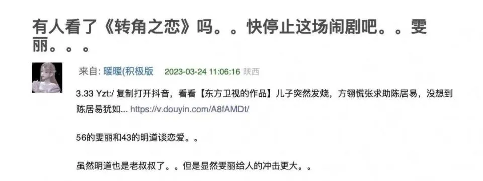 不知道各位是否还记得,之前咱们聊过快五十岁的言承旭还像个小王子,这让我们改变了男星人到中年就会变油腻的刻板印象。 可才过不到一个月,这份好印象就被明道、蒋雯丽的《转角之恋》突破。 同为湾湾靓仔,现年才43岁的明道显着身段毫未走形,只因和蒋雯丽对戏时像一个涉世未深的男模,就瞬间失去了原有的明净。 而我们的雯丽阿姨,更是接过张翰的油王权杖,以“嫩丽”形象重新出道。 咱也不是不能担当老小恋,究竟有杨烁娜扎的《归还天下给你》,陈建斌李一桐的《爱我就别想太多》震动在前。 但看到两位加起来有百岁高龄的演员对着撒娇,对着霸道,对着疯狂钻油田,那脚啊就想把地板抠烂。 现今,《转角之恋》已经成为国产油腻电视剧的一匹黑马,作为一项极高难度的憋笑挑衅盛行于市面上。 而但凡你看过一眼,都会冲着主演大呼: 什么都恋只会害了你啊!雯丽明道! 作为一部上星剧,《转角之恋》的主场却不在东方卫视,而在全部二创平台。他们以逐帧reaction的方式,里淘金,发掘出它的新型观看之道。 但要说把观赏这门科目做到最好的,那肯定得是抖人。 当蒋雯丽看到明道和初恋女友约会妒忌时,抖人——“导演和明道杀人被蒋雯丽看到了”“蒋雯丽要干吗,抨击顾长卫吗?”“究竟是张国立和马思纯哪个没时间”三连击魂魄拷问。 当明道突入女浴室被羞愤的蒋雯丽用马桶搋子暴打,抖人——“一会儿把老太太气瘫了”。、“从卫生间走出来那两步比明道都man”,让高潮片断秒变告急热线。 当雯丽调去北京,母亲却突患烦闷症,抖人——“妈妈的幻觉出现大概是由于想不通自己哪儿来的这么大的女儿”“别去了雯丽,打拼不了两年就退休了”。 他们以致重温了一遍《天国的嫁衣》,只为给明道一个迟来的拥抱——程海诺你别难过,你的好日子在背面呢! 末了,向来担当度高的抖人也受不了来自二位油王的甜蜜暴击,他们愤怒喊话东方卫视:你们都不看批评区吗? 可以说,由于有这些批评,才做好打开《转角之恋》的生理准备。 拜荣幸生理(bushi)作祟,固然看之前已经晓得男女主都是肉眼可见的离谱,可总会想着负负大概会得正呢,万一二位老师用演技证实了自己呢? 究竟是,完全没有! 屏幕上,当蒋雯丽饰演的广告总监方翎和明道饰演的小学体育老师陈居易第一次进场时,我们便为他们两个的造型震动了。 不说别的,怎么会有男女主的发型除了刘海方向之外千篇划一呢? 而当其他人进场之后,震动就酿成了疑问:合着全剧全部人除了女二都是在同一个Tony那边剪的头是吧?怎么办卡有优惠就逮着一只羊使劲儿薅? 而且你告诉我,让都演过张国立妻子的蒋雯丽和朱茵做母女真的不感到诡异吗? 此朱茵非彼朱茵,话剧演员 比及男女主终于见面后,这种疑问忽然就豁然开朗了。 什么广告总监体育老师都是噱头罢了,这部剧二人的真实身份是老了享受一把的奶奶和古早男模会所的销冠。 这也让人看清了血缘关系的本质,不是一家人,不进一家门,腱子肉,思纯雯丽永世的XP。 外甥女与她的《第一炉钢》 导演以致很懂得一圆我们童年的梦,海尔兄弟的真人版终于有粮了uu们! 从人设上看,这部剧想要蹭的是姐弟恋的东风,还是几年前特殊盛行的姐狗文学,主打一个年下齁甜。 为此,它找来了相差十四岁的蒋雯丽和明道。据悉,拍这部剧的时间,蒋雯丽50岁,明道36岁。 但看下来,与其说是姐狗文学,不如说是奶叔绝恋。年岁差不是重点,关键是这两个人站在一起毫无CP感。 蒋雯丽本就是成熟型长相,光阴的陈迹都印刻在脸上,在剧里的人设却是娇女一枚,给人的观感像将近绝经的小女孩。 明道的剧中年岁固然和实际年岁险些无差,但出道多年,归来还是霸总,这次干脆从野性小狼狗酿成了工字背心包工头。 因此,他俩在一块谈爱情,乱伦感劈面而来,恰似明道上Tinder滑了个sugar mommy,而蒋雯丽给自己找了个阳光开朗好大儿。 粉色娇嫩,如今你几岁了? 剧情上也集狗血烂俗于一体,那古早的“高兴冤家、阴差阳错”味儿之冲,犹如陈年老腌菜,又酸又臭。 一开始蒋雯丽饰演的方翎刚刚升职,就碰到小三追到公司公布有身闹仳离的烂俗情节。而后仳离带娃的二位又碰到“一房两卖”,编剧说我就要把他们锁死在一间房子里,意不不测? 为了安排他们相遇,肯定要玩尬的。 第一次熟悉(但未见面)是在公司,雯丽上错厕所,明道在她隔壁为她摆干净牌,体贴暖男形象get。 新居相遇,更是再没那么熟悉的情节,让明道洗完澡抱住要跌倒的雯丽,陪同着一阵强光裸身旋转拥抱,雯丽啪的一声趴在了明道坚固的胸肌上。 以后之后,这部剧就再也没有思量过观众的想法。 前文的“夫君误入女浴室,惨被女子用马桶搋子打”正是《转角之恋》的名局面,面对被看光后愤怒的雯丽,明道竟说出了“你说你一个女孩子洗浴为什么不锁门啊”如许的话。 啊这...... 当蒋雯丽明确心意,向明道跪地求婚,暗昧间,你仿佛看到了另一位女子在舞台上的飒爽身影,只以为下一秒雯丽就要说出那句经典的——“你是我的神”。 复刻海清恋 至于什么闺蜜团蒙眼让明道摸手识女人,雯丽快六十的人了不知道发烧要怎么办的离谱剧情,都让这部剧每秒都值得纪录。 积极讨富婆欢心的鸭 而如果肯定要评出《转角之恋》的致命一击,那肯定是背后杀。 背后杀,这一制造肢体打仗营造暧昧感的常用招数早在《人鬼情未了》中就被发