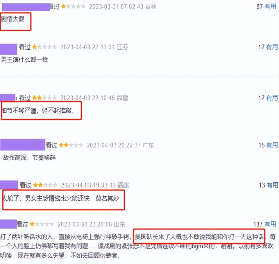 这几年的谍战剧数量属实不多,究竟制作难度上就比力大,再难出《伪装者》、《风筝》、《匿伏》如许的佳作。 委曲拿得脱手的大概也就是2021年的《反叛者》,从剧情到演员演技都到达了合格线以上的水准,也算是掀起了全民追剧的高潮,朱一龙、王阳、王志文等力气演员也得到了观众的肯定。 到了本年待播剧预备了曾舜晞和张颂文主演的《孤舟》,重要就是张颂文这位男二号撑起全剧,其他的青年演员大概能出现出新的惊喜。黄晓明和蒋欣两大戏骨主演的《匿伏者》光是预告就让人把等待值拉满。 而眼下热热播的《无间》更是不简单,张志坚、靳东、王志文坐镇,导演奇道号称布局7年,但豆瓣上差评一片,口碑直接翻车,简直要成影视圈笑柄。 Bug不停,毫无逻辑可言《无间》讲的就是陆风(靳东饰)以军统的身份卧底到汪伪,但之后弃暗投明到了我党,以三重身份举行周旋。 本来观众以为,就算不像是《伪装者》那么强,好歹也有点烧脑,效果开局就给各人整懵了,男女主坐游轮的时间在甲板上相遇,然后男主盯着人家就挪不开眼睛了。 这边小日本捉住了特务,还发现有女朋友,于是他们就非得要抓“只身女性”,真不知道只身招谁惹谁了。 然后女主这位专业的特务,居然想要在小日本的眼皮子底下偷偷溜走,这不纯粹搞笑呢吗,人家一眼就发现而且猜疑了,这时间男主来好汉救美,我的天,这老土的剧情真绝。 谎称女主的自己的未婚妻,就如许,男主这位留学归来的高级特工,就资助了一位素未谋面的人,就由于被美色所迷,这就是该剧塑造的男主形象,简直是欺侮了其时的特工。 用饭的时间,男主直接被对方灌醉,你以为是装的就大错特错,由于这男主就像是没头脑一样,丝绝不设防,一觉睡到大天亮。 女主到男主的房间透风管道里,居然拿到了队友留下的谍报,但是这东西显着是队友顺手放的,居然就非得到男主这里来了。 还没竣事,男主得到卧底进入特密组的使命,和特务头子会商之后,对方居然在大马路上就直接把男主这位日军官员给抓走了,这太匪夷所思了。 这男主也是牛,被审判的时间,都注射药剂了,居然能反过来控制住药效,第二针打之前人家说,这会造成精神瓦解,效果男主直接变成绿巨人,两下子摆脱束缚,把那边砸了个稀巴烂。 从这里就注定,该剧是个神剧无疑了,但剧情今后更蜃楼海市,男主的老师受重伤躺在床上,那根本就没有伤到喉咙,就说不了话了。 整半天是等着男主过来用摩斯暗码扣问线索,被弹幕嘲是“他们在研究彩票呢”,这就是烧脑,密室逃脱都比这个有技能含量。 到背面更是没眼看了,特务头子认真负责地当狗,给上级完成使命,却突然冒出来一伙人,让他停职。 而后预告里特务头子就被关进了监狱里,一脸的沧桑,看样子是被审判了一番,那刚才还耀武扬威,下一秒就如许了,迁徙转变太突兀了,正凡人的头脑真看不懂这部剧。 谍战剧变中年爱情,服化道大玩尴尬《无间》从团体来说另有一个严峻的题目,就是剧情主打的显着是谍战,但剧情里爱情线占比着实太多了。 男主对女主一见钟情之后,就和人家各种暧昧,一起用饭约会,乃至安排了在杭州下雪的桥段,合着跑这里谈爱情了一样,但是显着是两个中年人,到了这个年事,另有使命在身每天都不如正业感觉他俩根本就没故意。 而且导演他也不懂什么感情戏的拍摄伎俩,一味地往内里添油,男主就吃了一口灌汤包,来了一句“我要永世记取这个味道”,肉麻得人浑身起鸡皮疙瘩。 最可笑的是,女主实验使命的时间想要盖住脸,她就用个围巾,这围巾还没有什么用处,咔咔往下掉,还被男主看到了脸,到底哪能看到她的专业性在下是真不知道。 大概也是由于国家一级演员靳东当男主,剧方还特地给他安排了一个三角恋,由于特务里的蓝冰也喜好男主,固然没有什么表明,但不停暗中相助,还和特务头子说确定男主是被女主给使用了,这不就是纯粹爱情脑吗。 另有对于信奉的描绘,剧方似乎是受到了太多其他作品的影响,但改编到他这里都变成了捐躯、奉献,肯定要一个人死才算是完成了目标,对于信奉的明白太浅近,导演根本就不懂得深条理的理念就用自己浮浅的见地去描绘谍战,简直就是对这个剧种的欺侮。 另有剧里的服化道也是故意思,靳东穿的比谁都好,一身风衣,内里还搞叠穿,就他那一身的造型,放到当代都不会出戏,乃至比隔壁《人生之路》里的人都潮流。 但是男主大概有军统的支持,以是穿的比力好,但女主她作为我党的成员,那一每天衣服都不重样的换,每一套都是代价不菲,合着炫富来了啊。 动作戏也挺无语的,总是有一个人肯定要装样,就像是无常杀人这段戏,他突然出现两人都拿着刀子,但是这白胡子显着就不会动弹了,快,对方的刀好快,咔咔两下子,比水果忍者都牛。 紧接着,无常走近车边,车上的人之前也是装死,可好坏得等人过来再掏手枪,就这些举动是令人百思不得其解的。 这无语的剧情没有一点可取之处,只能说罢手吧奇道,该干嘛干嘛,别再当导演摧残观众的眼睛了。 总而言之,《无间》可以说从剧情到细节,全都不外关,每一处都透露着尴尬和敷衍,这和导演是不是初次创作没有关系,给人的感觉是剧方根本就没有头脑。 唯一的上风大概就是选角,但是王志文迟迟不出来,也让诸多观众弃剧,那么你以为这部剧还值得看下去吗? |