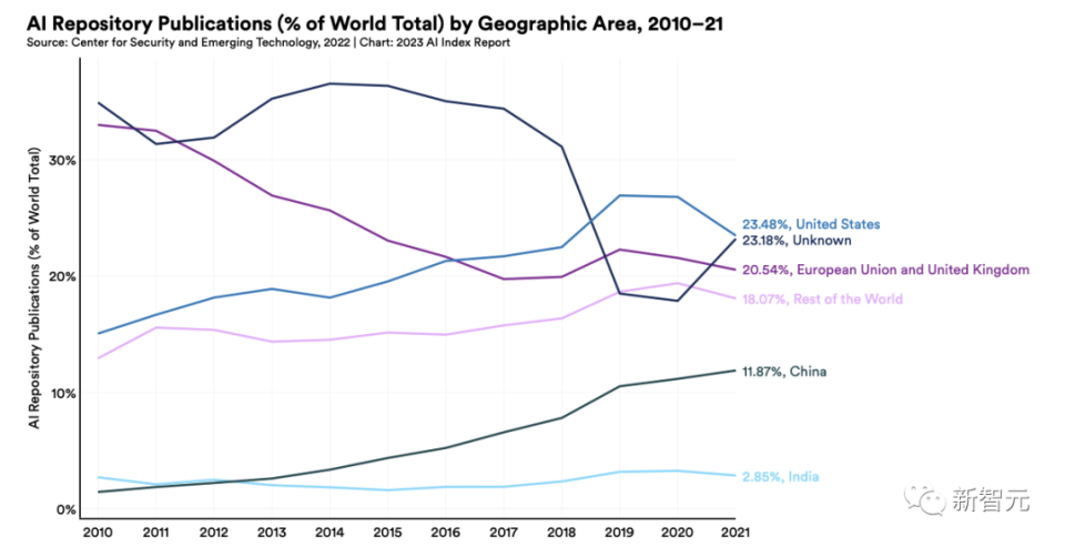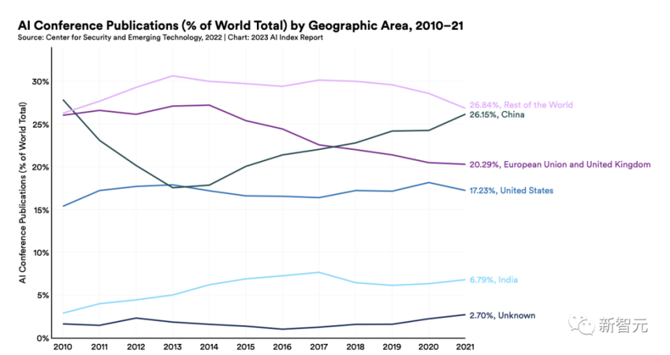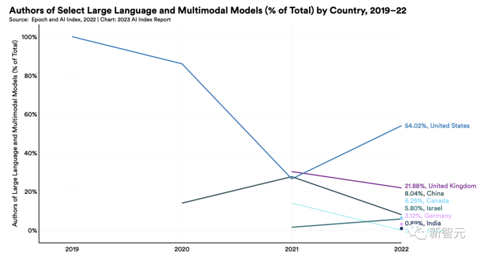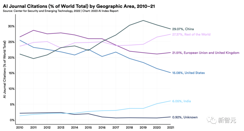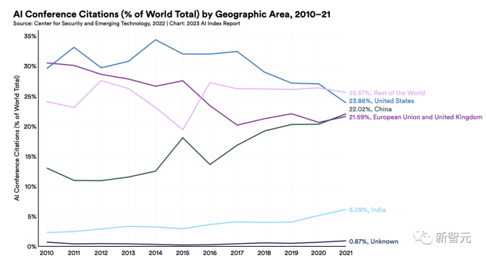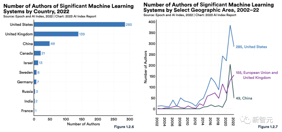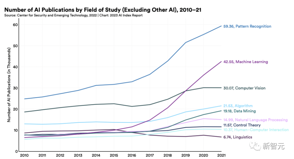 新智元报道编辑:桃子 【新智元导读】2023年人工智能指数陈诉发布了!这份陈诉表现,中国在AI顶会论文上体现天下居首,然而引用量却低于美国。别的,AI论文发表量天下前十的机构中,中国占了9席,纷纷赶超MIT。 本日,斯坦福发布了2023年AI指数陈诉。 值得留意的是,斯坦福AI指数陈诉列出了「AI论文发表量」天下前十的机构,9所全部来自中国,纷纷赶超MIT。 它们分别是:中国科学院、清华大学、中国科学院大学、上海交通大学、浙江大学、哈尔滨工业大学、北京航空航天大学、电子科技大学、北京大学、以及MIT。 本年的陈诉紧张分为八大节:研究与发展,技能体现,人工智能技能伦理,经济,辅导,政策和管理,多样性,以及公众观点。 以下内容提取了陈诉几项要点。 中美论文相助环球居首 从2010年-2021年,只管AI论文跨国相助的步调已经放缓,但是自2010年以来,美国和中国的人工智能研究相助数量增长了约莫4倍,比中国和英国相助总数多2.5倍。 然而,从2020年-2021年,中美相助的总数仅增长了2.1%,是自2010年以来的最小同比增长率。 别的,人工智能论文的总数自2010年以来翻了一番以上。从2010年的20万篇增长到2021年的近50万篇(49601)。 就AI论文发表的范例来看, 2021 年,全部已发表的AI论文中有60%是期刊文章,17%是聚会会议论文,13%来自存储库。 固然在已往12年中期刊和储存库论文分别增长了3倍和26.6倍,但聚会会议论文的数量自2019年以来有所降落。 模式辨认、呆板学习和盘算机视觉仍旧是人工智能范畴研究的热门话题。 中国在期刊、会媾和储存库论文总量方面仍旧处于领先职位。 美国在人工智能会媾和储存库引用方面仍旧领先,但这些领先上风正被逐步减弱。只管云云,天下上大多数的大型语言模子和多模态模子(2022年54%)是由美国机构产生的。 中国霸榜AI顶会,但引用量低于美国 AI期刊论文的发表,中国始终保持领先职位,2021年为39.8%,其次是欧盟和英国(15.1%),然后是美国(10.0%)。 自2010年以来,中国人工智能期刊论文被引频次占比渐渐上升,欧盟、英国、美国均有所降落。中国、欧盟和英国、美国占环球总引用量的65.7%。 那么,天下顶会论文发表的情况又怎样? 2021年,中国以26.15%的比例在环球AI顶会发表的论文数所占份额最大,而欧盟和英国以20.29%紧随厥后,美国以17.23%位居第三。 从顶会论文引用量来看,中国固然高产,但引用量相较于美国来说较低。美国顶会论文引用量23.9%,中国为22.02%。 从侧面可以看出,中国论文发表数量最多,但质量不如美国高。 在AI论文储存库提交方面,美国活着界居首,23.48%。中国最低,11.87%。 中国9所机构,AI论文发表赶超MIT 2021年,发表论文总量天下前十机构中,中国占了9所,差别机构发表的论文总数如下图,MIT位列第十,发表论文1745。 就盘算机视觉范畴(CV)来看,中国的十所机构位居天下前十,它们分别是,中国科学院、上海交通大学、中国科学院大学、清华大学、浙江大学、北京航空航天大学、武汉大学、北京理工大学、哈尔滨工业大学,以及天津大学。 在自然语言处理处罚(NLP)范畴,就有所差别了。 天下前十的机构/公司有:中国科学院、卡内基梅隆大学、微软、清华大学、卡内基梅隆大学-澳大利亚分校、谷歌、北京大学、中国科学院大学、阿里、亚马逊。 语音辨认范畴排名如下: 工业界领先学术界 在2022年发布的紧张人工智能呆板学习体系中,语言体系占最多,有23个,是多模态体系数量的6倍。 在论文产量上,工业界领先于学术界。 直到2014年,大多数紧张的模子都是由学术界发布的。从其时起,工业界便逆袭翻身。到2022年,32个紧张的呆板学习模子都诞生在工业界,而学术界仅有3个。 由此可见,与非营利构造和学术界相比,构建开始进的人工智能体系越来越必要大量的数据、盘算性本领和资金资源,而行业到场者固然有更多的资金资源去做这件事变。 2022年,美国产生了数量最多的紧张呆板学习体系,有16个,其次是英国(8个)和中国(3个)。 别的,自2002年以来,就创建的紧张呆板学习体系总数而言,美国已经凌驾了英国和欧盟、中国 再来看做出这些紧张AI体系背后研究者国分布,美国有最多的研究者,285人,是英国的2倍多,是中国的近6倍。 LLM越来越大,算力越贵 大型语言和多模态模子,偶然称为底子模子,是当前一种新兴且日益盛行的AI模子范例,它在大量数据上举行练习并实用于各种卑鄙应用步调。 ChatGPT、DALL-E 2和MakeA-Video等大型语言和多模态模子已经展示了令人印象深刻的功能,并开始在现实天下中广泛摆设。 通过对这些模子作者的国家从属关系举行了分析,这些研究职员中的大多数来自美国机构(54.2%)。 斯坦福AI指数陈诉还列出了大型语言和多模态模子发布的时间表。 大型语言模子正变得越来越大,也越来越昂贵。 第一个大型语言模子GPT-2于2019年发布,有15亿参数,练习资本约50000美元。谷歌PaLM是2022年推出的大型语言模子之一,有5400亿参数,资本高达800万美元。 从参数和练习成原来看,PalM比GPT-2大360倍,资本高出160倍。 不光仅是 PalM,从团体上看,大型语言和多模态模子变得越来越大和昂贵。 比方,DeepMind于2022年5月推出的大型语言模子Chinchilla估计耗资210万美元,而BLOOM的练习约莫耗资230 万美元。 随着时间的推移,GAN在人脸天生方面的希望,末了一个图像由Diffusion-GAN天生,这一模子在STL-10上取得了最新的SOTA。 客岁,随着OpenAI的DALL-E 2、Stability AI