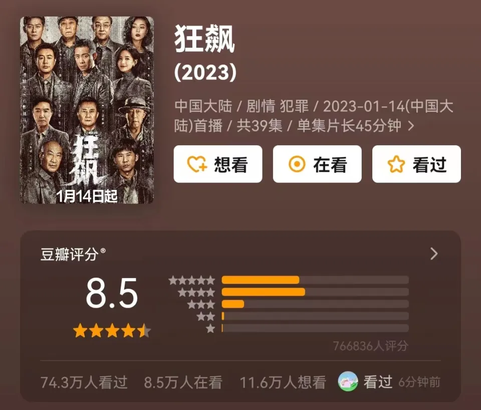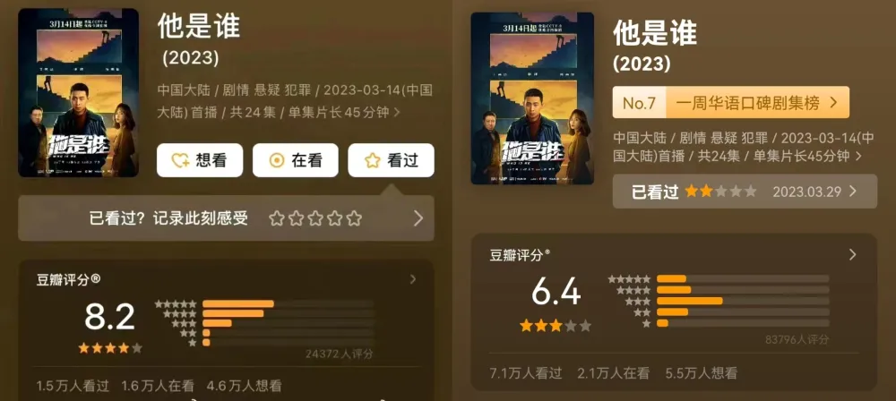 2023年国产三大剧出现不一样的口碑结果: 张鲁一和于和伟主演的《三体》从8.1分涨到8.7分,相当于《流离地球2》中的太空电梯,直接扶摇直上,一飞冲天。 张颂文和张译主演的《狂飙》开局8.7分,中心一度涨到9.1分,收尾阶段跌至8.5分,口碑有高有低,好似过山车。 而张译领衔主演的《他是谁》则直接玩了一把蹦极,从8.2分直接狂跌至6.4分,用《狂飙》的反向词语“狂跌”来形容最为得当。 从星级分布图可以看出,开播不久观众险些打出了四颗星到五颗星,而收官之后,绝大部门观众把评分改成了三颗星,评分狂跌至6.4分。 《他是谁》成为继冯小刚《反响》后,第二部高开低走型国产剧,观众改分来由出奇同等,两个字:烂尾! “他是谁烂尾”一词于4月4日下战书2点一度冲到热搜排行榜第一,阅读人次到达9000多万,讨论度居高不下。 由于有些剧迷为了看这部剧费钱购买了某平台VIP会员,加上烂尾缘故原由,观众竟然要找编剧的贫苦:“你要不要看看本身写的什么玩意儿?退钱!” 没想到,同意的人还挺多。 我在群内讨论评分降落,好友直接说出了这是一部“诈骗剧”。 那么,《他是谁》到底做错了什么?为什么收官之后,出现云云大相径庭的口碑效应呢? 着实,这部剧的标题很多,末了两集尤为严厉,根本不思量剧情逻辑和观众的观剧感受,这直接导致了口碑崩塌,重要表如今以下几点: 第一,有头无尾。 开局的“虎头”让人面前一亮,《他是谁》根据国内两大闻名案件改编,首播关注度空前高涨,前四集把四个案件糅合在一起,给人有种逻辑细密和悬疑感。 而末了88年的案件以动机不那么显着草草了案,蒋广善是谁人凶手没有出现任何反转剧情,前期娓娓道来的惊悚和悬疑,在末了两会合无法体现出来。 别的一个余爱芹案,直接用了字幕来收尾,前面花了大量时间,在垃圾堆中探求线索,张译有模有样带着徒弟一起征采到排水渠,为了突出张译的演技,乃至让他潜水探求,那末了到底是谁抛的呢? 第二,爱情戏不知所云。 不是不能加爱情戏份,但不要那么浓墨重彩,你看《狂飙》中有高启强和大嫂的戏份,也有张译和李一桐的虐恋戏份,但只是蜻蜓点水,一闪而过。 由于这些爱情戏无法为主线提供更多的加分项,就像食品中的某些无关紧急的配料一样。 但是《他是谁》中出现的三组不端庄的爱情戏份,尴尬到观众要用脚趾狂抠地板的节奏。 卫国平和聂小雨的爱情戏,用“小雨,站住”如许的台词反复探索观众的底线,两个人不爽,还把陈江山加到一块,硬是整出了两个大夫君在河滨狂喊“小雨,站住”的剧情。 编剧,算你狠! 宋哲和顾开岩来了一场“猫鼠爱情”,一个想尽办法也要贴到一起,而别的一个对卫国平恋恋不忘,送影戏票那场,差点弄出来三人感情纠葛,不相识的观众看到这里,还以为是爱情剧呢。 王德发和卫晓霞直接上演救赎和被感动,王德发醉酒故意不回家,躺在卫晓霞门口昏昏入睡,好家伙,被他伤害致残的卫晓霞奉上了毛毯。 完了,看到这时,我还在心中不停地提示编剧,万万别组CP啊,很遗憾,怕啥来啥。 第三,反派点到为止。 《他是谁》开篇除了给出悬疑剧情之外,更增长了扫黑和反腐的内容,这让各人等待不已,由于《狂飙》就是走如许的蹊径,末了成了2023年第一大爆款。 但是本剧中的反派剧情全部都是点到为止。 点到为止的聂宝华。 这个脚色是由赵阳担纲的,放到《狂飙》中就是张颂文扮演的高启强的脚色,后者把高启强怎样最大的过程,安心为此纠结半生的缘故原由论述得一清二楚。 而本剧中,发家的聂宝华为何让电机厂的工人那么痛恨,背面拿到地之后,他又为啥对工人那么好?来龙去脉不做任何论述。 在《他是谁》中,也有卫国平和聂宝华同桌共餐的剧情,但末了聂宝华被赵世杰算计直接被炸了,前面做那么多毫偶然义的铺垫就这么子虚乌有了。 点到为止的赵世杰。 “今晚全场消耗由赵公子买单。”这是王千源主演的影戏《大人物》中的一句闻名台词,包贝尔在影戏中出演赵公子这个脚色。 看过影戏的观众对这个脚色的印象肯定非常深刻,他把赵公子霸道霸道的一面描画得极尽描摹,观众无不鼓掌喝采。 而《他是谁》中赵公子是由俞灏明扮演的,他的演出没有任何标题,但是这个脚色让人没办法记着,在关键剧情上面,没有得到大篇幅的着墨。 点到为止让赵世杰彻底沦为绿叶演员,原来他是余爱芹案中的告急怀疑人,由于全部的线索都指向了他,但他末了则成了黑吃黑中的反派人物。 编剧,说好的,这是刑侦剧呢? 点到为止的蒋广善。 作为本剧中最告急的怀疑人,在收罗指纹时就已经泄漏了身份,观众在后续剧情中还在推测到底谁才是真凶,险些全部的剧迷都信任剧情肯定会有反转。 观众还是高估了编剧,真凶就是他,不外,编剧对他的形貌着实太过潦草了,从他第一次犯案到末了一次被捉拿归案,应该要把他全部的动机和生理都要体现出来。 然而,与赵世杰相助的那起案件搞了一个偶然发生,中心穿插被小地痞打自动报警的故事着实让人想不通,显动手中有6万块,不救妻子,还让各人捐钱又是几个意思? 他到底是爱妻子呢?还是不爱呢?前后抵牾,诸云云类磨练观众智商的剧情应有尽有。 别的,另有的反派直接不了了之,好比说赵刚和宝莉没了就没了,不是重点反派,没了就没了,是吧。 赵世杰的哥哥说,不要牵涉到我,嗯,收官竣事了,确实没你什么事,反正点到为止就行了,谁还