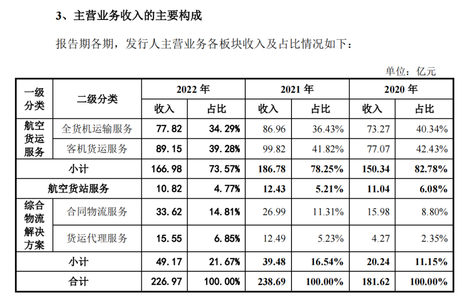三大航空央企物流板块混改落地后,即将齐聚A股。 克日,中国国际货运航空股份有限公司(以下简称“国货航”)更新招股书。国货航的厚交所主板IPO申请书已获受理,保荐机构为中信证券。 此次提交的招股书,重要更新了2022年的年度谋划数据,2022年国货航业绩团体呈同比下滑,2022年国货航业务收入227.85亿元,同比降落约4.9%;归母净利润为30.81亿元,同比降落28.4%;主业务务毛利率为20.03%,同比降落22.21%。 受益于国家政策支持,比年来我国航空物盛行业处于快速发展的黄金窗口期。据悉,三大航空央企的货运改革于2017年起相继落地后,便开启上市规划,此中东航物流(601156.SH)首当其冲,已于2021年6月完成A股上市。客岁11月30日,南航物流向中国证券监督管理委员会广东羁系局提交了上市辅导存案申请质料。本年3月28日晚间,南边航空公告,拟分拆南航物流至上交所主板上市。 国际收入占比八成,业务利润面对同比下滑50%以上的风险 近三年,国货航年营收均超百亿元,年净利润均超30亿元,2020年至2022年,国货航业务收入分别为182.51亿元、239.58亿元和227.85亿元,净利润分别为32.92亿元、43.05亿元和30.84亿元,归母净利润分别为32.89亿元、43.03亿元以及30.81亿元,主业务务毛利率分别为25.05%、25.75%以及20.03%。 随着国货航红利程度的稳步提升以及股东增资款到位,公司权益大幅增长,已往三年资产负债率大幅降落,分别为40.86%、25.33%以及10.59%。 而对于国货航业绩数据先增后降,招股书先容称,一方面,因客机腹舱运力镌汰、海运港口停摆、铁路运输网络遭受打击等因素导致环球供应链体系遭到粉碎,航空货运代价程度上升;另一方面,受环球各国接纳的经济刺激政策影响,环球贸易总额在2020年第二季度降至低点后一连复苏,行业卑鄙需求强劲,由此带来航空货运运量的增长。2022年以来,一方面因环球航空运力增长,进而导致航空货运代价程度出现下滑;另一方面,受环球重要经济体经济增长放缓、俄乌辩说等巨大倒霉事故影响,航空货运需求有所降落。 疫情三年,国货航营收及净利润团体表现亮眼。而国货航也在招股书中提及未来业绩下滑大概凌驾50%的风险。 招股书先容,未来,随着航空业渐渐进入常态化运营,航空货运的运力供给渐渐好转,运价大概渐渐回落;同时,航油代价受战争辩说、政治因素、供需厘革等复杂外部情况影响大概大幅颠簸,会导致业务本钱相应厘革,若上述单一风险因素出现较大程度的厘革,或诸多风险同时会合开释,大概导致上市当年业务利润较上一年度下滑50%以上的风险。 国货航现在已发展成为国内重要的航空物流服务提供商之一,主业务务可分为航空货运服务、航空货站服务、综合物流办理方案三大板块。此中,航空货运服务营收占比在七八成左右。在2020年、2021年和2022年,国货航航空货运服务收入分别为150.34亿元、186.78亿元和166.98亿元。 国货航依托全货机、客机货运向客户提供航空物流服务。数据表现,已往三年,国货航全货机数量保持稳定,客机腹舱数量有所增长,航空运力程度团体保持稳固。而货邮周转量、货邮运输量均出现先增长后降落的厘革趋势,重要是受卑鄙需求厘革、运输货品范例不划一因素影响。 国货航、东航物流、南航物流为我国航空物流市场重要的市场加入者,在货邮运输量以及货邮周转量上规模也相雷同。在货邮运输量(每一航段货品、邮件运输的重量之和)上,2020年和2021年三家公司的份额均超五成;货邮周转量(每一航段货品、邮件重量与该航段间隔的乘积之和)方面,市场份额共计均超七成。 此中,2020年以及2021年,国货航在货邮周转量市场份额仅次于南航物流,排名第二。在货邮周转量方面,国货航在2020年仅次于南航物流,排名第二,在2021年排名第三。 值得留意的是,已往三年,国货航国际收入占比在八成上下,且比例逐年提升。招股书表现,重要由于公司航空货运航线以国际航线为主,客户多为SCHENKER、DGF、康捷空等国际货代公司大概苹果公司等跨国企业。随着公司与上述客户相助规模的不绝扩大,境外收入占比也逐年增长。 别的,作为以航空运输服务为焦点的综合物流服务商,航油本钱是最为告急的本钱付出之一。具体来看,2020年至2022年,国货航禾致垩分别为12.65亿元、19.1亿元以及31亿元,占主业务务本钱的比重分别为9.28%、10.76%以及17.06%。禾致垩的增速分别为-22.34%、50.91%以及62.33%,航油采购均价为2937.66元/吨、4214.3元/吨、7379.22元/吨。 为应对航空火油代价一连上涨的趋势,国货航在招股书中表现,重要通过收取燃油附加费以部分转嫁航油代价上涨风险、选代替价优惠的供应商来低落航油采购本钱。 和国际大型物流集成商相比力气仍存差距,筹划扩充机队规模 据招股书先容,国货航前身为中国国际货运航空有限公司,于2003年3月3日创建,由国航公司、中信泰富、都城机场团体共同投资创建注册资源为22亿元。2022年6月22日,团体变更设立“中国国际货运航空股份有限公司”,法定代表人为郑保安。 股权布局方面,国货航共有7个控股股东,中国航空资源持股45%、菜鸟供应链持股15%,国泰货运持股12.24%,朗星公司持股11.75%;深国际持股10%,杭州双百持股5%,天津宇驰持股1%。 此中,中航团体持有中国航空资源100%股权,并通过中国航空资源间接持有发行人45%股份,为发行人的现实控制人。 国务院国资委持有中航团体90%股权,天下社会保障基金理事会