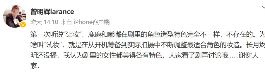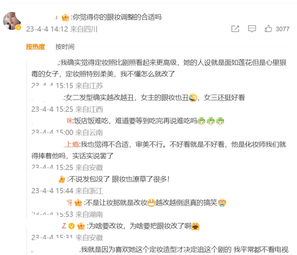 拥有“待爆剧”标签的《长月烬明》应该是Q2最热闹的作品,从路透到定档皆包揽热搜,看片会一众“业内人士”出头认证作风致量,吸引了浩繁网友关注。 然而,尚未播出的《长月烬明》还没带来“爆款古偶”的话题盛世,关于脚色的“让妆”说便先引爆热搜,提前上演一轮腥风血雨的舆论之战。 《长月烬明》“让妆”变乱变乱由《长月烬明》定档后发布的预告而起,有网友质疑预告片中的妆造不如试妆阶段公布的物料,尤其是女配陈都灵的妆造出现“降级”征象。 陈都灵在初期公布的试妆、花絮中妆造非常受宠,被网友点赞神还原“面如观音,心若蛇蝎”,外貌白莲花内里黑莲花的反派尤物,让不少网友以为面前一亮。 这组造型一度在视频网站屠版,可见人气之高,演员也由于妆造出彩刹时登上古典尤物盘货常见名单,为出道多年不温不火的她反哺了不少人气。 但许多因脚色妆造关注《长月烬明》的观众,却发现预告片中陈都灵最出圈的两个造型皆被改动,疑似拿掉发包、改变发髻,神女形象向普通化靠拢。 对此,有网友质疑陈都灵“精修诈骗”,动态与静态区别太大。 然而,陈都灵前期出圈的定妆花絮皆是动态物料,“精修”根本可以清除,网友便将抵牾指向剧组,广泛感到不解,此时有人提出大概存在“让妆”。 意指为了不让女配形象盖过女主,放弃了本来能让女配更出彩的妆造。 话题讨论一旦牵涉到两位演员,粉丝撕扯便无法克制,陈都灵粉丝不满剧组让偶像背了“精修诈骗”骂名,更不满偶像本来出圈的机遇大概会被扼杀。 女主白鹿的粉丝则以为是天降大锅,不但偶像颜值被diss,还背了欺凌同事名声。 话题上升到“让妆”掰头后,造型师曾明辉出来“辟谣”,体现演员各有各的美,妆容的差别只是拍摄过程中的通例调解,为求找到最符合的妆造。 剧方与平台也出头认证“让妆”一说太“离谱”,但各方辟谣不但没让话题停歇,反而愈演愈烈,如今“让妆”已经是《长月烬月》最热门的关键词。 到底有没有让,网友存在各自的判定,但对于大多数平凡观众来说,信任无论“让妆”的意思还是它涉及的争议,都让人以为匪夷所思。 《长月烬月》到底存在不存在“让妆”?“让妆”一说又是源何而起?围观过各种奇奇怪怪影视剧掰头的七话,如今便带着各人一起深入分析该征象。 “让妆”的由来影视行业不绝存在为了陪衬某个脚色故意在造型上打压其他艺人的说法,但不绝没有得到业内人士出头证明,多传播于网友讨论之中。 稍微算是有点“锤”的,是冰冰的履历。 冰冰早期在《还珠格格》、《小李飞刀》妆造较素,限定了仙颜发挥,尤其是《小李飞刀》时期,由于专业化装师脱手会让脚色太过美丽,她只好本身化装。 但团结脚色来看,观众可以发现化装师不突显她的仙颜才是对的,由于当时的范冰冰重要出演丫鬟脚色,如果妆容比小姐还美丽,反而会让观众出戏。 反面案例在《武神赵子龙》以及正在播的《花琉璃轶闻》,由于丫鬟妆造太过富丽,观众一眼望去丫鬟小姐傻傻分不清楚,妆造忽略了脚色身份定位。 为特定脚色服务而收敛演员形状上风,是妆造必须思量的因素,但近几年影视行业出现大量与脚色要求无关的糟糕造型,渐渐使“让妆”成了新兴词。 比如《沉香如屑》张睿的杀马特造型,不但与其他脚色风格大相径庭,还袒露了演员的形象缺点,“扬短避长”的妆造,由于过于难明白而被猜疑是“让妆”。 这便让男主成毅的舆论处境略显尴尬,以成毅的帅是不是必要副角“让妆”为题,一度出现小范围的粉黑大战,但该剧出品方在妆造方面,经常发挥失错误。 电视剧《青云志》便深受其害,赵丽颖、杨紫的妆造,都一言难尽。 基于观众对剧方宁要“丑”不要美妆造风格的不明白,“让妆”的推测不绝没停歇,若碰上演员粉黑大战,“让妆”猜疑,极易成为掰头核心。 以是“让妆”前期在饭圈里更盛行,尤其实用于男主和男二粉丝,或黑与粉之间的撕扯,让“让妆”大范围出圈的,反而是无粉黑大战的《雪中悍刀行》。 该剧男配高伟光的妆造与他过往形象大相径庭,既无美感也无精气神,导致不少观众猜疑剧组为了维持住男主张若昀的美女人设,让帅哥高伟光“让妆”。 一时间“让妆”成了热门话题,爱演美女的张若昀被群嘲。 然,《雪中悍刀行》副角造型简直一言难尽,但细致观察你会发现,这部险些没有颜值不被造型拖累的演员,凭古装颜值出圈的孟子义在这里长如许。 “初恋脸”玉人丁笑滢、御姐隋俊波都成了“素人”…… 一群玉人帅哥的颜值皆被封印,剧组从开播到竣事不绝没逃脱打光差、造型敷衍的骂声,与“让妆”相比,团队本领与审美不敷的判定,大概会更贴近现实。 简朴来说,“让妆”源于层出不穷的丑造型,发酵于粉丝与粉丝,或部分观众之间撕扯,颠末大量疑似“案例”的连续陪衬,徐徐成了心照不宣的征象。 “让妆”的可行性网友心照不宣,但真实是否存在?客观来说,名利场齐备皆有大概,影视作品里大明星为了全剧最美/最帅打压副角的脚本,很难说不是开端现实。 更何况,让与不让,还存在客观因素的必要,连婚礼、聚会会议主人公时常都会介怀被来宾穿着压过风头,影视作品里的大咖主角们,不免不存在拔尖心态。 但经常追剧的观众会发现,在演员颜值旗鼓相当的环境下,让与不让区别不大,刻意的让反而会引起观众质疑,便双方都不是小透明,