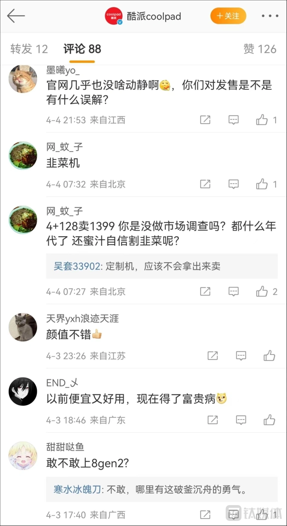 作者/杜志强,编辑/钟毅 时隔十个月,酷派再次更新产物线,连发COOL30、锋尚40和大观40s三款新机,定位千元入门5G手机。此中,酷派大观40s已经上线官方商城,起售价1399元。 从当初的国内市场“一哥”,到后期的“others”。酷派有过属于本身的光辉期间,也履历过孤立无援的时间。2020年,酷派回归时,曾立下“三年重返国内手机第一梯队”的壮语。 两年时间已往,酷派在手机市场仍未见转机。举世手机行业的下滑,更是给而立之年的酷派添了一把堵。 入门的设置,卖出中端的代价差异于当天一同发布新品的realme,酷派的新品发布很低调,乃至都没有公开的品牌运动,只是在官方外交平台发了一张新品的照片,设置代价都没有。品评区有很多粉丝留言,但酷派官方并未就新机做出更多的宣传动作。 如今,三款新品之一的大观40s已经上架官网。从官网公开的参数信息来看,相比力市面上主流产物,酷派大观40s的团体设置较低,定位入门级别的5G手机。 详细来看,酷派大观40s配备一块6.52英寸LCD水滴屏,分辨率只有720P,机身厚度8.48mm,重量为180克,支持侧面指纹辨认。性能上,酷派大观40s搭载天玑700八核处理处罚器,前置500万像素摄像头,后置1300万+200万像素双摄。配备一块4500mAh电池,支持18W快充。 720P分辨率、天玑700处理处罚器,这个看似不属于2023年的设置,但定价上仍旧很“自负”。此中,4+128GB售价1399元,6+128GB售价1699 元,8+256GB售价2099元。 作为对比,同样是8+256GB版本,同一天发布的真我GT Neo5 SE以及发布不久的Redmi Note 12 Turbo,售价都是1999元。这两款产物搭载的则是最新发布的第二代骁龙7+处理处罚器,安兔兔跑分超百万,照相、屏幕、电池等硬件,也都是领先酷派大观40s很多。 不但云云,一年前发布的COOL 20s,同样是搭载天玑700处理处罚器,屏幕分辨率更高,影像性能更强,定价却更低,4+128GB售价999元,6+128GB售价1199 元,8+128GB售价1399元。 据相识,酷派大观40s将作为运营商定制机售卖,后续会有补贴,但这个代价也没有所谓的性价比一说。别的两款cool 30和锋尚 40新机暂未上架,网传搭载的是联发科Helio G85处理处罚器,代价也在千元左右。 借用一位网友的品评,总结一下这次酷派发布的新产物,“从前自制又好用,如今得了富贵病”。 创建30年,从国产第一沦为others三十年河东,三十年河西,酷派用本身的发展史很贴切地演绎了这句话的寄义。相比力如今的崎岖潦倒,酷派也有着属于本身的光辉光阴。 30年前,酷派正式创建,从传呼机到功能机再到早期的智能机,不绝是国产物牌的代表。无论是在销量上,照旧在技能创新上,酷派都处于国内市场的火线。 尤其是到了智能手机期间,酷派争先结构,手机产物的火爆贩卖,更是让其业绩翻倍增长。追念起十年前的那段韶光,酷派与复兴、华为和遐想被称为“中华酷联”,主导着国内手机市场,更是一度高出三星,成为国内手机市场的TOP1。 不外,成也萧何,败也萧何,酷派的兴与衰都与运营商有着牵连。差异于如今的手机品牌依靠自建线上线下渠道出货,智能机发展早期,运营商是很多品牌最紧张的出货渠道。酷派在2012年发布的数据体现,旗动手机95%都是运营商定制机,与中国电信和中国联通的互助,也让其收入比年保持着较高的增速。 只是,没有永世的“背景”。在运营商补贴期间已今后,酷派也开始走下坡路,国内销量掉出前五,成为排行榜中others的一员,产物竞争力也难以与小米等品牌相比。后期,酷派也做出过改变,推出“大神”互联网品牌,渴望以性价比来夺回失去的用户和市场,但效果并不明显。之后,与乐视的“牵手”,更是成为酷派不肯提及的痛楚。 值得留意的是,在乐视之前,酷派曾与360“搭伙”,创建奇酷科技。但就在新产物即将发布之际,一个令360尴尬的变乱发生了,乐视27亿港元入股了酷派团体,成为了酷派第二大股东,后续再次出资10.47亿港元,成为单一控股股东。 其时的乐视正在“生态化反”阶段,投资酷派将会进一步提拔在终端的影响力。对于酷派来说,与360和乐视的“牵手”,将会提拔渠道和产物本事。只是,酷派的想法很优美,但360并不乐意,后期二者之间的“暗战”也成为其时热议的核心,终极以360取得对奇酷的控制权竣事了这场“闹剧”,酷派也将渴望都押在了乐视身上。 差异于运营商期间的荣幸,酷派押错宝了。乐视所谓的生态渐行渐远,资金也出现了标题,贾跃亭远走美国,酷派也遭到了很严肃的波及,剩下的烂摊子只能本身摒挡,一度通过卖地以及专利诉讼营生,直到2019年被京基团体首创人陈华的二儿子陈家俊接办后,酷派才算是“重生”。 王者归来?酷派难回第一梯队“重生”之后的酷派,并未放弃重返手机市场的执念。陈家俊更是立下豪言,称“目的将来三年,重返国内手机第一梯队”。 着实,从酷派回归的时间点来看,确实是一个好机遇。2019年,国内正式进入5G商用期间,酷派如果能捉住这一波换机潮,大概率会复制当初3G期间的乐成。从回归后的一系列动作上来看,酷派确实也是认真的。 在资金的标题上,从2020年开始,酷派就在资源市场融资高出21亿港元。职员架构上,酷派任命秦涛为酷派团体高级副总裁,胡行、李宇靖和司马云瑞为酷派团体副总裁,而他们都曾在小米工作过,酷派也渴望可以或许复制小米乐成的履历。 2021年5月,酷派发布了回归后的第一款产物COOL 20,玻璃机身,起售价699元。相比力同价位的手机,COOL 20提供了更长时间