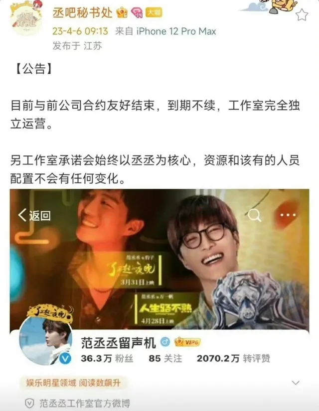 4月6日是范丞丞作为《偶像练习生》男团ninepercent成员出道5周年怀念日,偶合的是当日范丞丞方公布与乐华娱乐合约到期且不续,工作室正式独立运营,引发网友们的热议。 范丞丞最初进入大众视野就是通过《偶像练习生》这档节目,作为内娱的101系选秀鼻祖,该节目在播出之时很受关注,送出了蔡徐坤等人气选手,范丞丞也吃到了不少红利。他地点的乐华娱乐更是由于一系列选秀节目而水涨船高,依附着旗下王一博、程潇、孟美岐等艺人,成了公认的内娱第一爱豆经纪公司。 在这种环境下,范丞丞选择离开手握资源的大娱乐公司,很难不让人猜疑他是尚有操持。再加上他身上“范某冰亲弟弟”的头衔,很多人推测范丞丞这是要投靠姐姐的节奏。 固然范丞丞方官宣与乐华合约到期不续的公告中没有提及详细操持,只称是要独立运营,不外接洽起克日他与另一位女爱豆之间有关经纪人的纷争,照旧能看出端倪。 变乱的因由是网上有爆料女爱豆谢可寅将签约范丞丞姐姐,范丞丞的粉丝循迹去挖,竟然发现从前跟在范丞丞身边的经纪人出如今了谢可寅的行程中。范丞丞的粉丝对此非常不满,以为以范丞丞的咖位,和谢可寅共用经纪人非常不符合,更有甚者迁怒范丞丞姐姐,直言她如今是该死。 而这位话题中心的经纪人,在交际平台上的认证照旧“范冰冰工作室经纪人”,看来确实是范丞丞不停在用姐姐身边的人。 该经纪人还由于不堪粉丝攻击,正面回应了此事。可故意思的是他的回应全篇没有提到签约谢可寅,只采取了默认的态度,反倒是预热了一波范丞丞在4月6日的新工作安排,如今看来说的应该就是离开乐华了。 在这篇回应中,经纪人明白表现了十几年前他刚刚到场范某冰的工作室时,就开始在为范丞丞的奇迹做计划,而他口中的“公司”,也天然是范某冰工作室。他还透露本年范丞丞另有一些即将开展的影视项目,称期待4月6日欢迎公司的全新阶段。 而经纪人开篇所说的“还没有到官宣节点就被打乱节奏”,应该是指原来计划等6日范丞丞官宣离开乐华时再公开,云云看来范丞丞日后的单打独斗背后势必有姐姐的加持了。 对于离开乐华这个结果,范丞丞的粉丝保持着一副锣鼓喧天的高兴样子。究竟岂论公司再大、可以大概分给个人的资源照旧有限的。而离开乐华投靠姐姐,可以大概得到的助力不问可知。 如今再看范丞丞的奇迹发展之路,联合经纪人透露的信息,乃至可以推测一波这齐备都是姐姐为弟弟的铺垫安排。先背靠大公司到场选秀露露面,比及有些结果的时间再离开,不停用姐姐团队的人,只是挂个乐华的名头。不外冰冰应该没有推测,弟弟刚进圈混了个脸熟,本身先出了事。 不外瘦死的骆驼比马大,她在娱乐圈这么多年积攒的人脉和资源,富足给弟弟铺路的了。看范丞丞近期上映的两部影视作品,应该就是她团队的手笔。 不外资源共享也可以明白,究竟范丞丞要走影戏路,肯定照旧姐姐这边资源比力好,终极就看范丞丞本身能不能捉住时机进步力气了。 本文未经授权严禁转载违者必究! |