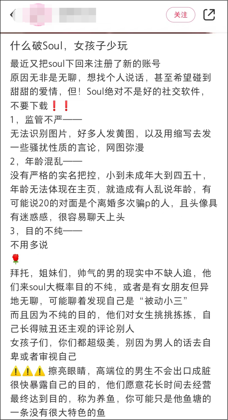 Soul,又要打击上市了。 3月27日晚,港交所文件体现,交际平台Soul再次向港交所递交上市申请,美银证券、中金公司为联席保荐人。 Soul曾经号称“灵魂匹配”,现实上,却不停难逃“色情温床”的名号。如今赴港在即,那些情色、杀猪盘标题都办理了吗? 4年亏了27亿 招股书中,Soul如许先容本身——Soul是为中国年轻一代而设的假造交际平台。 “年轻一代”被Soul反复提及,它还自负称,“我们拥有巨大的年轻用户群”。 数据体现,Soul在2022年的月均生动用戶到达2940万名,此中78.4%的月活用户都是Z世代(1995年后出生的群体)。 从2019年到2022年,Soul的月生动用户复合年增长率到达36.7%。 看这增长率,年轻人似乎被Soul拿捏住了。 但现实上,在2021年,Soul的月生动用户有3160万,也就是说,2022年Soul的月生动用户数反而降了7.3%。 与此同时,Soul的红利本领堪忧。 招股书体现,2019年-2021年,Soul分别实现收入7070.7万元、4.98亿元和12.81亿元,2022年进一步增长至16.67亿元,增幅30.1%; 2019年-2022年,Soul的毛利率从48.6%提升至86.3%。 固然这两个指标都是增长状态,但Soul却不停都与红利无缘。 招股书体现,2019年-2022年,Soul分别亏损3.53亿元、5.79亿元和13.24亿元,客岁它又亏了5.09亿元,合计亏损高出27亿元。 付费用户不买账? Soul为何连连亏损? 这要从Soul的主业务务提及,即广告服务和增值服务。 2020年,Soul开始对外提供广告服务,如今该业务的规模并不大。 2020年-2022年,其广告服务业务收入分别为1276.6万元、7786.4万元和1.48亿元,占总收入的比例分别为2.6%、6.1%和8.9%。 那增值服务是什么? 实在让用户充值Soul币,去买它的假造礼品、假造形象和游戏道具等。别的,想在Soul上加好友、谈天、发心情,也得先充值。 小编登上Soul,便有“同城卡/加速卡/定位卡”选项,点击发如今语音匹配下方,定位卡可以切换定位匹配远方灵魂,新手体验价15 soul币一次,原价则要25 soul币; 在奇遇铃下方,加速卡可以15分钟加速匹配,新手6 soul币一次,原价则要60 soul币,奇遇铃中,你还可以“氪金”设置本身的个性皮肤。 这些年,增值服务在Soul总营收中的占比就没下过90%。客岁,Soul靠这项业务收入15亿元。 但这些都须要用户作为支持,特别是付费用户。 2022年,Soul的月活到达2940万,但其月均付费用户只有170万,仅占5.8%。而2021年,Soul付费率也仅有5.2%。 这意味着,Soul的“氪金玩家”数量根本处于停滞状态,难怪soul赚不到钱。 与此同时,Soul在营销上的耗费也不少。据统计,2019年-2021年,Soul在贩卖及营销开支一共高出了29亿元。 到如今,Soul的钱也越烧越少了。 2021年,Soul账上的现金及现金等价物另有9.1亿元,但到客岁末,这一数额淘汰到6.7亿元。 情色、杀猪盘标题办理了吗? “跟随灵魂找到你。”这是Soul已往的slogan。 来到2023年,它的slogan变为了“年轻人的交际元宇宙。”前不久,它还成了首个接入文心一言的交际平台。 据其表述,“后续,Soul将全面体验并接入文心一言的本领,进一步深化人工智能与交际场景的创新融合。” 不外如今,它主打的“灵魂交际”玩法并没有什么变革——通过30秒的灵魂判断,找到真正的本身,并在社群中自由表达,与懂你的人即时互动。 在Soul,“用户可以无顾虑地表达本身,认知他人,探索天下,交换爱好和观点,得到精力共鸣和认同感”。 在这里,不靠颜值,仅靠“灵魂”,就能交到知心朋侪,得到慰藉和认同,似乎挺有吸引力。 现实上,Soul的灵魂判断不外是给你几个浮于外貌的标题,你答复后,给你贴上一个标签。再将和你标签雷同的人匹配到一起,如许的做法,让很多人都成了“尬聊选手”。 soul的灵魂测试 同时,由于须要的真实资料少,用户很难鉴别对方在APP上的情况是否与现实中同等,Soul的灵魂交际很容易酿成“灵魂杀猪”。 据不完全统计,如今与Soul有关的杀猪盘骗局已被曝光多达几十起,诈骗金额从几万元到几百万元不等,而这还仅仅是公安部门公布在网上的范例杀猪盘案例。 泉源网络 软色情标题,也是Soul注定无法回避的标题。 未来网曾报道过,Soul内一个名为“硕博高质量相亲”的派对谈天室中,娇喘声反复传来,露骨的对话不绝爆出—— “弟弟你好奶哦~”“你声音太软了,听的我都酥了,哎呀不能说这些太色情了。” 3月13日,一位用户发出了“什么破Soul,女孩子少玩”的感叹,“有大概说20的对面是个仳离多次骗p的人。” 泉源:小红书 停止如今,黑猫投诉上关于Soul的投诉高出3000条,除了软色情,Soul上另有面基受骗、诱导广告、大门生贷款等投诉内容。 究竟上,Soul对此给出了严厉打击。本年1月初,Soul自曝称,“2022年四序度,Soul上线1000多项风控战略,处罚100万人次,并共同公安构造乐成打击站内导流诈骗团伙2个。” 结语 自2016年上线至今,Soul已经走过6个年初了。 它靠着新潮的交际模式,吸引着年轻人的眼光,但陌生人的匿名交际,注定了外界对它的不确定性和合规性存疑。 曾经的Soul,隔断上市只差了临门一脚—— 2021年,Soul 曾在纳斯达克递交F-1表格,筹划赴美上市。但就在“敲钟”的前一天,Soul突然撤回了IPO注册,并停止上市。随后Soul转战港股。 2022年6月,Soul递交港股上市申请资料,但却迟迟未见盼望,直至本年年初质料失效,3月再次发起冲刺。 大概Soul也对此心知肚明,它须要找到一个新出路,便给本身打上了元宇宙的标签,还想要坐上AI这条快车道。 如今Soul账上的钱也越烧越少,难以支持其讲新的故事。大概这也