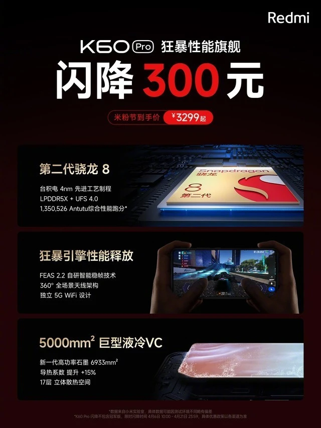 4月6日消息,2023米粉节期间,Redmi K60 Pro迎来贬价,全系直降300元。 K60 Pro有8GB+256GB、12GB+256GB、12GB+512GB三个版本,现在起售价3299元。 K60 Pro搭载第二代骁龙8旗舰芯,综合跑分135万,还配有2K高光屏、120W + 30W无线充电组合。 值得注意的是,现在已有多款骁龙8Gen2新机贬价。 iQOO 11新机三个版本已经贬价,12GB+256GB贬价后4099元,此前为4399元;16GB+256GB贬价后4399元,此前为4699元;16GB+512GB贬价后4799元,此前为4999元。 别的,iQOO 11赛道版12GB+256GB版本正在到场京东百亿补贴,补贴子女价为3523元。 iQOO 11的设置亮点是三星E6屏幕,2K 144Hz直屏,支持120W有线快充。 同样到场百亿补贴的另有摩托罗拉moto X40,12GB+256GB设置,补贴子女价为3329元。这款手机的特点是前置6000万像素摄像头,屏幕革新率165Hz,支持125W快充,支持100W PPS快充。 别的,努比亚Z50贬价300已经到位,如今是8GB+128GB售价2699元。 在各人选购比力多的设置上,12GB+256GB和12GB+512GB先是同样贬价300元,随后进入京东百亿补贴名单,补贴后的代价分别是3149元和3409元。 (8153121) |