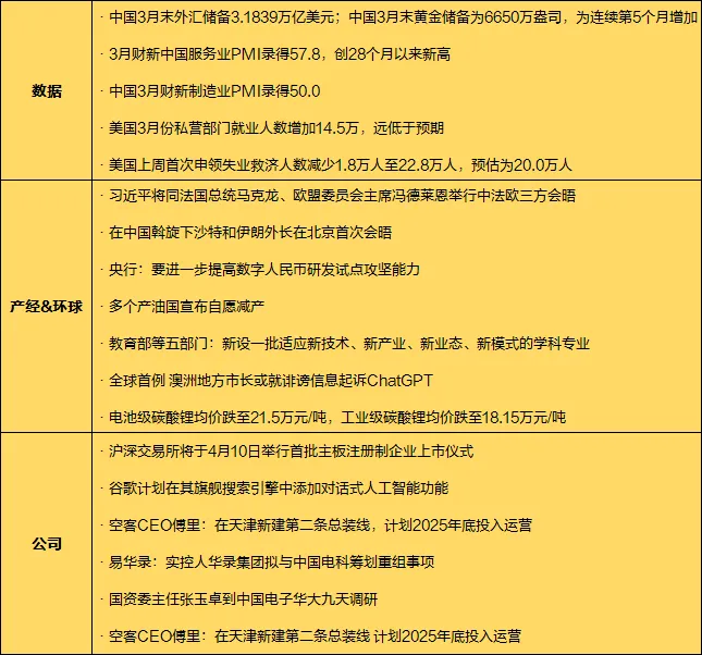 一、影响市场走势消息回首 二、市场概览 本周A股四个买卖业务日,沪指连续走高站上3300点,实现日线6连阳、周线4连阳;创业板指冲高后震荡,连续三周上涨。全周维度来看,上证指数累计上涨1.67%,深成指、创业板指周涨幅约2%,上证50上涨0.86%,科创50指数走势强劲,涨幅接高出7%,停止现在科创50指数年内累计涨幅已高出20%,率先辈入技能性牛市。 量能方面,本周四个买卖业务日的单日成交额均高出了1万亿元,此中周二成交额创下客岁2月25日以来新高。本周A股两市日均成交额显着放大至12062.135亿元,前一周为10046.55亿元。 三、热门复盘 全周维度来看,申万31个一级行业涨多跌少,科技、地产、医药相干板块体现较为精彩。此中通讯(+7.94%)领跑,涨幅靠近8%,电子(+6.69%)、盘算机(+5.55%)紧随厥后,房地产本周上涨4.65%,修建装饰、传媒、非银金融涨超3%,国防军工、医药生物、修建质料等涨超2%;汽车行业领跌,跌幅高出2%,煤炭行业也跌超2%,食品饮料、电力装备、商贸零售、根本化工等跌超1%。 在概念类指数中,MLOps概念大涨24.11%,CPO、DRG/DIP概念周涨幅高出15%,汽车芯片、Chiplet概念、EDR概念、算力概念、AI芯片、国资云等板块涨幅居前;汽车一体化压铸板块领跌市场,本周大跌5.17%,麒麟电池周跌幅到达3.8%,固态电池、钠离子电池、复合集流体、白酒等板块团体跌超2%。 人工智能高位分化,但仍不乏亮点。本周MLOps概念、CPO概念均为这一主题的分支。 MLOps是指完成AI模子开辟和落地的一套工具包,从数据收罗和处置处罚-模子接入-模子开辟-模子摆设和应用-监控和运维,MLOps提供一整套对应AI全生命周期的工具和服务,可以明白为AI期间的“铲子”。在国外,MLOps落地广泛、结果显着,其告急应用于构造内部的服务运营、产物或服务开辟、营销、风险推测及供应链管理等场景,应用行业涉及IT、金融、电子商务、制造、化工和医疗行业等。由于A股市场相干标的较少,相对的稀缺性就导致板块内的个股在近期均有不错的上涨体现。以是该板块团体的涨幅也较为可观。 共封装光学CPO(co-packagd optics)是一种新型的光电子集成技能,它将激光器、调制器、光吸收器等光学器件封装在芯片级别上,直接与芯片内的电路相集成,借助光互连以进步通讯体系的性能和功率服从。较之传统方案中(实现光电转换功能的)可插拔光模块插在交换机前面板的情势,CPO方案显着收缩了交换芯片和(实现光电转换功能的)光引擎之间的间隔,使得消耗镌汰,高速电信号可以或许高质量地在两者之间传输,同时提升了集成度并可以或许低落功耗。别的,同样具有低耽误、高数据速率需求的VR和AR,未来也有助于引发CPO需求。 四、牛熊榜单 电子、盘算机成为本周的赢家。 美光被实行网络安全查察,国内存储行业受关注,佰维存储本周大涨73.74%; 光模块、CPO主题中,光芯片概念股源杰科技涨超60%、CPO概念股新易盛涨近45%、光通讯概念股福晶科技涨超36%; 医疗信息化概念股山大地纬、长远银海、万达信息分别上涨54.13%、44.99%、38.79%; 阿里智能音箱概念股奋达科技涨近40%,同概念股的全志科技也大涨37.33%; AI芯片概念股罗普特上涨35.34%。 本周十大牛股(备:不含ST股及上市天数小于30天的股票) 熊股方面,百邦科技大跌30.5%,消息面上公司实际控制人之划一举措人刘一苇拟减持不超3.63%股份; 因核心子公司资金断裂停产,宁科生物连续两日一字跌停,本周累计下跌22.81%; *ST博天本周下跌18.64%,公司涉嫌信息披露违法违规 遭证监会备案观察; 人工智能概念股当虹科技、鸿合科技双双大跌近15%; *ST未来、*ST中昌、ST爱迪尔、*ST深南等ST股未现显着利空,但本周大跌逾10%。 本周十大熊股(备注:不含ST股及上市天数小于30天的股票)公司 五、千亿榜单 停止周五收盘,A股共139家千亿市值公司,总数较前一周净增3家,此中山东黄金、云南白药、紫光国微、中微公司、传音控股5家公司因股价上涨总市值站上千亿关口,而恩捷股份则因股价下跌而跌超本榜单,别的中国银行由于股价反弹,从千亿市值榜跃升回万亿市值俱乐部。 与前一周五收盘时比力,从市值增减金额来看,近两周的千亿市值公司中,中芯国际总市值单周增长776.84亿元居首,中国电信市值增长近600亿元,百济神州、东方财产增长超300亿元,海康威视、中国海油、北方华创、工业富联、传音控股、复兴通讯等则增长超200亿。 新能源赛道仍旧低迷,宁德期间本周市值蒸发379.57亿元,五粮液市值蒸发308.2亿元,山西汾酒蒸发超240亿元,比亚迪、洋河股份本周市值跌超100亿元。 千亿市值公司市值增长、蒸发金额TOP10 从市值增幅来看(即周涨幅),前五名分别为传音控股、中微公司、中芯国际、百济神州-U、北方华创;总市值降幅来看,前五名分别为山西汾酒、阳光电源、兖矿能源、洋河股份、五粮液。 停止当前,千亿市值榜单中总市值TOP5为:宁德期间(9538.26亿元)、中国人寿(9494.11亿元)、招商银行(8610.06亿元)、中国海油(8357.48亿元)、中国安全(8341.27亿元)。 六、新股风向 本周A股8只新股上市,体现分化显着。从首日收盘涨幅体现来看,科创板新股靓眼,AI芯片概念股云天励飞首日大涨137.04%,同为半导体板块的华海诚科大涨79%,南芯科技亦有精彩涨势,创业板中科磁业则小幅上涨,北交所花溪科技平收,北交所新股一诺威和科创板新股科源制药、国泰环保上市首日即遭破发,别的花溪科技上市后也曾一度破发。 