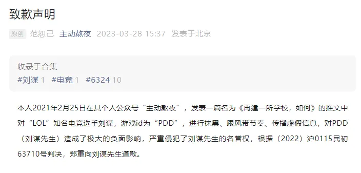 随着科技的发展和网络的遍及,如今许多新兴的产业也是发展得越来越好,电竞就是此中的一个,豪杰同盟作为电竞项目中的集大成者,人气不停都很高,尚有许多职业队伍会给各人带来出色的比赛,前几年的YM就是典范的例子,不外他们多次在晋级LPL的蹊径上失败,也出现了各种谎言,战队老板PDD各种表明也没用,只能用法律掩护自己,如今效果也证明了PDD的明净。 当时由于LSPL(现LDL)管理紊乱,有各种假赛的消息,于是有些大V就在没有任何证据的情况下说YM是假赛,照旧PDD指挥的,不光写了各种谎言文章,还做了一些谎言视频,让其他的一些人也对PDD有所猜疑,幸亏法律是还了PDD明净,还让这些大V举行了公开致歉。 从这些大V的致歉信可以看到,这些大V当时根本都是为了寻求流量(都知道PDD是电竞名士,有关他的文章视频肯定各人会感爱好),忽略了毕竟根据,想固然的杜撰了各种变乱,对PDD也造成了不小的负面影响,致歉也是天经地义的。 通过这件事各人也要知道,在网上各人也不可以肆无顾忌的乱说,任何事都是要讲证据的,假如没有证据乱说的话,可以会造成各种严峻的效果,网络也不是法外之地,谨言慎行是每个人在这个社会驻足的包管,渴望这些各大媒体宁静台都能从这件事罗致到一些辅导,随意造谣诽谤他人必将得到法律的处罚。 如今PDD照旧常常会给各人带来出色的直播内容,而他从前创建的YM旗下的许多成员也是为我们LPL赛区的几个S赛冠军做出了杰出的贡献,至少在电竞这个范畴,PDD照旧值得我们赞赏的,那么就让我们继续等候更出色比赛的到临吧。 |