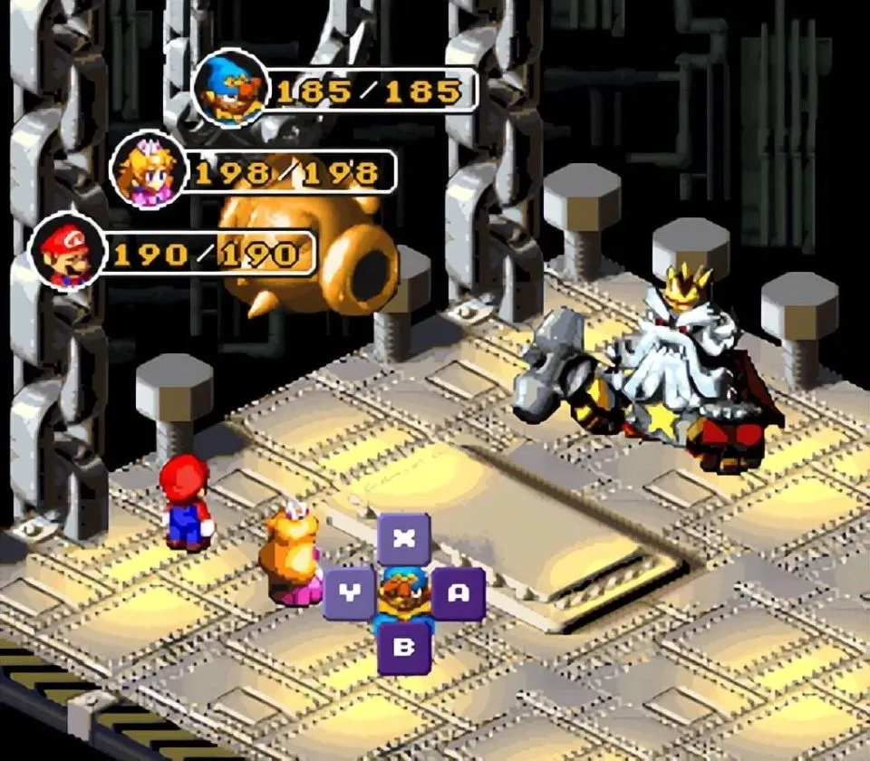 近来上映的《超等马力欧兄弟大影戏》,再一次唤起了浩繁游戏爱好者的经典追念,任天国旗下的超等马力欧可以说是整个游戏史上最着名的假造脚色,没有之一,从8位主机FC开始至今已有大量作品推出,除了传统动作过关外另有大乱斗、小游戏聚集、赛车、体育等极为丰富的玩法,更是衍生出了以马力欧为焦点的巨大人物关系。本期我们要回首的,是马力欧系列游戏中非常独特的一款,它的出现极大丰富了人物性格体现,让浩繁脚色第一次真正有了互动故事,同时玩法也有了革命性突破,让整个系列开始向全方位发展迈出了紧张一步,这就是16位主机SFC版《超等马力欧RPG》(Super Mario RPG)。 任天国早在FC期间,就非常器重马力欧这个IP的全面发展,除了几部动作游戏外,像我们非常熟悉的《高尔夫》、《弹珠台》等游戏中马力欧都有客串,到了SFC期间这个传统继承发扬光大,出现了《马力欧赛车》、《马力欧绘图》等全新题材作品。这些游戏品格体现良好,浩繁脚色特点光显,但遗憾的是受限于容量等缘故起因,故事配景根本属于可有可无,幸亏任天国的玩法充足出色,完全不须要明白剧情即可体验。 此时的SFC游戏阵容中,却有着对讲故事极为专业的厂商,那就是史克威尔,依附《终极理想》、《时空之轮》、《浪漫沙加》等良好作品,对于构造多脚色、多天下引人入胜的游戏剧情,简直是得心应手,加上当时尚未破裂近乎亲儿子的相助关系,双方一拍即合。史克威尔给任天国开发一款马力欧系列人物为主角的RPG游戏,本身也能拓展传统魔幻以外的天下观,这两家可以说是天作之合。 1996年3月9日,《超等马力欧RPG》正式在SFC主机发售,只管此时32位主机已经开始遍及,史克威尔以致和索尼秘密相助推出了《妖精兵士》,但在硬件性能被发掘到极限的16位平台,本作的画面体现可谓顶级,可以说是SFC末了的超等大作。 游戏的故事仍旧以酷霸王绑架碧姬公主为开端,马力欧独闯龙潭进入城堡击败酷霸王,就在即将公布胜利带着公主回家时,一把邪术剑从天而降穿过城堡,巨大的打击将马力欧送回了故乡,公主也不见踪影。当马力欧再次来到城堡时,发现这里已经成为险恶权势Smithy Gang的总部,通往城堡的桥梁已经被毁,马力欧只能另寻他路。在浩繁同伴的资助下,以致包罗老对手酷霸王,马力欧周游蘑菇王国网络星星,终极重修星路粉碎了险恶力气的诡计。 本作的玩法在当时来看黑白常先辈的,传统马力欧动作游戏中的跳跃操纵,融入到史克威尔经典的探索天下冒险框架中,游戏采取45度视角画面,在没有3D多边形技能的年代,使用颜色光显的场景特性,共同简朴直观的阴影效果,实现了带有开放天下特性的体验。玩家可以通过跳跃来到别的物体之上,场景中更是放置了大量宝箱,许多宝物都隐蔽在关卡之中,由于2D游戏不能自由旋转视角,偶然你以致不能直接看到物体,须要过细探索才气发掘,这种独特的爱好是同时期传统俯视角RPG远不能相比的。 经典JRPG中令新玩家颇感头疼的“踩地雷”随机战斗,这一次也得到改良,玩家可以在场景舆图中看到仇人,你可以选择自动迎战,也可以选择绕过他们,固然也有一些仇人守在必经之路,是必须履历的战斗。当你打仗到仇人之后,就会进入到单独的战斗画面,战斗方式仍旧是经典的回合指令式,有所差异的是本作到场了新颖的按键操纵,无论是平凡攻击还是特殊攻击,假如在精确的时间按键,就能造成更大的伤害,同样也实用于防御仇人的攻击,精确无误的按键可以镌汰伤害,偶然以致可以毫发无伤,这种互动性很强的筹划大大提升了玩家带入感,使得战斗充满了本领性,镌汰了传统回合制战斗的枯燥感。 《超等马力欧RPG》同样继承了史克威尔浩繁乐成的元素,探索天下、城镇、地牢迷宫仍旧是推动故事历程的紧张情势,与仇人和BOSS战斗获取履历值升级同样至关紧张,各种道具装备也是玩家体验的紧张构成。游戏中形形色色的NPC人物也带来了丰富的剧情,固然受限于4MB卡带容量不能实现过场动画,但笔墨窗口对话仍旧详确生动,非常故意思的是,主角马力欧在本作中却没有语言台词,许多时间玩家可以看到他的身段心情变革,有许多搞笑的殊效,以致会变成其他脚色,但就是不能直接表达意思,这种独特的“马力欧语”也成了玩家津津乐道的话题。 与史克威尔经典作品相比,本作并没有传统魔幻题材那种背负极重运气的天下观,简朴幽默是《超等马力欧RPG》最直观的主题,只管马力欧沉默沉静寡言,但他拥有各种风趣和富有体现力的动画,大部门幽默都以非常闹剧的方式举行,比方马力欧愤怒时搞笑的心情,脚色在提出惊讶观点时的跌倒,以及许多NPC不绝的鸠拙动作,这也承袭了任天国一向的面向整年岁用户的宗旨。 《超等马力欧RPG》另一个紧张特性,就是在故事冒险过程中,到场了大量须要及时操纵的迷你小游戏,此中有些游戏是主线流程中不能跳过的,玩家须要先完成一次,然后才气返回重新挑衅,而另一些则是完全可选的。丰富的迷你游戏加上浩繁支线使命,将夸奖玩家大量装备道具,资助你顺遂完成冒险。 当年我最喜欢的小游戏就是矿车冒险,马力欧乘坐矿车在轨道上行驶,不光有加快刹车根本操纵,另有跳跃和使用蘑菇加快,轨道有大量转弯,这里使用了SFC主机Mode-7图像模式,使用缩放和旋转背就连实现了伪3D画面效果。任天国曾经在SFC版《超等马力欧赛车》中运用