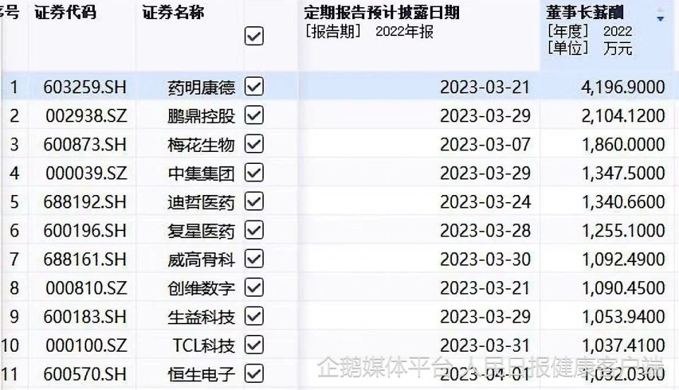 人民日报康健客户端记者 赵苑旨 克日,多家A股上市企业连续披露了2022年财务陈诉。从披露的数据看,在董事长薪酬排名前10的企业中,药明康德、迪哲医药、复星医药、威高骨科等4家药企名列此中。此中,药明康德董事长李革以年薪4197万元,暂居首位。 Wind数据体现,药明康德董事长李革以4196.9万元年薪暂居第一,较2021年增长1700万元。据药明康德的2022年报体现,李革出生于1967年,拥有北京大学化学学士学位,美国哥伦比亚大学有机化学博士学位。自2017年3月起担当药明康德董事长。药明康德主营小分子化学药的发现、研发及生产的一体化平台服务。年报体现,2022年度,药明康德实现业务收入393.55亿元,同比增长71.8%。 据迪哲医药的2022年年度陈诉体现,迪哲医药董事长、总司理、首席科学家张晓林从公司得到的税前报酬总额1340.66万元,较2021年增长168万元。据公开资料体现,张晓林出生于1964年,拥有哈佛大学医学院癌症中央分子遗传学博士后学位,是北京大学分子医学研究所客座教授。迪哲医药,主营化学药品制剂、化学药品格料药、生物药品的研发,技能开辟、技能服务。年报体现,2022年迪哲医药尚未红利,净利润为负7.36亿元。 据复星医药的2022年年度陈诉体现,复星医药实验董事、董事长吴以芳从公司得到的税前报酬总额1255.10万元,较2021年增长157万。公开资料体现,吴以芳生于1969年。复星医药重要业务包罗制药、医疗东西与医学诊断、医疗服务。据年报体现,2022年公司实现业务收入439.52亿元,同比增长12.66%;扣非后归母净利润为38.73亿元,同比增长18.17%。 据威高骨科的2022年年度陈诉体现,威高骨科董事长弓剑波从公司得到的税前报酬总额1092.49万元,较2021年镌汰100万元。据公开资料体现,弓剑波生于1967年,自2019年6月至今任职威高骨科董事长。威高骨科,主业务务为骨科医疗东西的研发、生产和贩卖。据年报体现,2022年公司实现业务收入18.48亿元,同比降落14.18%,归属于上市公司股东的净利润约5.44亿元,同比镌汰21.17%。 |