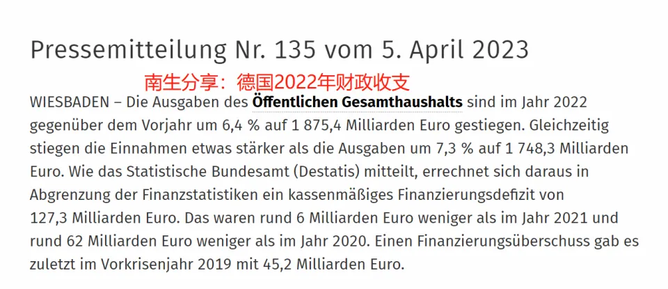 德国统计局发布的财务统计数据表现:包罗联邦、州、市在内的各级政府的财务收支在2022年取得了同比提升。此中,财务收入上涨至17483亿欧元,增长7.3%;财务付出为18754亿欧元,增长6.4%。 财务赤字在2022年高出了1270欧元,而且是一连第三年出现赤字——上一次出现财务盈余,照旧新冠疫情在环球大盛行之前那一年,即2019年。 这一方面表明白德国经济固然已从“疫情中规复过来了”,但德国政府财务“收与支,仍未实现完全复苏”;另一方面则表明,德国住民负担的官方财务压力加大,占GDP比重进一步提升。 德国财务占GDP比重,升至多少呢? 德国统计局公布的国民经济修正陈诉表现:2022年经济现实上涨1.8%,完成的名义GDP为38670.5亿欧元,按均匀汇率折算成美元为4.072万亿,还是仅次于美国、中国、日本的环球第四大经济体。 德国财务收入占GDP的比重在2022年约为45.2%,德国财务付出占GDP的比重更是到达了48.5%。 这种压力,现在紧张会合在德国联邦政府——就是我们通常所说的中心政府。由于只有他是赤字,而德国的“州、市、市政协会以及社会保障”等部门的财务在2022年仍保持在“盈余”状态。 我国财务收入占GDP比重为23.7% 2022年整年,我国一样寻常公共预算收入为203703亿元;包罗地皮出让金在内的“政府性基金预算收入”为77879亿元,天下国有资源谋划预算收入为5689亿元。 与德国相比,我国财务总收入的范畴更广,总金额在2022年上涨至287271亿元。同期,我国GDP到达了1210207亿元,财务收入在GDP的比重为23.7%——约莫是德国的一半左右吧。 固然了,德国住民财务负担更高时,他们得到的福利也是我国住民难以媲美的。南生给各人举个例子:在医疗、养老等社会保障范畴付出金额在2022年扩大至8044亿欧元,德国人均占据9570欧元。 美国财务收入占GDP比重,预计有多少呢? 美国商务部公布了“联邦政府2022财年的收支数据”——收入靠近4.9万亿美元,付出高出6.27万亿美元,年度赤字继续高出了1万亿美元。 美国各州及其他地方政府的财务收入仍未公布,只能从美国经济分析师那里得到参考数据了——预估各个州政府的财务收入在2万亿美元左右,其他各级地方政府收入预计为1.6万亿美元。 美国2022财年,财务总收入预计为8.5万亿美元,约莫是美国经济总规模的33.4%。恰长处在德国、中国之间的位置,美国住民得到的福利保障大要也处于相似的位置。本文由南生撰写,无授权请勿转载、抄袭! |