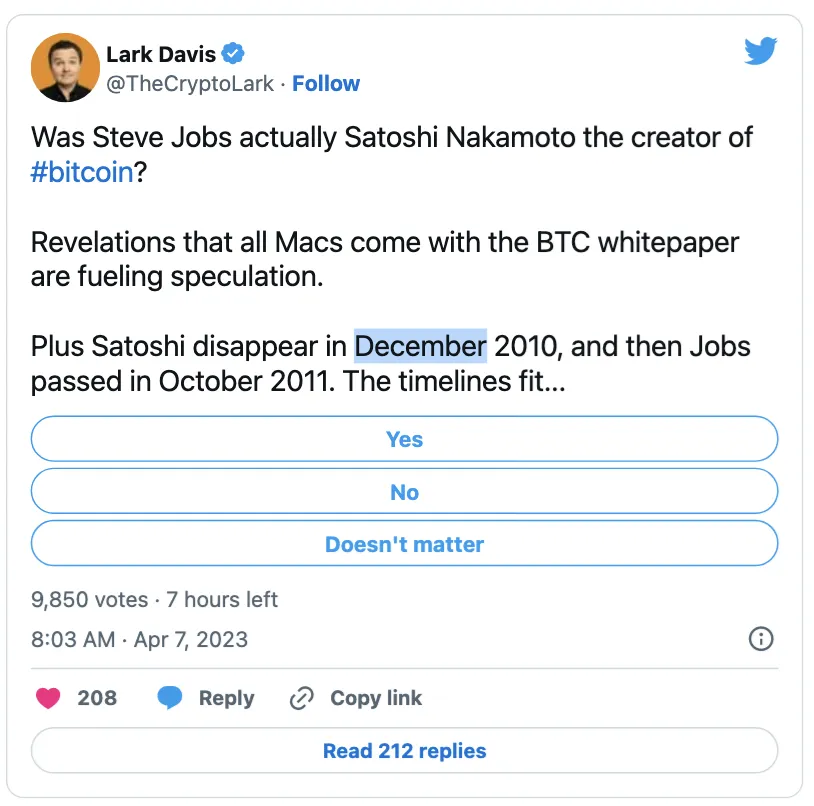 在硅谷,对于 Web3 最热情的科技大佬,排第一的是 Twitter 的首创人杰克·多西,后者不光曾经实验在 Twitter 内部打造一个去中央化小队,而且直接将本身的电子付出公司 Square 改名为 Block;另一个则是「邪恶中立」的伊隆·马斯克,几天前将 Twitter 的小蓝鸟 Logo 改成柴犬,让本身不绝玩的「狗狗币」代价暴涨。 假如说上面两位都是 Web3 明面上的玩家,另一巨头——苹果公司——很大概是整个科技圈潜伏最深的 Web3 大佬。 几天前,国外博主在办理打印机故障时,偶尔发现苹果的 MacOS 体系中,自 2018 年的 Mojave 更新以来,每一个版本中都潜伏了区块链范畴的「圣经」——中本聪于 2008 年发布的比特币「白皮书」。 这统统只是偶合,照旧某个员工本身的「致敬」活动,又大概,这是苹果在 Web3 范畴的「一盘大棋」? 01 Mac「藏币」事变是如许的,几天前,这个「彩蛋」被独立博主 Andy Baio 在试图办理打印机的故障时偶尔发现。 在和其他十几个 Mac 用户确认后,他在 4 月 5 日用他的 Waxy 博客报道了这件事,而这天碰巧也是中本聪(Satoshi Nakamoto)48 岁生日。 Baio 在博客上写道,「本日在试图修复我的打印机时,我发现苹果似乎在 2018 年 Mojave 以来的每一个 macOS 副本中,都潜伏了比特币原始的加密宣言。」别的,他还给苹果用户分享了如安在本身的电脑上找到这个文件。 着实,这个发现并不完满是新的;早在 2020 年,计划师 Joshua Dickens 就发现了苹果电脑里比特币的白皮书,还为此发了推文。 但是,这个发现其时在网上并没有得到多少关注,2021 年 4 月苹果社区才出现相干的问询帖。 而更令人震惊的是,这个「彩蛋」早在 2018 年就被放进了苹果电脑,从 Mojave(10.14.0)到如今的 Ventura(13.3),每个版本的 macOS 都有这个「彩蛋」,但 High Sierra(10.13)或更早的版本中没有。 而且,任何拥有运行 macOS Mojave 或更高版本的 Mac 的人,都可以通过在终端输入以下下令,亲眼看到这个 PDF: 假如你利用的是 macOS 10.14 或更高版本,比特币白皮书的 PDF 副本就会立即在预览中打开。 该文件也可以通过 Finder 找到:导航到 Macintosh HD ->System ->Library ->Image Capture ->Devices,然后打开 Contents ->Resources 文件夹。题为 "simpledoc.pdf "的白皮书应该在那边。 simpledoc.pdf "是一个包罗九页比特币白皮书全文的 PDF 文件。 它似乎是作为几个样本文件之一放在那边的,包罗另一个名为 "numbers.pdf "的 PDF 文件,这个文件内里只有四个数字,字体非常大,另有一个名为 "cover.jpg "的秘密图片,是一张 2,634×3,916 的 JPEG 照片,似乎是在旧金山湾的金银岛拍摄的标志。 在图像捕获工具(Image Capture)中,选择 一个名为 "假造扫描仪 II(Virtual Scanner II)的装备的样本文件,在 Details 中,将 Media 设为 "Document",Media DPI 设为 "72 DPI"。你应该看到比特币纸张的第一页的预览。 值得一提的是,假造扫描仪 II(Virtual Scanner II),这个装备在默认环境下是被潜伏的,也不会为全部人主动安装。如今还不清晰为什么它是潜伏的,大概它到底是用来做什么的,固然有大概是为苹果的「导入功能」提供动力的。 02「一盘大棋」?文件各处都是,苹果为什么会特意选择将比特币白皮书纳入 MacOS? 一个大概的表明是,负责提供一些样本文件的苹果工程师,选择了比特币白皮书和秘密的图片,只是为了好玩。正如它的文件名是「simpledoc.pdf」,它只有 184KB。大概这只是一个方便、轻量级的多页 PDF,用于测试目标,从来没有想过要让终端用户看到。 只管云云,「诡计论」照旧不胫而走。 是有一个秘密的比特币大佬在苹果公司工作?照旧苹果高层的有个关于比特币秘密指令? 而这些「诡计论」也绝不光仅是空穴来风,好比,就在公开发声后,Baio 收到了一位苹果员工的匿名举报,他透露内部有人险些在一年前就陈诉了这个标题。但是,听说这个标题被陈诉给了当初将比特币白皮书 PDF 放在那边的谁人工程师,而谁大家以后什么也没做,也没有发表意见。 而最耸人听闻的「诡计论」莫过于从未被确认的秘密的比特币发明者中本聪(Satoshi Nakamoto)大概是史蒂夫·乔布斯,这位已故的苹果公司团结首创人和科技远见者。 拥有 110 万粉丝的比特币投资者和博客作者拉克·戴维斯在 Twitter 上问道,「史蒂夫·乔布斯现实上是比特币的创造者中本聪(Satoshi Nakamoto)吗?中本聪(Satoshi Nakamoto)在 2010 年 12 月消散,然后乔布斯在 2011 年 10 月去世。时间线符合...」他以致还发起了投票。其他用户在 Twitter 上留言,有些人体现同意,有些人则保持猜疑。 固然多数人都在为白皮书出如今苹果电脑上的缘故原由而绞尽脑汁,但也另有人在为此感到生气,他就是盘算机科学家 Craig Wright,他曾多次声称,他是比特币的创造者,也就是传说中的中本聪(Satoshi Nakamoto)。 在 4 月 6 日的一条推文中,Wright 对一个问他是否以为苹果公司违背了版权的标题,回复说「是」。这个回复受到了加密钱币社区的冷嘲热讽,敦促他告状这家巨型科技公司。 03 苹果与 Web3「相爱相杀」固然苹果电脑中惊现比特币白皮书,但是,着实苹果从未公开支持过比特币或任何其他加密钱币,在区块链方面的活动也好坏常审慎, 但值得一提的是,苹果公司 CEO 库克曾在在 2021 年 11 月,作为比特币的支持者出席运动。当被问及他是否拥有比特币或以太坊(Ethereum)时,这家天下第二大公司的 CEO 回复了「是」。他还透露,他已经投资加密钱币有一段时间了,持有一个「多样化的投资组合」是公道的