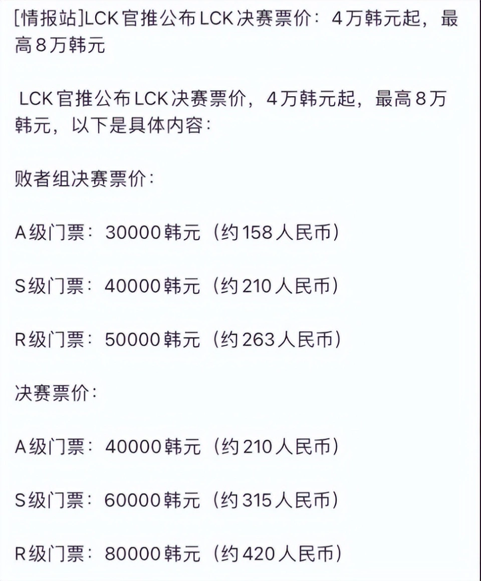 LPL春季赛季后赛的角逐正在风起云涌地举行中,之前不绝没有官宣的决赛举行地点和时间也终于在8号中午正式官宣,但是官宣出来的票价却引发了大量的质疑,由于这次真的卖得太贵了。 具体票价信息如下,最低的是五等票,代价是388元,可以看到位置在舞台的最外边那一圈,其次是四等票,介个是588元,比388元的位置稍微近一点点,也是在舞台的最外边,然后是三等票,代价788元,位置在内场,在选手对战席的背面,也就是说只能看到选手们的背影,之后是二等票。之后是二等票,代价988元,位置在对战席的反面,以及主视角的侧边。最贵的一等票代价1388元,位置在主视角的正中位置。 春决的时间是14号和15号两天,14号是赛前发布会,正式角逐在15号,15号的流程是LPL十周年岁念颁奖仪式,以及总决赛BO5,另有就是末了的MSI出征仪式。 对此不少网友都在吐槽决赛的票价,有人表现19年春决内场才380元,现在连最自制的都买不到了,也有不少人直言这是在抢钱,真的敢卖啊,388元的票价能看到什么呢? 对比LCK春季赛决赛的代价,我们的票价确实太离谱了。LCK春季赛决赛最贵的票价是80000韩元也就420元人民币,这个钱只能买LPL春季赛决赛最差的位置。而且当时T1打野Oner还在直播中吐槽LCK春决门票420元太贵了,不知道oner看到LPL春决这个代价后,会不会有不一样的想法。 一样平常演唱会的内场代价是1280元-1580元,而且演唱会内场也确实可以和明星艺人近间隔打仗,视觉和听觉效果都更好一些,互动也更多一些。而LPL这边毕竟是电竞角逐,选手不大概在台上演出节目,也不太大概照顾观众搞一些互动,这个票价确实不值。 而且比力遗憾的是,LPL几支高人气战队险些都被镌汰了,假如说WBG、TES、RNG还在四强,大概真的会有不少粉丝来买单,但是现在这四队中只有EDG人气比力高,其他战队感觉招呼力还是不敷,就看背面角逐现场的氛围到底怎样吧,也渴望官方为观众们多思量一下吧,真别吃相太丢脸了。 那么,对于这件事变,你们有什么想说的吗?欢迎在批评区留言探究。喜好这篇文章的话,关注贝塔吧! |