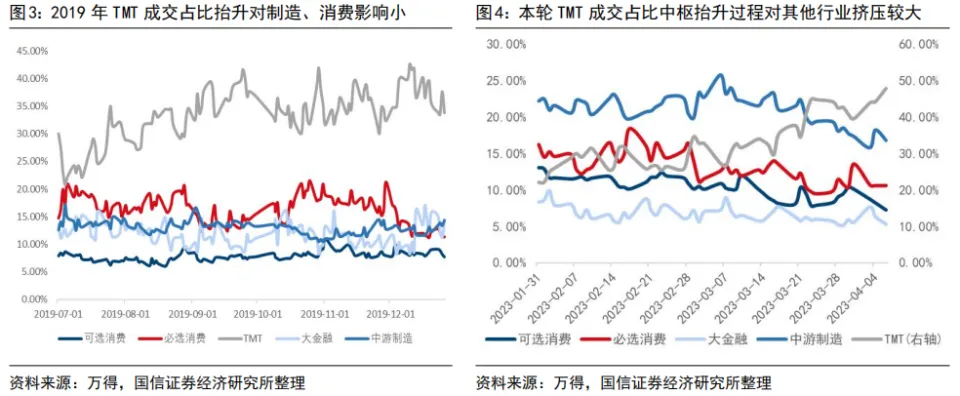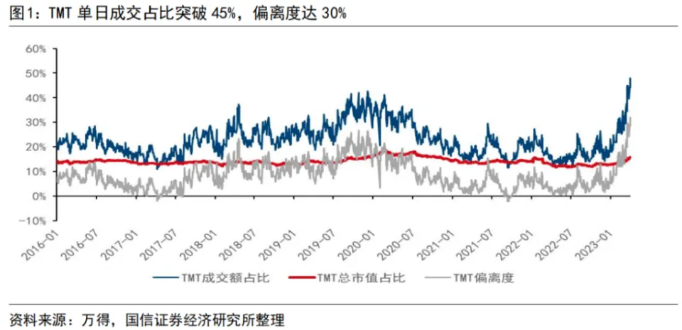 上周末,TMT板块买卖业务会合度过高题目,成为A股分析师最热的讨论。此前自3月22日起,TMT成交额占比一连三日突破40%。 中信计谋、天风计谋、招商计谋均发出告诫,由于TMT板块短期买卖业务拥挤度抬升过快、且4月财报季在即,纯粹超预期的主题行情大概暂告一段落,年报一季报的指引性将显着提拔。 也有机构持偏乐观观点。建投计谋以为,短期板块热度攀升,买卖业务会合度过高加剧后续颠簸,但从长期来看,后续产业趋势较为清朗,主题转主线概率高。兴证计谋和国金计谋也持此类观点。 本周,A股买卖业务极限会合的情况连续,TMT成交占比再创新高。4月6日,TMT成交量占比汗青性地到达48%,相较不到16%的市值占比,偏离度高出30%。 怎么看TMT热度再创新高?国信计谋王开团队在周六的陈诉中体现,本轮TMT强势,已经对其他风格的交投热情产生“无差异挤压”: 上一轮TMT成交量突破40%时,在前期成交热度抬升期间,可选消耗、中游制造买卖业务热度受影响较少,仅必选消耗、大金融受影响。 而本轮TMT成交占比中枢提拔15%+的过程中,必选消耗降落4-6%、可选消耗降落3%、大金融降落3-4%、中游制造业降落5-6%。 国信计谋以为,表里资分歧时候已至,市场团体交投热情、北上资金、杠杆资金或成后续 TMT 能否“无差异挤压”其他行业的三大关键变量: 上轮TMT成交额突破40%后,可以或许维持近半年买卖业务热度的紧张缘故因由是后续成交额的连续跟上。 而在本轮,全A成交额在上周前并未看到显着的抬升趋势,现在交投热情仅与2022年相对高位持平。TMT成交热度的一连后续须要雷同2019年末开始成交额的突破性抬升来支持。 另一方面,近几周杠杆资金和北上资金的流入肯定水平上放大了TMT行情,但上周两者出现分歧,杠杆资金大幅买入,北向资金则开始有了流出迹象。 若成交额进一步上行叠加表里资形成协力,TMT仍有望维持“无差异挤压”,反之,若北上资金大步快跑,杠杆资金拐点显现,TMT“无差异挤压”式行情或将有所和缓。 随着季报到临,国信计谋提示,若TMT“无差异挤压”行情暂缓,关注沿偏离度+景气主线发掘“伴飞随行”新时机。 陈诉写道: 若TMT热度不减,在北上资金和杠杆资金分歧不大,且成交额向上突破的底子上,关注存在业绩上修验证的半导体、电子化学品,内部轮动补涨空间较大的被动器件,复苏相位领先计划、封测等方向。 若 TMT“无差异挤压”行情暂缓,综合交投偏离度和业绩上调,或存下列“伴飞随行”品种: 1)可选消耗范畴关注美容照顾护士卑鄙、小家电;2)支持性行业关注电力;3)必选消耗关注休闲食品、调味发酵品、养殖、动保。 盘算机估值到达2015年来75%分位数行业估值方面,陈诉表现,近五个买卖业务日申万一级行业估值涨跌分化,电子、盘算机、通讯涨幅靠前。 此中,盘算机到达2015年来75%分位数。 |