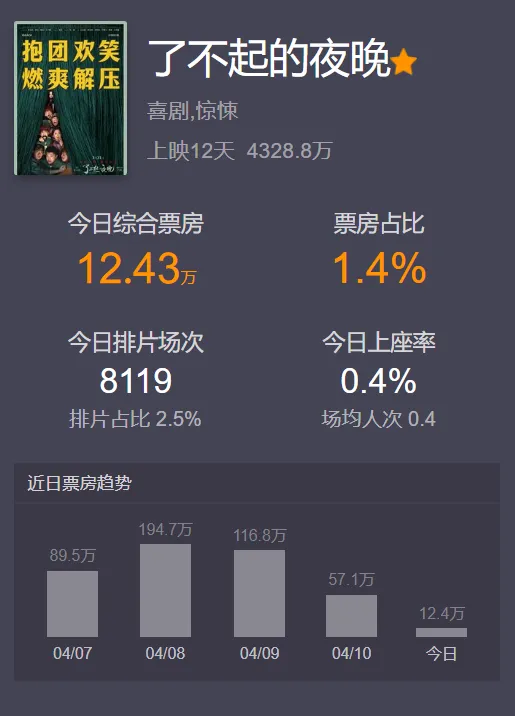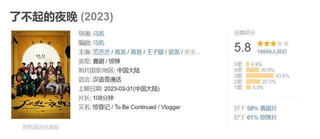 范丞丞《了不得的夜晚》 文:青源阳阳 谁都没有想到吧,谁人长相白白净净,帅气高大的范丞丞会变成云云的容貌。留着小胡子,穿着耷拉着的拖鞋,寸衫的扣子都挡不住肚子上的肉,跑起来的时间,肚脐眼都晃眼睛。 然而,就是如许的一个人物形象,让我们大跌眼镜的时间,既感觉到酸楚,又感觉到幽默,在《了不得的夜晚》之中,豹子和狗子,另有猴子,三个人由于生存的题目,突发奇想地到场一个正在拍摄的戏之中,然而发生了连续串的幽默的事变。 《了不得的夜晚》剧照 现在越来越多的年轻人,不但喜好看视频,而且还喜好拍视频,目的就是为了一个,赚米饭钱。 人活在这个天下上,人为财死鸟为食亡,不是没有原理的。由于公司倒闭,另有要付出补偿金的三人组合,本来想要拆伙的,机会偶合之下,三个人计划干完末了一票就分道扬镳,但是就是在如许的一幕之中,见证了三人的友爱。 当范丞丞到达剧组的时间,看到大街上由由然的一幕,吓得两腿直哆嗦,不由得赶紧跑。 当范丞丞如饥似渴地跑到一个小屋子里的时间,本来以为是找到了一个安全的地方,内里却摆满了棺材,碰巧不巧地是,大概是豹子关门的声音,让棺材内里的人苏醒了过来。 于是,接下来的一幕,让人提心吊胆起来,随着棺材板的响动,我们显着地可以或许感觉到豹子的心田的颠簸。 莫不是出了僵尸,亦或是其他的物件,不外还好,告急到放松只是一刻的变革。 《了不得的夜晚》剧照 原来,内里躺的都是群演,大概演戏时间太久,在内里都睡着了。这一幕多少有些让民气酸不已,为了生存,为了挣钱,这些人不会去在乎别人的看法,也不会在乎时间的尴尬。 从这些群演之中,我们好像看到了曾经的自己,为了工作,为了米饭钱,在工作岗位上,不得不忍声吞气,加班加点,目的就是为了让自己的生存变得富足起来。 马凯导演的这部影戏,让恐慌和幽默笑剧的效果联合起来,让梁龙演绎出导演的酸楚,让丽妃演绎出脚色的感情色彩。 《了不得的夜晚》剧照 每一幕的出现,都好像耐人寻味,而又靠近实际,这就是让人落泪的缘故。范丞丞为了演好油腻大叔,整整增重三十多斤,看着这些肉,明白了演员的积极没有白费。 另有王子璇,每次化装都要几个小时,但是出现在屏幕的画面却只有少数,但是,这并不是各人怠惰的来由。 演好每一个脚色,哪怕没有任何一句台词,哪怕只有为数不多的画面,然而,既然上了这个舞台,那么就要营造出好的效果。 猫眼评分 豆瓣评分 现在的《了不得的夜晚》猫眼评分,8.6分,豆瓣评分,5.8分。相对而言,猫眼评分更加符合大众的生理,毕竟,在这部影戏之中,我们劳绩的不但仅的欢笑,而且另有发展。 《了不得的夜晚》最新票房 上映仅仅12天,就劳绩了4328.8万票房,足以证实这齐备力气所归,这部影戏从一开始就吸引住了我们的眼光。 如许的夜晚里,有着浩繁了不得的演员聚集在一起,特别是男一范丞丞的改变,另有浩繁演员的付出和发展,让我们看到了笑剧未来的渴望。 #头条创作寻衅赛##了不得的夜晚# |