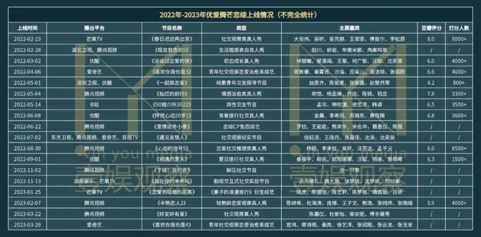 文/王心怡 《半熟情人2》直到告白夜都没有点燃热搜效应。 相较于上一季的“裸播到底”却话题度、播放量齐飞,这一季的《半熟情人2》直接被网友戏称为《心动的信号6》,部门网友只是在磕特定某对CP的糖,不敷“大胆”的成年男女在这一季的爱情关系上格外鉴戒翼翼。 从某种程度上来看,《半熟情人2》非常面子,好像也能真实反应30+熟龄人的爱情写照,那就是“相亲”为何物,由于这一场爱情迷局也完全没有了“迷”,三条一对一的双向线早早创建,更多是二人间的符合度的拉扯,而姗姗来迟的男4女5,固然实验破局,也被网友高喊高出“原配”,但高朋们仍旧“谨言慎行”,节目组继续佛系。 没有了大胆寻求、怦然心动和些许抓马戏份的《半熟情人2》,着实更像是大多数中年人的爱情选择——要讲面子。 而现在,“面子”二字正在彻底引爆恋综的“中年危急”。 要当网红,只能“面子” 毫无疑问,模式固化是发展五年的恋综不能逃走的话题。 大抵地比力上线的恋综,大概逃不外两种模式,一为素人+明星观察团,二为无观察室设置、纯高朋爱情交际模式。 在这两种模式下,高朋们大多都会被放在“同一屋檐下”,大概举行如观光等交际活动,以群体“观察”部门或个体。 这也就导致,大部门的恋综都容易陷入模式的类似,观察室明星高朋带头嗑糖、推测高朋感情走向、根据互动内容提出干系议题并给予观点或解答,高朋在同一屋檐下相互打仗、产生差异的感情走向,等等情节,在差异节目中都能看到。 《半熟情人2》观察团 模式大同小异,就必要节目在设置、元素和人选上下功夫。 也正由于云云,恋综也朝着更加细分的方向迈进,素未谋面、聚在一起的,友谊以上、情人未满的,分手事后、重新追爱的,母胎solo,30+熟龄的……恋综以群体分别,构建了一档档节目。 但是以上题材细分,只能在初期引起市场和观众的爱好,而终极节目模式又循环到上述所言的“明星观察室+素人团体生存”,因此,能让网友连续追下去,一定还是由于素人高朋间的“爱情戏码”,是否有个人魅力、有没有符合的组建CP感,以及处理处罚感情题目时的大胆、成熟、过细等特质的体现。 选人和人的体现成了恋综乐成最关键的地方。 但是,当恋综高朋连续在这一场场爱情“游戏”里格外看中“面子”二字时,恋综乐成的决定要素就大抵上走向了无趣。 这个发展趋势的引爆点在于《心动的信号4》。 《心动的信号4》马子佳与孔汝淳 “越吵越凶”是这一季的主题词,当马子佳开始在洪成成与孔汝淳之间摇晃不定时,这条感情线的变革以及节目里的一些细节出现,让分别磕“马卡巴卡”CP、“快乐星球”CP的粉丝产生了抵牾,以致出现了大量的人身攻击,而男女高朋的微博下面更是入场了不少负面言论,末了有关男高朋的不专情、女高朋的“操行不正”等争议,也进一步遏制了他们在交际媒体上吸粉程度。 在《半熟情人2》里,当之前固定的圆儿、天超开始去打仗别的男女高朋的时间,一些不太善意的网友品评也随之而来,他们在处理处罚关系上的不成熟伸张成热议点,以至于不少网友纷纷肯定他俩之间的不符合。 自从《心动的信号4》引发恋综饭圈效应之后,一对一锁死、兄弟和睦、互当助攻等“平静与爱”式表达,成为恋综的中央句,男女高朋对峙“初心”的选择更刚强了,即便部门高朋出现过摇晃,但也末了通过沟通式致歉再度回到“原配”,《心动的信号5》更是以节目中体现出的“成了四对”情势美满落幕。 而随后,线上牵手、线下分手正在成为恋综高朋们的惯例了局。 《半熟情人2》剧照 恋综的恋情“成交量”更高了,而这背后也是男女高朋高频率地描绘“笃志”二字,他们在躲避没人选以及心田夷由大概带来的网友评价。 本身就是网红、以及节目后酿成网红的比例占据着恋综高朋的大多数,前车可鉴之后,高朋们开始谨言慎行,直接奔着绑定CP吸粉而去。 毕竟没有几个男女高朋能成为像王能能罗拉、“年老大嫂”一样,一方面大胆跟着心走,一方面又能成熟地处理处罚好其他感情关系,就犹如《喜欢你我也是2》里的一位男高朋在经常和某位女高朋高频互动的时间,却突然体现喜欢另一位女高朋,让全网错愕不已,引发一阵言论不满,这么多“前车”的情况之下,打好安全牌成为了恋综高朋最多的选择。 明星动员与“鲶鱼效应” 恋综依然带有某种程度的“造梦”色彩,因此素人高朋的选择会更具特色,但犹如通过一场综艺来爱情而被放大和加速的感情一样,素人高朋也会被放在观众面前大概放大。 因此,高朋的“塌房”在已往几年也是不丢脸到的变乱,这也会低沉观众对于节目标信托度。 而高朋在节目中的一举一动所引发的讨论也是会合的,尤其是当节目显现了不俗的“造星”本事和观众对于此中一些高朋的品评之后,这也会影响到后续高朋对于“真实本身”的显现。 与素人高朋选择同样紧张的是观察团的选择。 常见的设置是继续主持人性子的控场高朋加上几位明星高朋,再加上一到两位拥有专业配景的高朋。一个题目就是,观察团人选的同质化。比如,沈奕斐是感情类综艺观察团人选的香饽饽,而如吴昕、乔欣、徐艺洋等也出现在两档以上节目标观察团中。 沈奕斐在多个感情类综艺担当观察员 而另一个题目便是,对于现在的恋综来说,明星动员话题的作用远远高出了素人高朋。 固