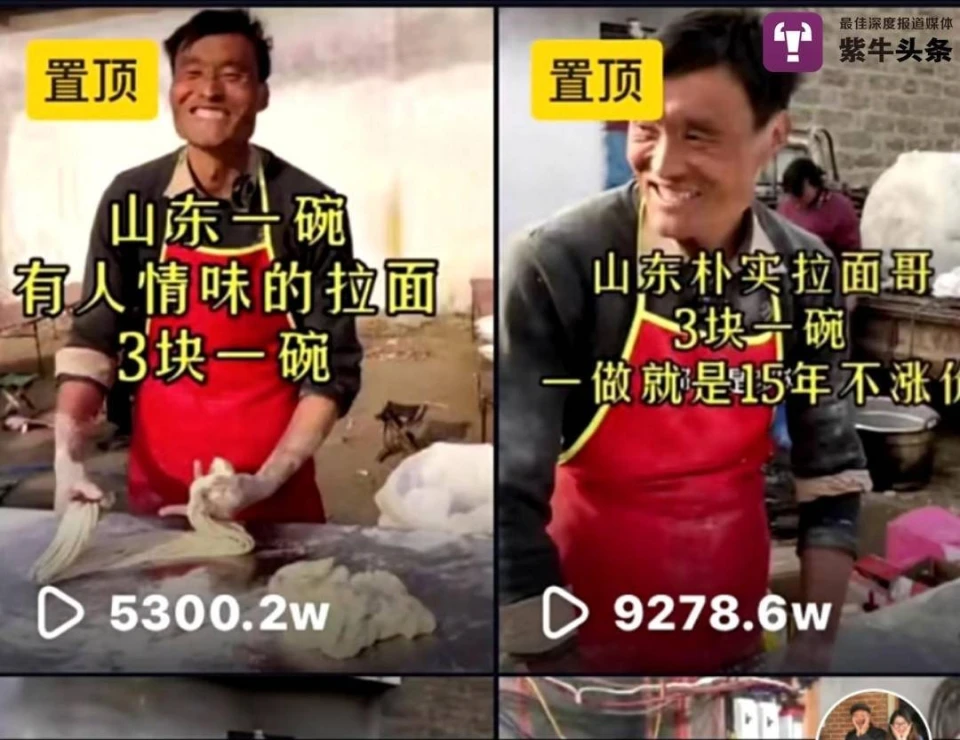 近来,直播界又多了位带货主播——拉面哥程运付。 别人直播吆喝卖货,他却边做拉面边谈天,言语恳切朴拙,直播间画风平平庸淡,可人数不绝维持在万人左右,颇受好评。 拉面3块钱一碗,连续15年都能做到不涨价,现在的拉面哥也直播带货了? 2005年,山东农村有许多地方还并不富裕,刚完婚不久的费县青年程运付为了改善家里生存条件,出去学了拉面的技术。 学成返来后,他就在故乡的集市摆起了小摊,一碗拉面三块钱,要知道这个价位在许多发达的地方连一碗面汤都买不到。 拉面哥硬是对峙十几年不涨价,由于他深深知道农村人的不易,三块钱一碗的拉面,撤除质料费,利润仅仅四五毛钱,但拉面哥却很满足。 他的筹谋理念就是薄利多销,让乡亲们都能吃起一碗拉面也成了他的寻求。 2021年是改变拉面哥运气的一年,一天,他照常在集市上卖拉面,一个外地小伙随手拍下他一段视频。 在视频中,拉面哥说出自己的拉面十几年不涨价只卖三块钱,他体现自己并不看重款子,而是看重人情。 他那黝黑的面庞、敦朴的笑脸以及与年岁不符的沧桑感,很快就让在疲于奔命的当代民气灵为之一振。 就是这种与当代物欲横流格格不入的反差感,让这段视频敏捷在网上走红,点击量高出了千万,粉丝数量一下高出六十多万。 网络期间,流量为王。 流量真是神奇的暗码,它可以瞬间让一个家喻户晓的明星坠入深渊,也可以分分钟让一个平凡人升上云端。 拉面哥程运付荣幸地被流量暗码砸中,以后他成了网红界的扛把子。 此时的拉面哥对于网络流量并不相识,他依然开心地卖他三块钱一碗的拉面。当有一天,他突然被成千上万前来蹭流量的主播以及粉丝困绕之后,他彻底惊呆了。 网络的气力是强盛的,平凡的山东农民程远付火了,这把火最初把他烧得措手不及。等他脑筋轻微清醒之后,他已经成为动员本地经济的传怪杰物。 此时,拉面哥的故乡杨树行村已经成了打卡旅游景点,原来沉寂的小山村沸腾无比,每天都有数以万计的人涌向这里,只为看一眼网红拍摄一些他的一样寻常蹭一波他的流量。 有人的地方就有江湖,人多了自然经济就会发展,由于拉面哥的走红,小山村里衍生出许多旅游一条龙服务项目。 只管许多人慕名而来想要尝一尝拉面哥做到拉面,但是无奈人数太多,完端赖拉面哥做拉面根本满足不了需求。 因此,小山村的农家乐也郁勃起来,有吃还得有住,简朴的民宿也就应运而生,这让生生世世靠种田为生的农民着实体验了一把做老板的爱好。 拉面哥最火的时期,本地一天要接纳十几万的游客,这么巨大的人群吃喝拉撒靠一个小山村根本办理不了。 因此,拉面哥还乐成地动员了地方经济,这无疑让本地的主管部门的领导狠狠惊喜了一把。他们很快理清思绪,敏捷出资为杨树行村修睦了蹊径,以吸引和方便更多游客的到来。 拉面哥走红后的盛况,不浮夸地说比当年走红后的大衣哥有过之而无不及。此时的拉面哥,已经没有办法在集市里继承卖拉面,他只得把拉面摊摆抵家中。 而拉面哥做拉面此时变得不是单纯的卖拉面,早已上升到演出的层面,在拉面哥的动员下,村里变成一个网红大舞台。 在这期间,许多令人啼笑皆非的故事上演,许多网红粉墨登场。 为蹭流量,有些网红简直失去底线,他们有演出卖身葬父的,有演出跳大神的,总之只有想不到没有做不到的。 拉面哥走红后,很快吸引了一些团队,由于拉面哥对一些网红利用并不相识,因此他被一个团队诱骗签了合约。 比及拉面哥知道变乱原形后,他不想被人利用,于是在故意人的资助下排除了这份条约。 很长时间,拉面哥都体现不会直播带货,他夸大说自己会不绝卖拉面,而且不会涨价,他渴望能利用自己的名气为故乡人民多做点贡献。 拉面哥着实照旧谁人淳朴的拉面哥,只不外在流量的情况下,偶然间人会身不由己。拉面哥体现,自从自己走红后,压力不绝很大,这完全超出了他的认知。 他原来的寻求很简朴,固然说一碗拉面只卖三块钱,但在他的辛劳积极下,一年的收入也能到达七八万元,这个收入在农村那是相称可观了。 拉面哥说渴望等儿女立室后买一辆车,然后拉着妻子周游天下。 然而,现在他这种简朴的空想被突破,实际完全到场了他的空想,他想守住初心太难。 某一天,网友惊奇地发现,拉面哥也开始带货了,他鸠拙的语言和敦朴的脸庞让他的带货过程看起来有些生硬,到底发生了什么让不想带货的拉面哥食言了呢? 随着网络越来越发达,人们的口胃越来越刁钻。作为偶然走红的拉面哥,已经逐步走出人们的视线,他的一举一动已经不能再引起人们的爱好。 拉面哥视频点击量淘汰,那些博主蹭不到流量赚不到钱,因此也就很少有人再去拍他了,小山村一下安静起来,一个“沸腾”的期间竣事。 大概,此时的拉面哥已经尝到了流量长处,纵然他想再归去卖拉面也是心有不甘吧?就在这时,发生了一件事也让拉面哥毅然走上直播带货之路。 家里年老突然去世,留下三个孩子失去依靠,重友谊的拉面哥决定抚养三个孩子。 突增三口人让家里的经济蓦地开始告急,怎么能快速挣到钱成了当务之急,于是拉面哥想到了直播带货。 说干就干,拉面哥让拉面嫂先去试水,买来电脑,以每月五千元的薪水雇来六个人组建团队,开始直播卖货。 首选产物照旧故乡的农产物,由于他渴望能帮到乡亲。 但是,由于履历不敷,折腾了一年,拉面嫂货没有卖出多少,还