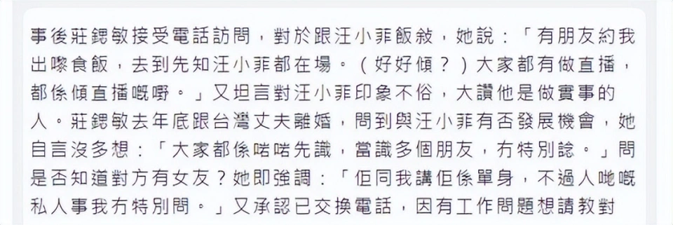 前两天还在台湾见前岳母和一对儿女的汪小菲,近来又被拍到出现在香港,参加一场朋侪集会。 酒局中,TVB女艺人庄锶敏被不测,发现,两人的关系也因此了推测,但女方很快便出头回应,称双方刚刚相识,只是互换了接洽方式。 而对于将来两人感情的走向,庄锶敏没有表达更多,但也没有拒绝的意思,显得非常大方,此举也赢得了不少网友的歌颂,乃至另有人直言:汪小菲的审美终于上来了! 究竟上,有着“都城四少”之一称谓的汪小菲,前任都还不错:除了刚刚分手网红张颖颖,张雨绮、大S都是顶流女星。 那么,“名不见经传”的庄锶敏到底有什么魔力,让广大网友一瞬间就“认可”了呢? 着实深扒之下,除了8亿身价之外,她的故事也挺出色的。 1.作风大胆、被疑做“三”庄锶敏于1980年出生于马来西亚,比汪小菲大1岁,其父庄宝是低调的富商,在女儿出生的第5年,携家属来港创建了公司,白手兴家。 庄妈妈也并非平凡人,她叫江玉珠,曾是丽的电视的艺员,娘舅则是香港闻名武术引导江道海。 庄家的眷属产业现在包罗珠宝、纸业、娱乐及房地产投资等,是身价凌驾8亿的豪富豪,厥后庄宝还被封为拿督,庄锶敏摇身一变也成了“拿督令媛”。 庄锶敏另有一个弟弟名叫庄顺胜,但此人向来低调,是继承家业的唯一人选。 除此之外,她另有一对双胞胎妹妹,都是艺人,但古迹显然没有姐姐做得出色,存在感不高。 庄锶敏读大学时便开始做兼职模特的工作,而且私生存也活色生香。 据她自己爆料,成年后便非常开放生动,乃至曾经瞒着家人拍摄过大尺度的写真照。 在感情方面庄锶敏也非常早熟,还曾开门见山地体现自己很喜好刺激的东西,乃至公开了自己19岁时便和男友体验过车zhen,但对于男方是谁始终闭口不谈。 颠末2年的专业模特练习,庄锶敏于2000年正式出道,走的也是性感门路,最初,她只是在各大阛阓做时装秀或司仪的工作。 至于含着金汤匙的庄锶敏为何会“屈身”来做模特,答案不言自明: 着实港圈不少富家女都为了体验生存出来演戏,好比“LED灯大王”黄裕发之女黄文意、某奶业品牌开办人之一的曾孙女邵佩诗、家里做石油买卖的赵希洛等等,都身价不菲。 但庄锶敏出道20多年,却并没有大红大紫过,她在2003年由于参演爱情影戏《恋上你的床》顺遂出道,随后便以每年一、两部作品的频率出现。 由于在第一部作品中的体现,也使得庄锶敏日后出演的根本都是雷同的性感、火爆的女性脚色,因此也被外界质疑是“花瓶”。 2006年,她在一次偶尔的机遇结识了男歌手吴浩康,男方厥后被媒体评为“世纪渣男”,情史一箩筐。 出道的20多年里,他先后和胡定欣、钟舒漫、李昭南、崔碧珈等女艺人都拍过拖,且每一段恋情都以无缝衔接的方式竣事。 庄锶敏和吴浩康在一起5年多,最初两人在一起时,听说男方尚未和女星胡定欣分手,因此她也曾被外界责怪是“小三上位”。 到了次年,听说庄锶敏还曾收到“威胁邮件”,对方非常不满两人之间的恋情,并扬言要去伤害她。 有一段时间,她也经常会收到骚扰电话,苦不堪言。 2008年,庄锶敏在网上爆料,称自己某次在电梯中遇到了男友的前任胡定欣,还遭到对方的唾骂,称:“你穿的是我的旧鞋!” 此事被曝出后曾引起轩然大波,几方粉丝隔空对骂,末了庄锶敏被胡定欣的粉丝在网上围攻,她只好删除了那条爆料的内容。 值得一提的是,2009年,庄锶敏还客串过大S和古天乐主演的影戏《大内密探灵灵狗》,两人有过短暂的交集。 但当时的大S已经依附“杉菜”一角成为一线女星,且在拍摄《大内密探灵灵狗》的前一年,刚刚依附影戏《保持通话》提名金像奖影后,古迹可谓方兴未艾。 片中,庄锶敏只是客串,出演的脚色连名字都没有,当时两人的咖位不可等量齐观。 也是这一年,和吴浩康在一起已经来往了3年多的庄锶敏,忽然公开体现,自己已经和男方没有将来了,来由是“性格不合”。 2.性感门路,一朝逆袭2010年,大S便由于参加安以轩在北京举行的生日宴,结识了汪小菲,两人一见钟情、附近之后便登记完婚了。 而另一边的庄锶敏,则在2011年和男友吴浩康彻底分手,开始了认真搞古迹的阶段。 期间,男方好像还曾经想过复合,却被庄锶敏果断地拒绝了。 这一年,她先后共有7部作品先后播出或上映,此中包罗和导演王晶互助的、其自导自演的笑剧影戏《猛男滚死队》。 但这部作品没有另一部话题影戏《喜好夜蒲》的反响剧烈,片中庄锶敏饰演了经常彻夜泡吧的Jacqueline。 这部风月片在当时掀起了一阵高潮,庄锶敏在片中的发挥固然不大,但仍因此被很多观众关注到。 随着在作品中突破的尺度越来越大,庄锶敏为了更好地解释脚色,不但去整容,还隆过胸。 但相比其他艺人“变脸”之后的遮掩藏掩,庄锶敏却从不遮盖,她乃至还在采访中大方地公开手术过程,非常潇洒随性,因此也得到了不少好感。 期间,庄锶敏又被港媒发现和富商李泽楷的表弟林忠豪疑似爱情,男方还被发现开着自己代价500万的豪车去接她放工。 林忠豪的前女友是TVB女星廖碧儿,女方的情史也非常丰富多彩。 但庄锶敏和林忠豪的“恋情”并未对峙多久,由于她始终对外宣传两人只是平凡朋侪。 2013年,她又拿出了6部作品,但根本上没有什么水花。 同年,庄锶敏和导演叶念琛传出绯闻,被曝出时有消息称,着实他们已经暗中在一起一年多了,男方也确实被拍到蹭到她的豪宅同居,俨然半个男主人,但