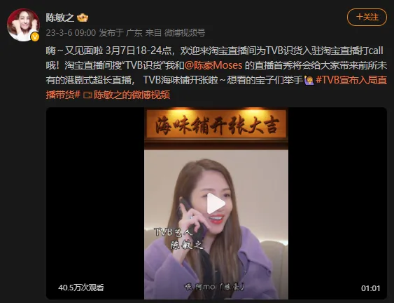 对于TVB而言,剧集和内容层面的代价仍然是立品之本... TVB公布进入直播带货范畴后,股价一度飙升,这个老牌电视帝国在直播带货范畴的积极和野心已经藏不住了—— 本日0:00,TVB刚刚竣事了长达12小时的马拉松式直播;前日,TVB还约请了当地和香港媒体齐聚广播电视城召开隆重的消息发布会,公布加码直播带货。 港剧式场景+巨大的艺人资源库,是TVB直播带货的独特上风,但另一方面,也有人质疑这是在斲丧情怀。 都说宇宙的止境是直播带货,本年TVB通过旗下上海翡翠东方流传有限公司入局,筹划于年内举行高出48场卖货直播。当TVB也进入这一赛道,是否也能借此东风再一次重现光辉冲上云霄呢? TVB做直播,上风在哪? 3月7日的首场TVB直播带货时长6小时,贩卖额超2350万,昨日,第二场直播加长到12小时,贩卖额则突破7320万,累计观看人次690万+。 为什么第二场直播隔断首播相隔了23天这么久?TVBC上海翡翠东方流传有限公司总裁彭明哗表现,这是由于两场直播之间做了两个升级,其一就是盼望把原来传统直播提升成艺人+内容,赋予直播更多的意义,其二是要提供更多举世跨境货品,以是必要更多时间去预备。 昨天12小时的马拉松式直播,在内容上的改变和升级是显而易见的,首场直播是寻常配景板,只在特邀高朋陈豪出现时把配景更换成海味铺,和陈豪主演的经典剧集《溏心风暴》产生小小联动,而这次整个直播间都用TVB2003年台庆剧《冲上云霄》这个经典IP举行包装—— 配景音乐是主题曲《光阴如歌》,主播陈自瑶和特邀高朋马国明则分别以空姐、机长的制服造型亮相;直播间打造成飞机舱的场景,给网友打造空姐贩卖机上商品的陶醉式体验;马国明作为特邀高朋只现身直播1小时,在他脱离直播间时,陈自瑶的话术是“为了包管我们的安全,机长暂时要归去开飞机了”,将陶醉感举行到底。 娱理工作室观看了两场TVB直播带货后,第一感受是陈敏之和陈自瑶两位主播简直非常专业,不但一连6个小时直播毫无倦容,而且也很有贩卖本事。举个例子,昨晚在倾销埋堆堆106元的会员年卡时,马国明的说法是一个月才8块钱很自制,陈自瑶立即在旁边改正表现,不要说一个月,是一天只要两毛钱! 已往的两年间,TVB已经开始为进军直播带货铺路,举行了两季艺人直播带货PK综艺《识货》, 这档节目做得很有香港特色,卖货时磨练的是艺人的谈锋和急才,好比有一期是给出一顶绿色的帽子,看看艺人用什么方式倾销,颇有点香港小姐问答环节的意思。 现在两场TVB直播中担当主播的是《识货》前两季的冠军陈自瑶和陈敏之,可看出TVB是颠末层层选拔后,拿出了最强大的艺人主播资源。两人不但在带货方面有专业度,本身也都是演过多年港剧的金牌女副角,在当地市场也具备肯定着名度。 TVB做直播,最大的上风就是其巨大的艺人资源库。现在48场直播筹划,有大概每期约请一位视帝视后作为特邀高朋,陈敏之就表现她很盼望之后能做《使徒行者》主题的直播间,约请佘诗曼来到场。 现在两场直播,都要求陈敏之和陈自瑶一人撑场6个小时,这意味着6个小时里不能上厕所,对于体力提出了很高的要求。一直刻苦刻苦的TVB艺人在体力方面是有上风的,陈敏之透露她曾经试过一连拍戏3天没有睡觉和沐浴,从场景到外景无缝衔接,还要忍受或酷热或严寒的气温,以是“当主播已经很惬意了”。 对于TVB合约艺人而言,当演员拍戏着实也是一种上班和打工,由于本身片酬不高,收入远远比不上当地的明星,以是TVB艺人给大众的印象更接地气。粤语里有个词叫“悭妹”,用来形容那些会省钱勤俭持家的女孩,这些年来港媒也常常用这个词来形容一些TVB女艺人乃至当家花旦。在如许的语境中,看TVB艺人分享那些生存中的平价好货、分享在直播中抢优惠券省钱的履历,是很有说服力的,这也是TVB艺人区别与当地大牌艺人的独家上风。 除了巨大的艺人资源库,TVB的另一张王牌是建台56年来积累的经典剧集IP。 第二场直播选用的《冲上云霄》就是一波“追念杀”,陈奕迅演唱的主题曲《光阴如歌》的前奏一响,就唤回了无数人20年前的影象,这部剧是胡杏儿、黄宗泽、吴卓羲、马国明等一批小生花旦古迹腾飞的作品,也是TVB上风题材行业剧中的佼佼者。 在TVB的剧集储备中,能在服装、场景上有所特殊表现,又在观众中有肯定影响力的IP尚有很多,这些都是TVB未来直播中待发掘的宝藏。 TVB直播是在斲丧情怀吗? 只管直播战绩不错,但TVB入局直播带货,照旧引发了一些争议。 一种争议是全部入局直播带货的明星和公司都会遭遇的:主业应该是演戏,直播带货是不是好逸恶劳?另一种争议则是对于TVB的:直播带货是不是在斲丧情怀? 对于第一个争议,陈自瑶在前天的发布会之后表现,“现在的艺人和从前不一样,从前大概比力片面一点,现在期间在发展进步,除有机遇做主播的脚色,平常拍戏之外也必要做KOL的脚色,就像网红一样,我们也要去照相、拍短片,在我们的外交平台也不绝在做,现在艺人也是很多元化的,以是不必要太区分重点放在那边,由于我们也不大概365天都在拍戏,拍戏就用心拍戏,不拍戏的时间就用心带货、多方面发展,不要限定本身的范畴,我就是多元化的艺人。” 在当地的直播带货界,很多艺人选择入局是由于收入高,能得到比拍戏更好的报酬。那么TVB艺人直播带货是否有提成?娱理工作室向陈敏之提出这一题目,但她并没有正面答复,而