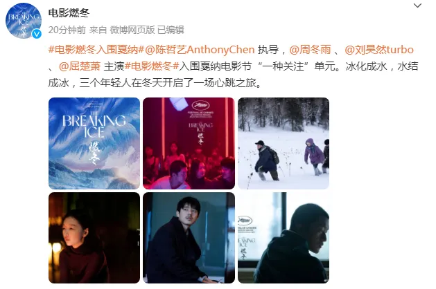 今(13)日,第76届戛纳影戏节公布,由陈哲艺执导,周冬雨、刘昊然、屈楚萧主演的影戏《燃冬》入围本届戛纳“一种关注”单元。 该片陈诉了三个年轻人在东北边城冬天里的一段故事。2022年冬天,女孩娜娜与两个朋侪结伴而行,从都会游览到冰天雪地里北方的丛林,度过了一个自由而怅然的周末...... 据悉,“一种关注”单元1978年在戛纳影戏节正式启动,重要关注国际新影人作品。本单元素以影片独特的审美和新奇奇异的小众风格闻名。 对于,影戏《燃冬》入围戛纳影戏节,网友批评:“恭喜全部主创,入围即肯定”“等候周冬雨、刘昊然一起走红毯”。 编辑 苏静 图据 影戏燃冬官微 |