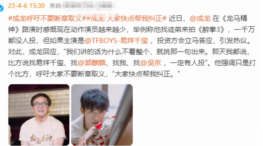 69岁的成龙,说错话了! 克日,成龙被曝在宣传影戏《龙腾虎跃》的时间,在台上说“很高兴和这么烂的演员互助”,引起了很大的争议。 据悉,成龙在《龙腾虎跃》里互助的年轻演员是刘浩存和郭麒麟,而刘浩存刚幸亏95花中也充满争议。 固然成龙过后表明,自己只是一时口误,由于他的国语说得欠好,请各人包涵他。 但网友照旧以为疑惑,成龙作为混迹娱乐圈多年的戏骨,怎么会出现如许的口误。 但实在成龙本年的“口误”标准还真是一个比一个大,在《龙腾虎跃》刚刚路演时,成龙就说过一段话,他感慨现在动作演员的处境很难,找投资方给一个动作演员投资1000万,没人投,但如果找易烊千玺,投资4亿都有人投,由于他有流量。 这段话引起了许多争议,有网友并差异意成龙的说法,反而以为成龙有点“小家子气”了,而且外貌看不起“流量明星”的成龙,实在他的影戏里也不乏杨洋,张艺兴等流量明星的身影。 过后成龙只能出头澄清,说自己的话被断章取义了,他要说的是,如果找易烊千玺,找他,大概找吴京,就会有人投。 成龙“得罪人”的标准可以说越来越大,固然,作为圈中先辈,也是气力派功夫巨星,成龙自有点评子弟的资格,他从前也吐槽过圈内小鲜肉拍戏,拈轻怕重娇生惯养,刮破手大惊小怪,但他不会把名字说出来。 实在这“得罪人”的背后,也是他和功夫影戏的无奈。 成龙的新影戏《龙腾虎跃》上映一周才委曲破亿,预估票房仅仅2.2亿,但这部影戏的投资高达3亿,可以说票房和口碑都扑了。 成龙对这部影戏的宣传非常认真,不管是这两次的“说错话”照旧从前他自曝自己已经没有办法打封闭针了,大概都只是为了给影戏增长热度,只痛惜照旧没有办法拯救这部影戏的票房。 成龙在宣传影戏期间说的一些话,也能逼真看出他对功夫影戏以及自己的焦急和无奈。 他说,市场已经不必要功夫演员了,你功夫多好戏多好都没有用,没有人会投资他们,长得悦目才有用。 他感慨,自己也想作育出第二个成龙,但很难,他找不到交班人,最可骇的不是成龙老了,而是成龙之后再无成龙。 有人大概会以为,成龙该“退下来”了,但毕竟上,成龙还不甘心。 前不久才拿了奥斯卡终身结果奖的成龙,并没有准备退休。 上个月,他精神奕奕出现在英皇影戏巡礼上,大合照时站在第一排,而站在第一排的除了英皇的老板高层和投资方,只有成龙和古天乐两位是明星,古天乐自己照旧老板,成龙的职位可见一斑。 成龙在将来几年内尚有近10部影戏待映,有些是拍完了准备上映的,有些是还没开拍的,互助演员从国外演员,港星到本地,可以看得出成龙在资源在影戏圈依然是顶级的。 但这次《龙腾虎跃》的结果,却让成龙“慌了”,也仿佛让他看到了现在功夫影戏市场真正的绝望。 实在《龙腾虎跃》的绝望,何尝不是让人看到了功夫影戏的绝望。 追念起功夫影戏的壮盛时期,由李小龙开创了功夫影戏的先河,李连杰,成龙,洪金宝,甄子丹,赵文卓,吴京,张晋等形成了百花争艳的盛况,那种拳拳到肉的打斗局面,至今仍然是经典。 要成为一名出色的功夫动作演员并不简朴,他们险些都是有着几年到十几年的练习,在枯燥的动作练习后,才气完成在台上那出色的几秒演出。 成龙更是动作影戏中最“玩命”的演员,在这么多年的演艺生活中,成龙对峙“不伤害的戏不拍”,险些从不消替人,以致偶然候不做防护步调,血洒片场酿成了一样平常,他满身上下都留下了拍戏遗留下来的病痛。 成龙在影戏里那些为人赞叹的演出,说是“拿命换”的也不为过。 反观现在不少国产剧里软趴趴的打戏,确实令人感慨真正的“功夫”在影视作品中真的正在消散。 曾经那批创造了功夫影戏光辉的演员们,也正在一个接一个脱离了。59岁的李连杰自2020年的《花木兰》后就没有新的作品,现在在国外和妻子女儿们过着清闲的“退休生存”。 71岁的洪金宝前不久在亚洲影戏节上拿了终身结果奖,他感慨自己这几年逛逛超市场,感觉自己离影戏圈已经越来越远了。毕竟上,必要坐轮椅的他也确实“打不动”了。 59岁的甄子丹开始转战好莱坞,他的状态照旧很好的。2021年在《肝火重案》中的打戏依然过瘾。 49岁的吴京是现在最风光的百亿导演和演员,找到了“主旋律”这条大路,但他也说过,票房好不代表程度高。 赵文卓和张晋陷入了尴尬的处境,只能扎着在一些小制作的影戏以致是网络大影戏里。 金像奖最佳男副角的光环在这个期间并不能为张晋找到一条更好的“功夫影戏”出路。 云云来看,成龙算是至今资源最好,也是还在对峙从前那一套“功夫影戏”的演员,只是在现在的市场里,不知道成龙还能对峙多久呢? |