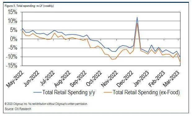 美国零售贩卖出现超预期放缓,表明斲丧正在敏捷萎缩。 4月14日,美国生齿普查局公布的数据体现,美国3月零售贩卖环比降落1%,超出市场预期的-0.4%,前值由-0.4%上修为-0.2%。 扣除汽车和汽油后,美国3月零售贩卖环比淘汰0.3%,高于预期-0.5% 3月零售贩卖额(不含汽车)环比降落0.8%,低于分析师预计-0.3%。 总体而言,零售额同比仅增长 2.9%:这是自 2020 年 6 月以来零售额的最低年增长率。 详细而言,13个品类中,仅有5个品类出现了上升,此中非市肆零售贩卖环比增长1.9%,同比增长12.3%,涨幅最大;加油站零售贩卖环比淘汰5.5%,同比淘汰14.2%,跌幅最大。 汽车市肆、家具、服装、食品饮料、一样平常商品,特别是电子产物和电器市肆的贩卖额大幅降落,环比淘汰2.1%;食品服务及酒类场合斲丧环比增长0.1%,同比增长13%。 美国零售数据公布后,美元指数累计上涨约40点。 芝商所数据体现,市场如今对于美联储在五月聚会会议上加息25基点的推测概率为81.6%. 零售萎缩预期兑现本次3月零售数据超预期放缓,“坐实”了分析师早些时间对于零售萎缩的预期。 美银在其最新斲丧者陈诉中指出,美国“超常”的工资增长正在减弱,这使得斲丧者大概无法在通胀上升的情况下保持以往的付出,斲丧将出现萎缩。 美银汇总的斲丧者存款数据体现,2023年3月,税后工资的三个月移动均匀增速放缓至仅有2%,这是自2020年6月以来的最低水平,客岁4月的峰值到达了8%。 花旗银行分析师Paul Lejuez在最新的“花旗名誉卡洞察”陈诉中指出,其跟踪的16个子行业的名誉卡数据体现,3月第3周的零售付出(制止23年3月18日)降落10.3%,比前一周6.8%的降幅大幅增长。除食品外的付出降落幅度更大,高达13.0%,相比之下,前一周的降幅为8%。 这是金融业瓦解后的第一周名誉卡数据,据花旗称,当周零售付出降幅是2020年4月以来的最高纪录。 美银经济学家Aditya Bhave最新陈诉中写道,每个家庭的名誉卡和借记卡合计付出在3月份同比增长了0.1%,但是在颠末季候性调解的底子上,3月份急剧降落了1.5%。 美银继承告诫,坏消息是,真正的坏消息即将到来,也就是说:“经济1月份高速增长之后的一连放缓,对Q2的增长造成磷坪面影响”,并接着告诫说: 假如我们的零售贩卖推测是精确的,3月份除汽车以外的零售贩卖水平将比Q1的均匀月水平低0.7%。我们以为,这导致Q2(经济)出现紧缩的巨大风险,只管3月下旬许多范畴的付出有所回升。 而实际上,彻夜披露的除汽车外零售贩卖环比淘汰0.8%,比美银的“悲观预期”还低了0.1%。 这意味着,美联储货币政策的“滞后”,加上银行危急对付出的打击,正开始显现出来。 |
