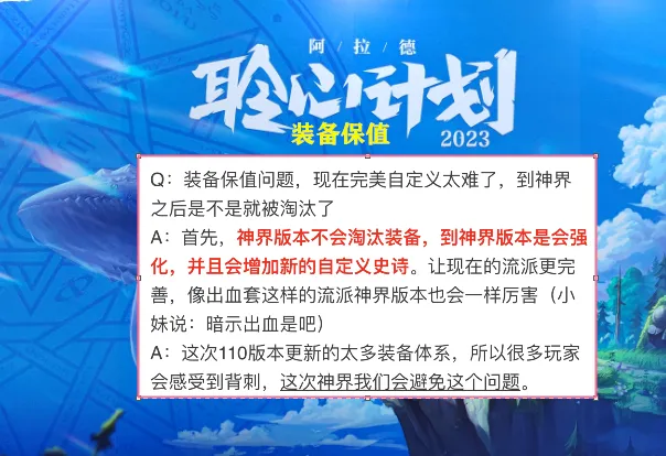 15号策划举行了线下晤面会,开发商项目组策划“洪镇赫”,更是切身加入。而国服一群“老哥们”奔赴现场,只为灵魂拷问策划,同时“洪镇赫”主策,带来了诸多爆料,神界3大内容提前透露。 神界版本装备保值早在之前,策划就提及过,下半年推入迷界版本,新的品级扩展登场。但对于玩家,比力担心装备镌汰标题,固定范例史诗,镌汰无所谓,然而自界说系列,尤其是完满4词条,获取条件过于苛刻,到神界版本镌汰,岂不是中途而废? 15号策划晤面会,明白的提及了,神界版本不会镌汰装备,将会保值下来。从进入110级版本以来,更新了太多装备体系,玩家能感受到背刺,到下个版本神界,策划会克制这个标题。 同时策划透露,现阶段的装备,到了神界版本,还会得到强化,但具体怎么强化,策划并没有说。 神界会出新的自界说史诗众所周知,现在110级版本,一共有4种范例自界说,分别是蓝灵、恩特、深潜和魔女,包罗了诸多范例的词条。在策划晤面会上,“洪镇赫”表现,在神界版本,会增长新的自界说史诗装备,有更强的词条,来顺应神界地域的怪物。 但对于新的自界说史诗装备,“洪镇赫”没过多提及,只是一笔带过。着实我们可以推测一下,神界版本更新后,将会产出全新的“种族”怪物,而新增长的自界说史诗,在词条方面上,会参加这些种族怪物技攻,能更好的来提供伤害。 神界版本增强流派和职业联动现在流派有很多,到了神界版本,“洪镇赫”主策,特意的提及,反面的流派,都可以跟职业匹配,好比大红神,更加的得当出血套等等。什么意思呢?在神界版本,将增强流派和职业的联动。 同时神界版本,以强化流派和职业方面为主,玩法会多种多样!且神界版本更新后,现有的诸多流派,都会进一步增强,而且还会有很多故意思的流派出现。 一个新版本的出现,旧装备的强度,总会有些力有未逮。策划为包管“旧装备”,还能继续打神界,流派方面的增强,着实理所固然。 别的策划偏重夸大了,神界版本更新后,装备增幅打造,依然可以继续下去,并不会被镌汰。现实上,这一点我们心田也清楚,毕竟辛辛劳苦投入的打造,要是镌汰了,谁可以或许对峙下去?怕是旭旭宝宝,第一个不允许,满身增幅17-18,花了将近1个亿左右,被镌汰竹篮打水一场空。 个人总结对于神界版本的内容,这次策划晤面会,仅仅浅尝辄止的提及了些,没有举行深入探究。但可以确定,神界版本高增幅玩家将会继续保值,现有105级史诗装备不会镌汰,而且会有新的自界说史诗装备出现!固然,这些都是画大饼,国服要更新神界版本,得下一年才行,23年根本没戏了。 |