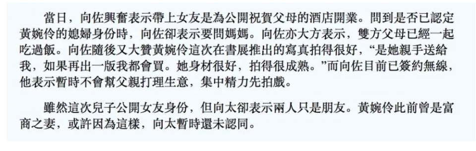 你云云特殊,我又怎会扫兴 天天上午9:30,伊姐在这等你 文 |伊姐(周桂伊) 澄澄 近来因和团队产生分歧的向太陈岚,在直播停更几天后又开始复播了,直播内容是反诈题材,还真是与时俱进,踩着社会热门来啊。 这边陈岚还在琢磨怎样搞热本身的直播间,那里向佐的前女友黄婉佩,带着本身的新加坡房地产科技公司Ohmyhome,乐成赴美敲钟上市了。 据悉,Ohmyhome还发行了股票,以每股4 美元的代价,发行了325万股平凡股。 网友们也是看热闹不嫌事大,在微博上@向太陈岚,问她是否痛恨当年拆散黄婉佩和儿子向佐。 讲真,这个黄婉佩确实是个奇女子,她歌手出道,两嫁富豪,和向佐爱情多年,即便分手了向佐仍对其念兹在兹。 隐退歌坛后,她和自家姐妹又创建公司,乐成从女艺人转型为女贩子。 作为连向太都怵头的女人,黄婉佩的人生故事确实堪称传奇与励志。 1982年,黄婉佩出生在马来西亚,之后移居新加坡。 1998年,还在读书的黄婉佩和同胞姐姐黄婉君在香港旅游时,发现了一张歌唱角逐的海报,能歌善舞的两姐妹随即报名到场角逐并挺进了决赛,终极两个人放弃继续读书的机遇,以女子组合“2R”身份出道。 当年2R是和Twins差不多同一时期出道,她们的热度虽不及Twins,但愣是在港娱黄金末期杀出一条血路,人气热度风靡一时。 黄婉佩刚出道就有机遇和周星驰拍摄啤酒广告,没多久就主演了影戏《殒命写真》,并提名金像奖“最佳新演员”,俩人又是发专辑,又是出演了不少影视剧,最火的时间,华娱卫视还专门为她们开了一档综艺,名为《2R部落格》。 奇迹上顺风顺水的黄婉佩,当时就被媒体爆料,她能在娱乐圈吃得开是有富豪老公陈靖谐的加持。 陈靖谐是印尼华侨,比黄婉佩大21岁(也有传大15岁,详细年岁没有对外公布),他白手发迹,曾和新加坡第一玉人范文芳相恋11年,以本身劈叉告终,在2002年时身家就到达十亿。 2005年,黄婉佩被拍到和陈靖谐一起回家,但她坚称二人只是相识多年的挚友。 但《东周刊》在2006年,照旧曝光了黄婉佩于2004年就嫁给了陈靖谐的究竟。 陈靖谐做生意多年,人脉资源广,虽说能打仗到不少玉人,对黄婉佩真是痛爱至极,他不光买豪车豪宅(中环光辉豪园的房产,位于香港西半山)赠予黄婉佩,还砸钱力捧她。 且陈靖谐自从和黄婉佩在一起后,生意业务是越做越大,陈靖谐一度以为黄婉佩旺夫,对她险些到了百依百顺的地步,甘愿共同妻子遮盖完婚的究竟。 2007年,2R的举世唱片合约期满,组合驱逐,当时有传出陈靖谐要为她创建love music唱片公司,只专宠捧她一人。 但这些年我们也见了太多权门婚姻塌房,成年男女关系杂乱,末了我们只能信任究竟。 究竟就是,一年之后,媒体拍到她与外国男孩牵手搭汽船。 之后她又被拍到和钟嘉欣的前男友伍允龙一起逛街。 两个人婚姻关系不名不副实到肯定程度,不大概云云明火执仗。 黄婉佩在这段权门婚姻里学会了什么,外人不得而知,但表现出来的,就是破罐破摔的放纵。 屋漏偏逢连夜雨,黄婉佩在组合驱逐后奇迹走向下坡路,08年陈冠希的照片变乱发作,04年曾和陈冠希传出绯闻的姐姐黄婉君也被波及。 只管黄婉君反复否认,但也无法挽回已担当影响的形象,终极她徐徐淡出娱乐圈,妹妹黄婉佩的奇迹更是无法突破瓶颈。 不外黄家的女孩们都不是平常女子,姐姐黄婉君退圈后反而趁黑红时搞起了奇迹,开发贸易版图。 时间来到2009年,这一年对黄氏姐妹来说注定非凡。 2009年6月,黄婉君和三妹黄婉秋等合资开设了亵服裤专卖店,开业当天她们还约请了吴建豪站台打call。 同年我们的主角黄婉佩修读日文时,熟悉了向佐,彼时照旧已婚身份的黄婉佩,和向佐开始了长达几年的意难忘之恋。 如果说之前的绯闻都是露珠情缘,那黄婉佩和向佐的这段甜蜜过往,对于俩人来说,都在生掷中留下了浓墨重彩的一笔。 这二位爱情没多久,就被媒体拍得手拉手逛街。 同年8月,向华强的澳门兰桂坊旅馆开业,黄婉佩挽着向佐的手,在未和向太提前报备的情况下,出如今记者云集的开业现场,和向佐以情侣装出席,初次公开牵手表态,还表现已多次见过向佐父母。 向华强大寿的时间,黄婉佩也有出席。 港媒还报道黄婉佩当向佐是提款机,在店里看中什么奢侈品,就打电话找向佐刷卡买单。 这次向佐显着动了至心,多次担当采访时,那眼神里对黄婉佩的爱意是藏都藏不住(和他爹向华强瞅陈岚时挺像)。 公开力赞黄婉佩是满分女友。 但很快媒体又踢曝黄婉佩还没仳离的究竟,直言她是两端骗,这边跟向佐说和老公正办仳离,那里和老公说只是跟向佐在炒消息,乃至媒体还用“堂堂中国星太子爷居然恋上人妻,口胃可不一样平常”的语句讽刺向佐。 陈岚知道后自然震怒,让黄婉佩看好本身的身份,表现她和儿子是挚友而已。 黄婉佩明白本身惹怒了准婆婆,敏捷飞往新加坡办理仳离。 有传之前她还向对方索要1亿的米饭钱,但为了尽快规复只身身份,黄婉佩终极选择净身出户。 她反复和向佐公开表态,还开心表现向太对本身很好,言语间正宫娘娘位置稳了。 由于以为向太不喜欢混迹娱乐圈的女人,为了讨好将来婆婆,她大胆地做了个决定N滤出娱乐圈,继续读书学习去。 一直聪明又知道本身要什么,服务又雷厉风行的黄婉佩,硬是依附着高中学历,跑到澳洲纽卡斯尔大学攻读了工商管理课程。 向太看这女孩有上进心,自家好大儿又痴心,便安排黄婉佩去证券公司,做起了市场