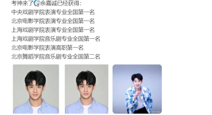 每到“艺考”的时间,网友们就开始关注娱乐圈将高考的明星,他们大部分都会选择走“艺考”的门路,当各校的艺考结果公布后,张新成的干系消息都会登上热搜,克日,网友们发现娱乐圈又出现一位艺考之神,他竟包揽三校演出专业第一名,这位明星究竟是谁呢? (本文全部图片,全部来自网络,感谢原作者,如侵占您的权利,请接洽本号作者删除。图片与内容无关,请勿对号入座) 前不久,官方选择比年来作品数量多,观众熟悉度高的16位男演员和女演员,对他们作品用原声的比例举行统计,当数据发出后,男明星中利用原声最高的是张新成,他拍摄的作品,利用的都是原声。 看到如许的情况后,网友们纷纷表现:不愧是良好的青年演员,当之无愧的艺考之神。信任很多网友都知道,张新成有“艺考之神”的称谓,在2014年,张新成一举拿下五所顶级院校的第一名,共得到9个学校的登科名额。 我们只能用“旱的旱死涝的涝死”来形容,究竟娱乐圈有很多到场艺考的艺人,有的连名额都达不到,而张新成不但拿到名额,终极还以高考结果文化课569分,乐成进入中心戏剧学院音乐剧专业。 近来,网上又出现一位“艺考之神”,这位考生的名字叫“余嘉诚”,是一位素人小哥哥,我们可以看到,余嘉诚得到:中心戏剧学院演出专业天下第一名,北京影戏学院演出专业天下第一名,上海戏剧学院演出专业第一名,上海戏剧学院音乐剧专业天下第一名,北京影戏学院演出职高第一名,北京舞蹈学院音乐剧专业天下第二名。 看到网传的这份结果单,网友们纷纷表现:真的是太锋利了,关键的是,他竟能在三大艺术院校中戏、北电、上戏的演出专业中均取得了第一,也就是说,这位素人小哥哥,除了演技过关外,音乐方面也非常有天赋。 当干系消息传到网络后,网友们立即开始扒这位素人小哥哥的干系消息,看到这位小哥哥的照片,网友们表现:又发现一位眉清目秀的帅哥。 当“余嘉诚艺考三校第一”话题登上热搜,有些网友却表现:照旧等高考结果出来再宣传吧,看到如许的品评,我们只能说:吃不到葡萄说葡萄酸,余嘉诚能得到多个学校的艺考名额,已经证实他非常良好了,而现在他能做简直实是进步本身的结果,让本身顺遂地进去理想院校。 从余嘉诚演出视频上看,他给人一种非常聪明且机灵的感觉,对于如许良好的门生,网友们还好坏常等候的,同时也渴望他能拍摄出更多良好的作品。 余嘉诚的结果绝对是艺考界的韵事,如许的结果,也让更多的网友主动去熟悉他,去相识他,信任通过不停地学习,他的未来肯定会变得更加精彩,去从事本身热爱的古迹。 在娱乐圈有很多学霸,对于学霸,网友们好坏常承认的,好比《长月烬明》正在热播,陈都灵就是妥妥的大学霸。 隔断高考另有2个月的时间,小编渴望各位学子们能取得好结果,各位读者,你们喜欢的明星,本年到场高考吗? |