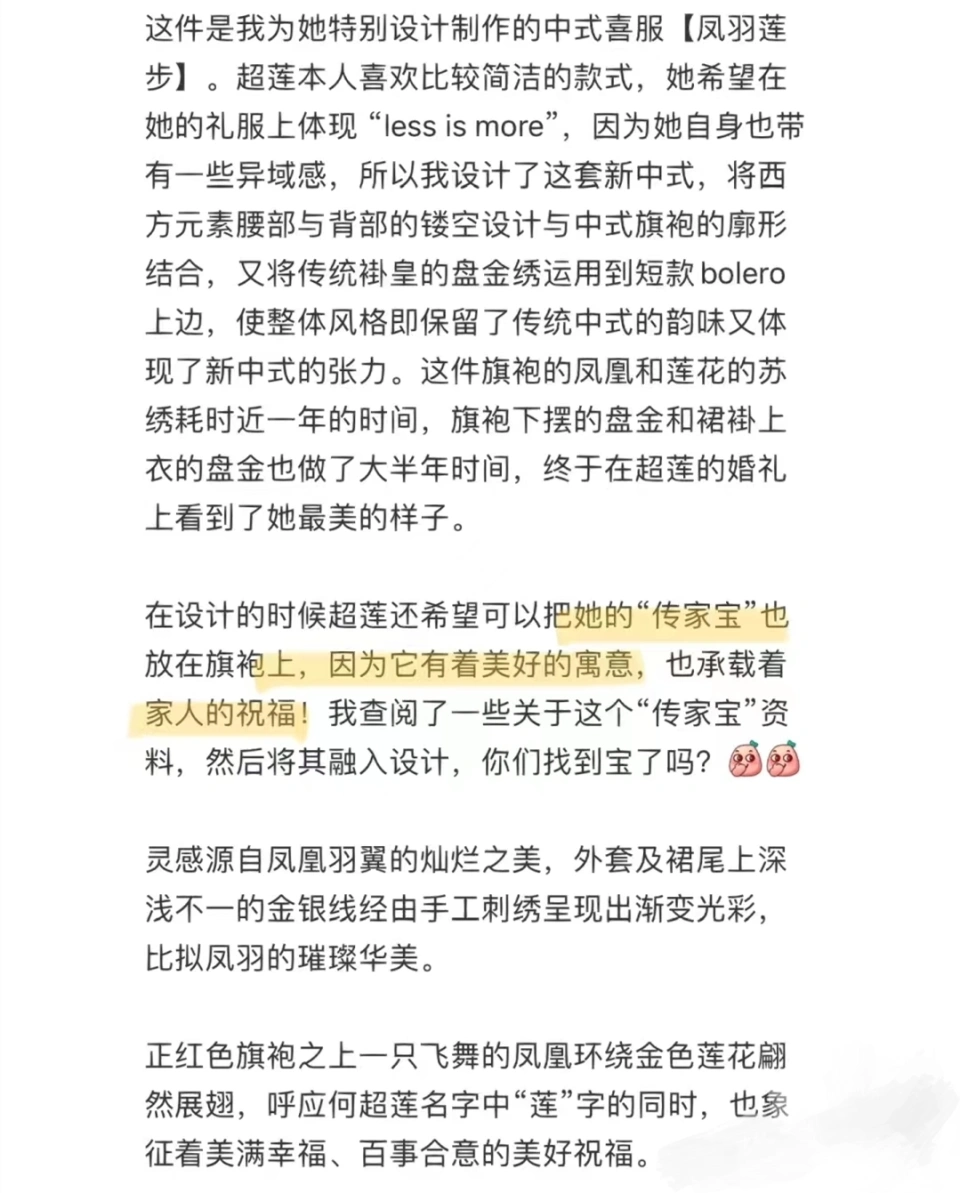 4月18日,全网都在热议赌王令媛何超莲和窦骁的世纪婚礼,据悉这场婚礼淹灭了5000万元,婚礼更是包下了整个旅店,现场只有亲朋,安保极其严格,不绝都没有婚礼现场的视频外泄,婚礼现场照照旧窦骁在微博发布的。 窦骁晒出的数张婚礼照片,立马就被网友扒出许多看点,此中何超莲母亲赌王三太陈婉珍的翡翠金饰格外地抢镜,风头乃至盖过了新娘何超莲,究竟上陈婉珍的金饰已经算是很低调了,许多网友都没有留意到,何超莲的婚服上用了传家宝“霞帔坠”,距今已有数百年的汗青,在古代只有皇家贵族才会用这种“金霞帔坠”,已经不能用款项来权衡它的意义了。 原来并没有网友留意到何超莲中式喜服上的“霞帔坠”,照旧喜服的计划师在文中透露,计划喜服时何超莲提出把她的“传家宝”霞帔坠放在旗袍上,然后计划师就把“霞帔坠”融入计划。 计划师晒出了制作旗袍时,“霞帔坠”的计划进旗袍的照片,从照片中可以看到,何超莲的传家宝是“金霞帔坠”非常的有数,怪不得能称得上是赌王家属的传家宝,之以是没有被网友发现,是由于“霞帔坠”计划在旗袍的最下面,而且旗袍上面的刺绣都是用的金银线,以是在照片中就不容易被发现。 之以是会把传家宝计划在旗袍的最下面也是有缘故原由的,“霞帔坠”原来就是用在凤冠霞帔上的坠子,所使用的材质一样平常为金大概是银,在古代是身份职位的象征,一样平常只有皇家贵族才会使用“金霞帔坠”。 在中国台北故宫博物馆收藏的《宋宣祖后像》中就有“霞帔坠”的使用方式,宋朝将霞帔列入制服规制,今后霞帔作为制服的形制根本固定,不绝连续到明代,以是“霞帔坠”的汗青可以追溯到宋、明两代,何超莲的传家宝“霞帔坠”,守旧估计距今至少有几百年的汗青。 通过图片可以看到,何超莲喜服上用的“金霞帔坠”和1958年宣城西郊窑场出土的宋代镂空“双龙纹霞帔坠”样式雷同,“双龙纹霞帔坠”收藏于安徽博物馆,可见它的贵重之处,已经不能用款项去权衡它的代价了,除了身份职位上的象征,它尚有祥瑞快意的象征,这才是真正的权门场面。 窦骁晒照后,许多网友都对赌王三太身上的翡翠金饰连连歌颂,还以为她抢了女儿的风头,如今看来都不怎样超莲喜服的传家宝,怪不得婚礼会包场,而且还请了上百名安保职员,外貌上看是为了不走漏婚礼现场的隐私,现实上安保职员全都是来护宝的。 18日晚,何超莲也晒出了当天的婚礼现场照,照片中的窦骁亲手为何超莲戴上婚戒,两人在亲朋的见证下甜蜜亲吻,恩爱水平爆表。 据悉,婚礼现场都是窦骁瞒着何超莲部署的,就是想在婚礼当天给她一个惊喜,婚礼现场何超莲被感动到落泪,两人的甜蜜爱情也得到了全网的祝福。 |