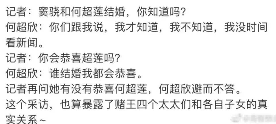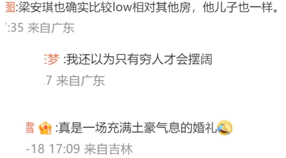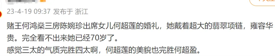 何超莲和窦骁的“世纪婚礼”作为赌王家属的一大盛事,不光让网友们看法了一番权门气魄,还让赌王家这个各人族再次成为了热门,不外四房大概万万想不到,何超莲的婚礼,竟然让四房在一夜之间丢尽了“面子”。 何超莲的婚礼,让四房的长女何超盈,小女儿何超欣和儿媳妇奚梦瑶都上了热搜。 长女何超盈当年的婚礼被拉出来和何超莲的婚礼做了对比,当年何超盈的婚礼上,主打就是“壕”,摆满了整个屋子的“过大礼”经典局面将权门的英气显现得极尽描摹。 何超盈完婚时身上也挂满了黄金饰品,四太梁安琪用绳子串起来的十几个金手镯非常惊艳。 相反何超莲这次在婚礼上避开了宝石和黄金的饰品,紧张选择一些低调风雅的钻石,风格更偏年轻人一点。以是有网友以为,在何超盈的烘托下,何超莲的婚礼显得清丽脱俗又高级。 而何超盈的婚礼则被以为有几分土气和显摆,更像是“暴发户”。 何超盈当日完婚时穿的衣服和何超莲的婚服也被拿来作比力,何超莲不愧被评为“赌王最索令媛”,在颜值和睦质方面被夸完胜何超盈。 不光是女儿,这次在何超莲的婚礼上,妈妈三太一袭龙凤褂,满身戴着代价上亿的珠宝,被许多网友夸气质高贵优雅,以致比女儿何超莲更加出众。 与此同时,也有网友翻出了四太梁安琪当年嫁女儿的照片,三太和四太嫁女儿的穿搭非常相似,都是穿着龙凤褂和戴着宝石项链,但有网友以为,对比之下,三太的气质完胜四太。 四太作为赌王暮年最痛爱的太太,风头不绝压过了低调的三太,没想到到了暮年,竟然由于女儿们的婚礼,被拿来和三太对比,而且还输了,不知道如今的四太有什么想法呢。 四房的小女儿何超欣日前的一则采访也在这个时间被网友翻出来了,在何超莲完婚前夕,有记者去问何超欣,知不知道何超莲和窦骁要完婚了。何超欣表现自己不知道,没时间看消息,记者说了才知道的。 但接着记者问何超欣会不会恭喜何超莲,何超欣并没有大方表现庆祝,而是说是谁完婚我都会恭喜。之后被记者问,有没有恭喜何超莲,何超欣则是避而不答。 何超欣的反应也让网友以为太小家子气,格局不敷大。固然说三四房在当年争产时一度属于对立的一方,但如今赌王已经去世,究竟是一家人,何超欣作为权门令媛,在公开场合说出如许的话确实不敷面子。 不外也有网友挖苦,大概正是由于赌王去世了,何超欣连装都不想装了。 相反,二房的何超琼就显得很大气。何超莲婚礼前不久,不绝和三四房很少接洽的何超琼在活动上和何超莲密切合照,让人看到了赌王接棒人的格局。 这次何超莲完婚,另有一件更抓马的事变,那就是奚梦瑶和窦骁的关系。之前网传奚梦瑶和窦骁谈过爱情,如今一个嫁给赌王四房儿子何猷君,一个娶了三房女儿何超莲,两人算是“顶峰相见”。 就在何超莲婚礼这天,不绝安静的奚梦瑶突然发文辟谣,称自己在19年的时间已经辟谣了,她和窦骁从来没有谈过爱情,盼望网友们不要在人家的大喜日子抖“小机敏”,并祝福何超莲和窦骁。 奚梦瑶的辟谣自己没有什么标题,但网友们以为奚梦瑶非要选择在何超莲大婚当天辟谣和窦骁的绯闻,好像有点不妥当了,以致让人以为有点故意蹭热度。 奚梦瑶和赌王四房宗子何猷君在2019年官宣完婚,婚后连生两胎,生了一子一女,但两人只是领证了,却不绝没有办婚礼。 这次由于何超莲完婚,奚梦瑶这个“不受器重”的赌王儿媳妇又被“心疼”了一番。 奚梦瑶的丈夫何猷君也接着被扒出早前曾发长文,疑似内在三房子女靠赌王“塞钱”才上了大学。 何猷君的长文中本意是想表达自己为了赌王的心愿,积极依附自己的本领考上了剑桥大学的自负,但却在内里提到了赌王从前费钱想让子女上牛津大学的事变,只要网友们过细分析赌王几房子女的环境,就能容易得知何猷君口中“费钱上大学”的是三房子女。 接着三房的何超莲和龙凤胎哥哥何猷启都在外交账号取关了何猷君,疑似实锤了三四房反面的究竟。 究竟上,在赌王家属中,由于四太梁安琪是赌王暮年最痛爱的太太,四房也成为了赌王家属中最高调的存在,反而是三房一脉不绝被四房压着,就连在“争产大战”中,三房也不敌四房。 三太陈婉珍的身家约莫在10亿美元左右,折合人民币67亿人民币,但四太的身家高达27亿美元,折合人民币约185亿,加上其他资产的话,四太的财力远不止185亿。 但权门看的也不满是产业的数目,这次通过何超莲的婚礼,四房一脉的“面子”可以说是丢光了。 |