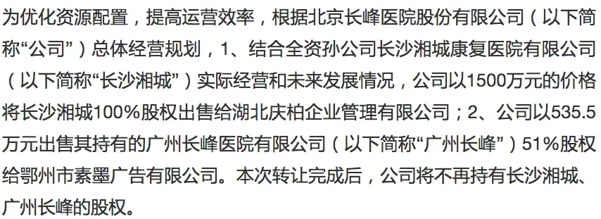 本文泉源:期间周报 作者:邓宇晨 北京长峰医院火警引发天下关注。 4月19日早盘,天下中小企业股份转让体系称,因长峰医院(870890.OC)发生庞大风险变乱,且未申请停牌,因此决定从克日起对长峰医院的股票实行停牌。主理券商中信建投(601066.SH)同时发布风险提示公告称,根据消息报道,长峰医院于2023年4月18日发生庞大火警变乱。本次变乱造成了较大职员伤亡及产业丧失,丧失金额尚不明确。本次变乱将对长峰医院谋划形成倒霉影响。 “停止公告发布日,主理券商未能与公司相干职员取得接洽。主理券商将密切关注本次变乱的相干环境,实时按照相干规定督导公司推行信息披露使命,敬请广大投资者留意投资风险。”中信建投表现。 4月19日中午,北京市召开长峰医院火警变乱环境转达会。据转达,停止19日早9时,经转院救治无效,29人不幸殒命。经开端观察,变乱系医院住院部内部改造施工作业过程中产生的火花引燃现场可燃涂料的挥发物所致。变乱详细缘故原由和丧失还在进一步观察之中。现在,北京长峰医院院长王某玲、副院长汪某等12人涉嫌庞大责任变乱罪,已被刑事拘留。 据2022年半年报,2022年上半年,长峰医院营收2.53亿元,同比淘汰5.12%,净利润为-3152.3万元,同比淘汰166.01%。据北京长峰医院官方微信,在北京之外,长峰医院团体还在上海、南宁、广州、西安、合肥、长沙等20城开设医院。据媒体报道,长峰医院团体已完成了天下三个直辖市及3000万以上生齿省份十多家连锁医院的布局。 4月19日,期间周报记者多次拨打长峰医院董秘电话,停止发稿未获接通。期间周报记者随后拨打广州长峰医院电话,同样无人接听;但“广州长峰医院”官方微信平台复兴期间周报记者称,现在医院仍旧正常业务,可以看病,并要求记者添加其私人微信。 长峰医院半年报表现,现在公司的法定代表人、实控人均为汪文杰。据《公开转让分析书》,汪文杰于1969年8月出生,大专学历,1992年-2001年在鄂州市中医院临床工作,2001年-2006年任鄂州中医血管瘤专科医院院长;2006年5月,汪文杰赴北京,任北京丰台长峰医院院长。2009年,汪文杰建立北京长峰医院股份有限公司,并于2017年在新三板挂牌买卖业务。 停止4月19日停盘,长峰医院报收7元/股,总市值10.18亿元。 “神医”的进京之路 据“北京长峰医院官方”官微,北京长峰医院是首家血管瘤范畴的新三板挂牌企业。作为首创人的汪文杰,于2006年赴京任北京丰台长峰医院院长,并用了10余年的时间将长峰医院发展成为覆盖天下多个都会的医疗团体。 “长峰资讯”表现,汪文杰毕业于湖南岳阳中医学院,并在临床工作中碰到了一位患有面部巨大血管瘤的小女孩,这让汪文杰决定“从0开始攻克血管瘤”。在汪文杰的积极下,他研制出的新型技能不开刀、伤害性低的神奇疗效,在湖北省引起惊动。 据天眼查,“长峰资讯”的主体为“北京中联长峰国际血管瘤研究”,由汪文杰100%持股,出资金额仅10万元。 据“康健界”,汪文杰的发家源于多位“贵人”的资助。据汪文杰回想,其时湖北省一个罹患肝血管瘤的“贵人”,由于不想举行创伤性的手术治疗,便通过他人先容找到了已在血管瘤治疗范畴小有结果的汪文杰。“针对他的病情,我接纳的是复合型的治疗方案。”在汪文杰的悉心治疗下,这位“贵人”的肝血管瘤治疗取得了满足的结果。出于欣赏,30岁出头的汪文杰便被这位“贵人”作为青年科技人才引进到了湖北鄂州中医院继续副院长,专门分管血管瘤的治疗。 “康健界”资料表现,汪文杰在乐成地为另一位北京的“贵人”治愈肝血管瘤之后,“橄榄枝”又伸向了他。就在北京和湖北两地“争抢”汪文杰时,他心中萌生出了一个大胆的想法:自己开办一家以血管瘤为诊疗特色的医院。汪文杰拒绝了“都城三甲北京中医药大学东方医院要调任他为血管瘤科专家”的职位,决定自己办一家专注血管瘤的专科民营医院。 2002年,在本地当局的支持下,汪文杰建立的鄂州中医血管瘤专科医院建立,这也是中国第一家血管瘤专科医院。据“长峰资讯”,汪文杰最开始在天下的直辖市或省会都会开办血管瘤连锁医院的发起被团队成员全票否决,但并未取消他创业的刻意;如今,汪文杰建立了“中国最大规模的血管瘤王国,资助数十万人走出逆境”。 “长峰资讯”写道,“不想当董事长的大夫不是好创业者”,汪文杰“创造了从1家到13家医院的天下连锁,再到新三板挂牌敲钟,他吃了无数的闭门羹且遭受白眼,但没有改变他对血管瘤的信心,终结果了长峰医院本日的王者职位。” 负债率超70%,卖股权回血? 近些年,长峰医院营收环境不佳,靠卖旗下医院资产回血。 2022年半年报表现,停止2022年6月尾,长峰医院资产负债率达71.60%,2021年同期为66.49%;谋划活动产生的现金流量净额达1804.60万元,同比淘汰了31.37%。 毛利率也从2021年同期的29.46%低沉至20.67%;研发费用也从2021年同期占总营收的1.17%低沉至0.87%,仅有贩卖费用不降反升,从2021年同期的17.08%增长至2022年上半年的18.62%。 2022年上半年,长峰医院的贩卖费用达4707.27万元,而研发费用仅219.08万元。据2021年年报,长峰医院的贩卖费用达1.00亿元,同比进步了25.76%。 值得留意的是,长峰医院部属的各地专科医院也大多处于亏损状态。2022年半年报披露的22家控股参股公司中,仅有重庆长峰医院、鄂州中医血管瘤专科医院、广州长峰医院、长沙
