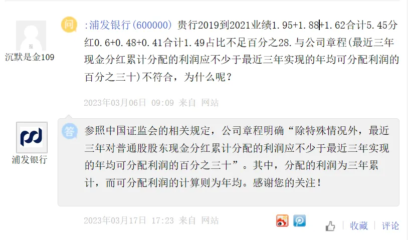 本文泉源:期间财经 作者:刘子琪 图片泉源:图虫创意 2022年,浦发银行(600000.SH)交出营收净利双降的财报。 4月18日晚间,浦发银行发布年报称,2022年实现业务收入1886.22亿元,同比降落1.24%;净利润511.71亿元,同比降落3.46%,根本每股收益1.56元。 停止2022年末,浦发银行资产总额为8.70万亿元,比上年末增长5678.94亿元,增长6.98%;负债总额7.80万亿元,比上年末增长5393.37亿元,增长7.23%。 该行的利润分配方案体现,公司拟每10股派发红利3.2元(含税),分红率为20.50%。从直接数据来看,分红方案违反了公司章程30%分红率的规定。 对于不敷30%的分红,有投资者称:“老太太过年,一年不如一年。”也有投资者体现,“分红要除权除息,分多少关系不告急吧?” 根据如今已发布的上市银行年报,浦发银行成为唯二业绩负增长的银行,同时也是上市的9家股份制银行中唯一净利润降落的银行。 别的,在2022年不少银行员工的均匀薪酬增长的配景下,浦发银行人均薪酬小幅降落,由2021年的45.88万元降至2022年的45.46万元。4月19日,浦发银行报收7.53元/股,下跌0.13%。 净利润连续3年降落 梳理已发布年报的上市银行,仅浦发银行和郑州银行2022年的归母净利润增速为负,分别降落3.46%、24.92%。 农业银行(601288.SH)、建立银行(601939.SH)等国有大行,归母净利润增速都高出7%。安全银行(000001.SZ)、招商银行(600036.SH)、中信银行(601998.SH)、兴业银行(601166.SH)等股份行净利润增速在10%-25%。 这已是浦发银行连续3年净利润出现降落。2020年、2021年,浦发银行分别实现营收1963.84亿元、1909.82亿元;净利润分别为583.25亿元、530.03亿元。 别的,该行不良贷款余额、不良贷款率连续三年逐季降落。停止2022年末,浦发银行不良贷款余额746.19亿元,较上年末淘汰22.10亿元;不良贷款率1.52%,较上年末降落0.09个百分点;拨备覆盖率为159.04%,较上年末上升15.08个百分点。 浦发银行年报体现,通过加大现金清收、增强板块联动、拓宽处理渠道、试点个贷转让等多元化本领运用,全面加大不良清收处理力度,实现不良资产清收366.53亿元。 别的,在2022年不少银行员工的均匀薪酬增长的配景下,浦发银行人均薪酬小幅降落,由2021年的45.88万元降至2022年的45.46万元。不外,董事长郑杨的薪酬未有变革,仍为85.68万元。行长、副行长薪酬有差别程度降落。 食言,分红率微超20% 浦发银行同时披露了2022年度利润分配方案,拟每10股派发红利3.2元(含税),2022年现金分红合计93.93 亿元(含税),分红比例20.50%。 对于分红低于30%,浦发银行公告表明称,国际地缘政治辩说等因素对举世经济产生影响,举世经济复苏仍存在肯定不确定性,国内银行业务发展面临寻衅,需进一步提升风险抵抗本事。 实际上,浦发银行的分红比例正在逐年降落。2019年至2021年,该行分红比例分别为30.80%、25.50%、25.26%。 2022年,工商银行、农业银行、中国银行、建立银行、邮储银行等多家银行的分红比例均超30%,交通银行更是自上市以来连续十年现金分红率保持在30%以上,招商银行、成都银行将“每年现金分红比例不低于30%”写入公司章程。 2013年《上海证券生意业务所上市公司现金分红指引》,提出现金分红比例低于30%的上市公司推行更严格的信息披露任务。 值得一提的是,3月6日,有投资者提问浦发银行,“三年分红合计1.49元,占比不敷28%,与公司章程不符合。”浦发银行复兴称,章程明确“除特别环境外,迩来三年对寻常股股东现金分红累计分配的利润应不少于迩来三年实现的年均可分配利润的百分之三十”。此中,分配的利润为三年累计,而可分配利润的盘算则为年均。 图片泉源:上证e互动 4月19日,一名业内人士向期间财经体现,证监会并没有规定上市银行现金分红比例必须超30%。他以为,现金分红率高并不愿定是功德,高分红率大概会导致公司资金短缺,无法举行投资和扩张,从而影响公司长期发展。“假如公司的现金分红比例过高,大概会低沉公司的财政稳固性和抗风险本事。”这名流士说。 同日,金融体系业内人士武警告向期间财经体现,银行股的现金分红是否连续以及分红比例的高低,不但取决于宏观经济环境这一周期性因素,还与个体所处的发展阶段的特点有关。其红利本事和资产质量等指标的妥当,是可以或许回馈股东的最关键内因,也是体现发展代价和社会责任的体现。 “分红与业绩呈正干系,但有些增长了拨备覆盖,这也是导致分红少的缘故原由。” 武警告说。 |