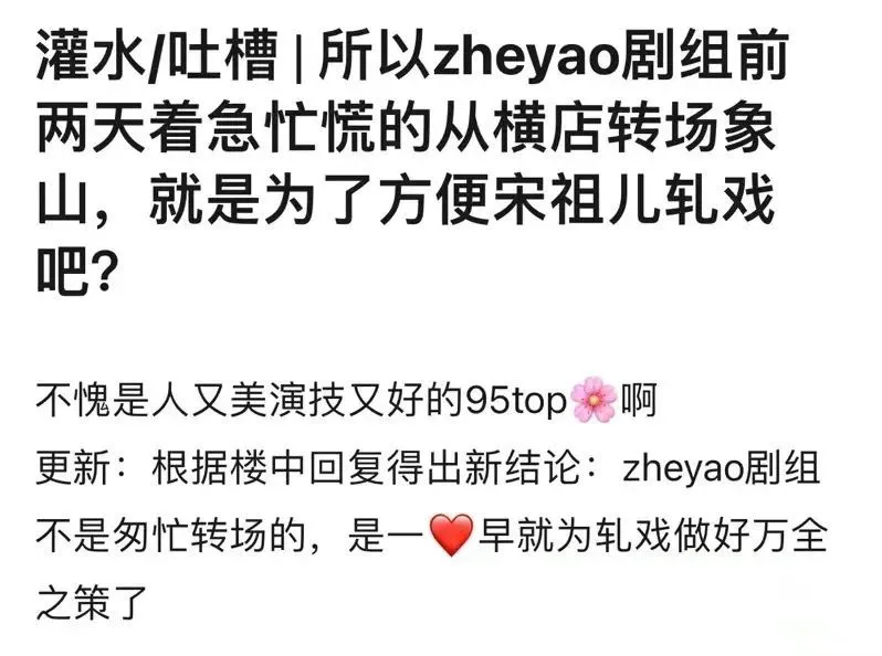 轧戏算是影视圈的大忌,但克日宋祖儿却踩了雷点。她被曝光轧戏,同时到场两部剧的女主拍摄,一时间引发了热议。 宋祖儿的“翻车”还要从一张照片提及。 明星拍戏有路透图传出很正常,但宋祖儿正在拍摄的古装剧《折腰》尚有一个多月才告竣,照片中她和张新成穿的却是具有年代感的衣服。 这就被细致网友发现了不短冖的地方,由于他们的造型和4月8日中午阳光官宣开机的新剧《困难的制造》很相似。 也就是说,宋祖儿一边拍着古装剧《折腰》,一边又在拍年代商战剧《困难的制造》,这下是被实锤轧戏了。 更尴尬的是,此前宋祖儿为了不轧戏,辞演《全职高手》,用心投入《九州缥缈录》的拍摄。 其时剧组还发文夸她“小小年事拥有对艺术创作的责任感和继承感”。 现在轧戏举动曝光,宋祖儿真是惨遭“打脸”。 网友们也纷纷品评她这种举动。此前某位艺人透露她拍戏日薪高达208万,就被叫做“208”,现在网友们吐槽,以后“轧戏咖”要叫“416”了。 不但是她,贵圈轧戏的演员大有人在。以致尚有网友总结了“四大轧戏咖”,分别是李一桐、李沁、古力娜扎和宋祖儿。 李一桐被曝拍摄《狂飙》时就有轧戏举动,现在还同时拍着两部剧和综艺。 有网友表明,娜扎是由于《风起西洲》耽误开机泰半个月,下部剧都开机了,这部还没竣事。 看来娜扎这算是被迫轧戏。 李沁是轧戏《梦中的那片海》和《人生之路》,前一部剧拍摄时间为2022年2月12日到6月8日,后一部剧则是同年3月5日到9月15日,时间确实有重合。 轧戏原来在影视圈就不是奇怪事,除了小花们,尚有不少演员轧戏。早在2010年,杨幂就发文自负地体现本身五部剧一起拍。 赵丽颖也曾经自曝同时串三个脚色,她拍摄影戏《密战》时,还在拍电视剧《青云志》和《老九门》,而且都是告急脚色。 2020年,她又轧戏《谁是凶手》和《幸福到万家》。 就连演员张鲁一在拍摄《大秦赋》时也轧了三部戏。 对于各人品评演员轧戏的举动,有部分网友就感到好奇了,剧组同意,演员乐意,为什么不可? 此前还没有对轧戏举动作出规范,演员轧戏不停受到争议,自从2022年明白分析轧戏属于违规后,这个举动就是妥妥的影视圈雷点了。 深扒宋祖儿轧戏,就能知道各人为什么都对轧戏云云反感了。该被品评的,是影视圈的“宋祖儿们”。 急功近利,影响演技提升 秦岚主演过一部关于娱乐圈的电视剧《怪你太过美丽》,就影射了演员轧戏举动的危害。 她在剧中是一名公司经纪总监,负责两名士量艺人。 此中一名当红演员林湘同时接下两部大戏,两个剧组来回跑不说,本身也不能顺应。 林湘期间还要到场其他运动,没办法到组拍戏,拖累了拍戏历程,还用绿幕抠图来乱来观众。 又由于天天只能睡四五个小时,林湘没法深入相识脚色,只能用模式化的演技来应付。 原来以为这是脚本,没想到竟然是现实。 宋祖儿童星出道,出道多年,代表脚色不外是小哪吒和“乔四美”,她其他作品都没有特殊出圈的脚色。 这时展示本身的大好时机来了。《折腰》由蓬莱客同名小说改编,拥有很高的粉丝底子,宋祖儿饰演聪慧机敏的乔家女郎小乔人设也很讨喜。 《困难的制造》由中午阳光出品,有句广为流传的话叫“中午出品,必属佳构”,可见各人对其程度的信托。宋祖儿在剧里继承女主,这也是一个锻炼的好时机。 任选一部研讨,大概都会让宋祖儿有劳绩,但她偏偏选择一起拍。网友就质疑她能不能同时顺应古代剧和当代剧了,究竟很有大概两个脚色都没演好。 关于李一桐的轧戏举动,网友也体现她此前的无缝进组“耗完了灵气”,“一部接一部,但是没偶然间好好打磨一个脚色”。 连《狂飙》内里没多少杀鱼镜头的“老默”,为了能贴近脚色,都提前半个月进组,找人学习当鱼贩。但李一桐却没静下心。 这大概也是她演了许多剧照旧没能火起来的一个缘故原由,究竟《狂飙》险些全员出圈,她作为女主,却被吐槽演技寂静淡,还被“大嫂”高叶压了风头。 杨幂轧戏五部,但都没激起太洪流花,她还自称“1年拍11部戏”。 频仍进组,缺少时间研究脚色和脚本,末了出现的效果也不尽人意,杨幂还被奉上“烂片女王”的称呼。 张鲁一演的《大秦赋》差评一片,网友吐槽他演古装剧,照旧当代人坐姿,由于轧戏没时间学习相干礼仪。 而且他在到场一档节目时,主持人提到一段演出,是他早期拍过的戏,他却一问三不知,还反问主持人“谁演的?” 看来张鲁一轧戏太多,连本身演过的剧都忘得干干净净。大概他拍戏时都没认真预备吧。 抢占资源,牵连其他演员拍不了戏 关于宋祖儿在《困难的制造》中的造型,有网友提出疑问,是不是太过老气,不恰当她本人呢? 演员是必要寻衅差异的脚色,但是出演跟本身风格迥异的脚色,那也不太符合,轧戏的演员却不愿意放手。 影视圈许多有演技的好演员等着“熬”出头,他们有人接一部戏都很难。 走红之前的张颂文就很难接到戏,他自嘲三年申请了八百多个剧组,被拒绝了八百多次。 高叶也是云云,她体现此前很难能接到戏拍。 冯绍峰之前也说本身可以演暴徒,固然大概是打趣话,但也暴袒露许多演员无戏可拍的暴虐现实。正如网友所说,有人轧戏许多部,尚有人没戏拍。 牵连其他人,还毁掉本身口碑 有网友爆料,宋祖儿轧戏,“害”了剧组。 艺人孔雪儿的粉丝体现孔雪儿行程被迫取消。 剧组也从横店搬到了象山,而《折腰