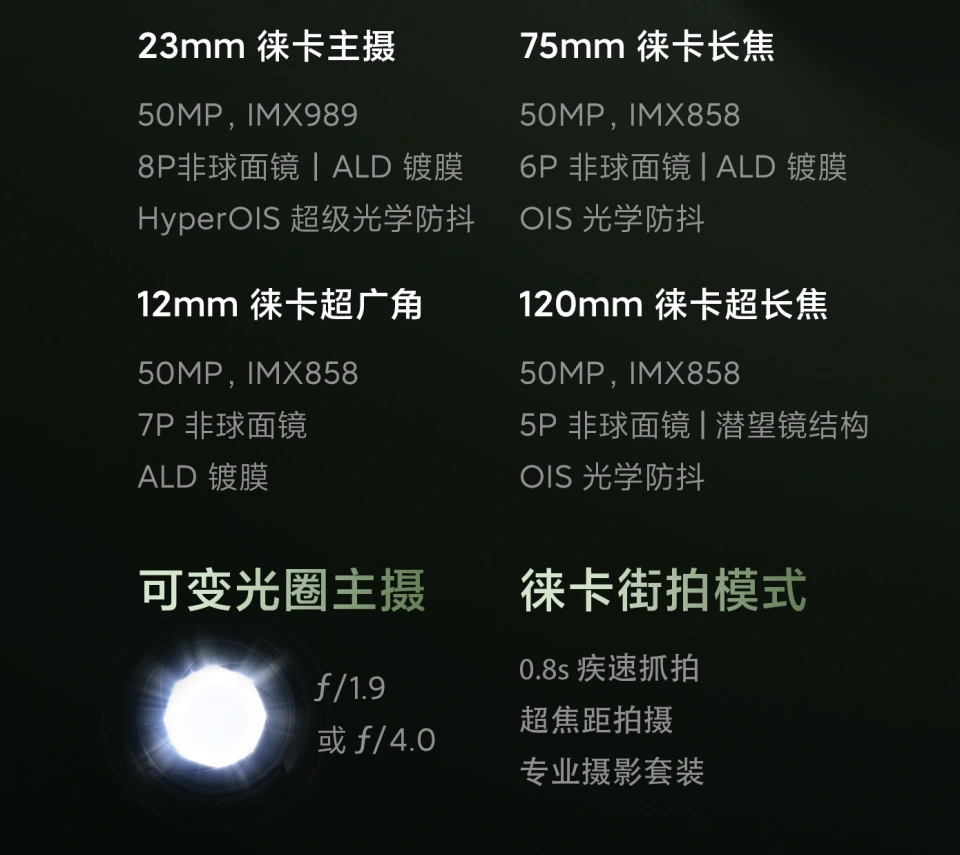 要说本年的影像旗舰手机真多,好比光彩Magic 5Pro,好比OPPO Find X6 Pro,好比华为的P60 Pro,末了一个登场的则是小米13 Ultra。 那么,小米13 Ultra的体现怎么样呢,评价君以为还是很值得一说的。 咱们先说说徕卡在这款连合开辟手机中的作用,包罗影像色彩,包罗对于快门的把控,锐化的把控,对于镜片的计划把控等等,究竟徕卡光学的力气无人猜疑。 小米方面,则有影像大脑,好比万物追焦,包罗8K录像,等等,同时完成了难度极高的量产题目。可以说两者的连合非常经典,是手机数码与传统光学的一次经典融合。 而在影像体系上,索尼起首辈行了加持,提供了IMX989,以及IMX858,此中IMX858是索尼唯一支持多摄同步体系的传感器,可以实现更好的多摄划一性。 在这个底子上,徕卡和小米就开始进一步的创新了。 先看看镜头群,后置四摄,充实拉开了范围,提供了12mm-120mm的光学焦段。着实评价君以为一样平常人都是很难把握好超广角的,出片几率最高的,着实是23mm以及75mm。 其在焦段上,一共有6档,此中2X是1X中心的1250万像素实现,由于1X的CMOS更大,以是画质还是很有保障的。其10X,则是在5X中心的1250万实现,由于IMX858 CMOS较小,以是10X画质降落也是有的。 可以看到,四个镜片组都用了非球面镜片,堪称豪华。 别的,徕卡光学还应用了环烯烃聚合物制成的镜片,这种镜片尺寸稳固,在袒露于差别湿度情况后光学性能的厘革很小。同时,尚有高稳固态镀膜,对抗眩光,以及IR滤光片,修正日光下偏色题目。 同时,四个镜头都接纳了更大的光圈,提拔进光量。这里超广角提拔的最小,但别的三个镜头,都大概有大幅提拔,大概本身进光量就很大。尤其是1英寸搭配的1/1.9大光圈,进一步增长了上风。 可见,在CMOS以及镜片组上,小米、徕卡都做了很多工作,包罗不少创新。 而在色彩风格上,起首有两种,经典画质和生动画质,生动画质更像是对于现在人们喜好明快生存色彩的一种改变,而且拍摄难度低沉。经典画质则很磨练光影的结构,更为高阶。 在拍摄界面可以一键切换两种画质。评价君的战略是,寻常生动画质,发现有大光比场景,偶然机举行一下影调展示,意境创作的时间,可以切换到经典画质。 别的,尚有丰富的滤镜,方便举行光影创作。 说了这么多,大概也有点疲劳了,那么接下来话不多说,看看样片吧。 出门,就先试验了一下12mm超广角,以及120mm长焦,不由得感叹5倍光学变焦的威力。 这是120mm长焦的效果,有肯定锐化,但没有过分锐化,把控较好。 可以看到,镜头间划一性好坏常高的,固然这也是废话,究竟是一款CMOS,75mm和120mm两者的重要差别是焦段差别。 但纵然是23mm的主摄,1英寸的IMX989,色彩上也与长焦相靠近。只不外主摄用了8P镜片,大尺寸CMOS,画质确实更好。 通过五个焦段照片的排排坐,你会发现色彩划一性的管理体现是相称出色的。 同时长焦实现了我们视力的扩展,拍摄灵敏,可以抓拍各种瞬间。 可以看到,在光照充实的白天,长焦端快门速率到达了1/800秒,加上防抖,非常妥当。也可以看到徕卡的战略,不停是最大光圈,最低ISO,提拔画质。有人说,相机内里不都是光圈缩小后,画质到达最佳吗?确实云云,不外徕卡的光路计划优化,都是按最大光圈来的,以是这时就是最佳画质。 同时,超广角的体现并不逊色,同样的战略,最大光圈,f/1.8。 这个超广角固然到达了12mm的超广焦段,但畸变控制还是很好的,再广大概就得向着鱼眼镜头的方向发展了。 别的,46mm焦段固然是裁切焦段,但可以看作是1英寸主摄的福利,并非没有效途,能方便我们构图。 46mm非常恰当显现构筑的一部分,在无从构图的时间可以举行选择。 究竟,23mm和75mm焦段中心的空档太大了,有个46mm焦段相称有须要。 而最为常用的焦段,大概还不是主摄,是75mm焦段,好比可以实现虚化。 好比可以抓拍孩子心情,都很实用。 而120mm则恰当实现更猛烈的空间压缩,效果不错。 抓拍远处风景、事物也是不错的,有点类似望远镜。 接下来,我们来看看徕卡提供的各人镜头,以及滤镜。 先看看35mm端,最重要特点是可以近间隔拍摄,同时畸变小,还能叙述场景,这个焦段对于构图难度是有磨练的。 在室外场景下,能记录更多内容,有肯定虚化效果。 而50mm端,模仿超大光圈,是最方便出片的焦段。 没什么场景的情况下,用50mm端拍摄人物,还是很舒服的。可以连续拍10几张,从中挑选。 抓拍也不错,好比上图这张,人物的虚化效果恰到优点。 75mm的虚化效果与50mm端不太类似,可以多研究,拍摄体验。评价君从前用小米13的履历,是75mm各人镜头拍小物件,好比杯子等等更好。 这次也是云云,可以得到相称出色的体验。 总之,由于几个镜头色彩的划一性,你可以多试试差别镜头举行叙事。 好比从120mm换成75mm焦段,你就能发现更多信息。 而通过组合的照片记录,也很有爱好,方便你留住谁人午后的影象。 夜景方面,小米的夜枭算法依然刁悍,1/10秒的效果也是不错的,ISO 3200下噪点控制也不错。 长焦端也可以使用哦,1/8秒,很稳,这点可以放心。 别的,特别保举一下徕卡的丰富滤镜,非常恰当在夜景中使用。 好比这个效果,立即就把夜的迷离和出色展示了出来。 这张同样是滤镜,冷色怀旧风格浓厚,恰当体现心情。 换一个颜色,又会出现出都会的快节奏和浮躁,以及昏黄下的疲劳感。 以上照片,是评价君两天时间拍摄的一些生存情况,着实评价君以为,着实小米13 Ultra照相的机遇是比其他手机更多的,不管是焦