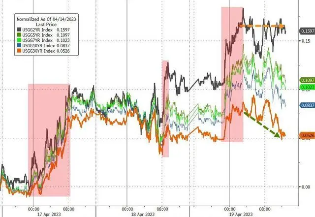 在美联储“大鹰派”布拉德等官员前两日频频发表鹰派言论后,交易业务者评估新一批企业财报业绩,同时继承关注任何联储未来动向的信号。 周三美股大盘承压下行。部门公布财报的企业股价颠簸较大。一季度新增流媒体用户远低于预期、二季度营收指引也逊色的奈飞早盘曾跌超5%;一季度净利润剧减20%的产业管理业务优于预期的摩根士丹利早盘跌近4%后转涨。发布财报前在美国再度贬价的特斯拉盘后公布一季度红利和收入均低于预期,盘后股价跌幅扩大。而一季度红利大超预期、且公布硅谷银行倒闭后3月下旬以来存款规复增长的地区银行阿莱恩斯西部银行(WAL)跳空高开,两位数大涨。 品评称,投资组合司理试图低沉风险,由于担心美联储连续紧缩的配景下情况不妙,一季报将表现,企业失去定价权、利润缩水。尚有品评称,如今的避险基调和经济阑珊的风险加剧划一,它大概是美联储引发的。 美联储发布的天下经济形势观察陈诉“褐皮书”表现,近来几周美国经济增长陷入停滞,雇用和通胀放缓,信贷得到渠道变窄。“总体物价程度温暖上升,但代价上涨速率好像放缓。” 如今市预计美联储5月加息25个基点的概率凌驾90%,同时,本年内降息的预期降温。美债收益率团体上行,对利率远景更敏感的两年期美债收益率一连五日攀升,革新一个月来高位。美元指数反弹,盘中曾重上102.00,离开周二回落所创的一年来低谷。 在欧洲市场,科技股拖累泛欧股指回落,告急源于荷兰光刻机巨头ASML的一季报引发市场对芯片市场总体远景的担心,但奢侈品巨头LVMH的回涨势头不改,力挺法国股指再创汗青新高。欧债的收益率升势更胜美债一筹。3月英国CPI放缓程度不及预期放缓,保持10%以上的同比增速,投资者加鼎力大举度押注英国央行继承紧缩,预计利率峰值达5%。英国国债收益率周三总体升幅凌驾10个基点。 美元反弹之际,大宗商品总体下挫:黄金盘中跌破2000美元,一度跌至两周多来低谷,后虽收复这一关口,收盘仍靠近周一所创的一周低位;周二委曲收涨的国际原油盘中跌近3%,收盘跌至本月内低谷,周三美国能源部公布的上周EIA原油库存超预期降落,但汽油库存不降反增,品评称原油库存下滑部门源于出口不测反弹,总体来看,投资者对需求远景的担心占了上风。 奈飞地点板块领跌标普 地区银行阿莱恩斯西部银行涨24% 特斯拉财报后跌幅扩大 IBM财报后跳涨三大美国股指团体低开。纳斯达克综合指数盘初曾跌近0.8%,以后收窄约半数跌幅。开盘不到半小时内,标普500指数曾跌约0.5%,道琼斯工业均匀指数革新日低,日内跌超160点、跌近0.5%,后跌幅收窄。午盘纳指和标普转涨,革新日高时,标普日内涨近0.2%,纳指涨0.3%,但尾盘标普转跌。 终极,三大指数收盘继承涨跌各异。周二微幅回落的纳指收涨0.03%,报12157.23点,开始靠近上周四所创的4月3日以来收盘高位。周二微涨委曲两连阳的标普微幅收跌0.008%,报4154.52点。道指收跌79.62点,跌幅0.23%,报33897.01点,连跌两日,继承跌离上周四所创的2月25日以来高位。 代价股为主的小盘股指罗素2000收涨0.22%,跑赢大盘,靠近周一反弹逾1%革新的4月3日以来高位。科技股为重的纳斯达克100指数微幅收跌0.02%,固然未能一连第三日依附尾盘转涨小幅收涨,但和上周四所创的4月3日以来高位相差不远。 标普500各大板块中,周三有六个收跌,此中奈飞地点的通讯服务板块跌逾0.7%领跌,质料跌0.3%,能源跌近0.3%,工业和必须消耗品跌不敷0.1%。收涨的五个板块中,公用古迹涨近0.8%,房产涨近0.6%,医疗和金融涨近0.3%,特斯拉和亚马逊地点的非必须消耗品微涨。 龙头科技股中涨跌不一,苹果等部门转涨。特斯拉盘月朔度跌逾3.6%,收跌2%,盘后公布财报后,盘后股价跌幅扩大到5%以上,曾靠近6%。 FAANMG六大科技股中,周二盘后公布一季报的奈飞领跌,盘初曾跌约5.3%,收跌3.2%,回吐周二反弹的涨幅,创3月23日以来新低;Facebook母公司Meta收跌1%,连跌两日至一周低位;谷歌母公司Alphabet收跌0.3%,连跌三日至3月31日以来低位;而亚马逊收涨近2%,抹平周二竣事三连涨的跌幅,涨至2月2日以来高位;苹果收涨0.7%,连涨三日,继承革新客岁8月25日以来高位;微软微幅收涨0.03%,委曲反弹,未继承靠近上周二所创的3月29日以来低位。 除特斯拉外,其他电动汽车股也都下挫。被RBC Capital Markets将评级从优于大盘下调至持平大盘后,特斯拉强敌Rivian收跌4.5%;Lucid收跌2.7%。 银行股总体走高,地区银行表现强于大行。银行业指标KBW银行指数(BKX)收涨1.7%,连涨五日,继承创3月10日硅谷银行倒闭日以来新高。地区银行指数KBW Nasdaq Regional Banking Index(KRX)收涨近3.2%,地区银行股ETF SPDR标普地区银行ETF(KRE)收涨近4%,均抹平周二跌幅。 公布财报的银行中,摩根士丹利盘初跌逾3.7%,盘中转涨,收涨近0.7%;公布一季度EPS红利2.3美元、较预期高10%、且3月30日到4月14日存款增长29亿美元后,地区银行阿莱恩斯西部银行(WAL)盘初即涨超20%,收涨24%,创2008年9月美国金融危急以来最大单日涨幅,抹平3月10日硅谷银行倒闭以来全部跌幅。其他地区银行中,第一共和银行(FRC)涨超12%,场外交易的硅谷银行母公司SVBFinancialGroup(SIVB)收涨逾69%。 其他公布财报的个股中,收跌1.1%的IBM(IBM)盘后公布一季度红利优于预期,盘后跳涨,一度涨超3%;一季度营收超预期增长14%的医疗呆板人生产商Intuitive Surgical(ISRG)收涨10.9%;一季度EPS亏损低于预期且预计二季度红利的美联航(UAL)收涨7.5%;