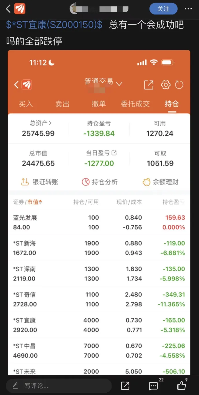 本文泉源:期间财经 作者:周立 4月中下旬是披露年报的末了时间,不少绩差股纷纷选择此时交终极答卷,渴望可以大概晚点判“退”。 然而,多只ST股在未公布年报之前,先等来了面值退市。 4月19日晚间,*ST宜康(000150.SZ)举行关于公司股票大概存在股价低于面值被停止上市的第五次风险提示。 停止2023年4月19日,*ST宜康股票收盘价连续14个买卖业务日低于1元。若公司股票收盘价连续20个买卖业务日低于1元,公司股票大概被深圳证券买卖业务所停止上市买卖业务。 4月20日,*ST宜康连续昨日一字跌停的态势,开盘即“收工”,收于0.66元/股,跌幅4.35%。 然而,仍有股民在明知*ST宜康有退市风险时选择买入,祈求可以大概“宜”飞冲天。 图片泉源:图虫创意 股价日日创新低,业绩下修恐退市 只要再熬五个买卖业务日,*ST宜康面值退市就是板上钉钉的事。 自3月30日起,*ST宜康股价不停在1元以下倘佯,并在4月18日收于0.73元。同日,*ST宜康因连续三个买卖业务日内,跌幅偏离值累计到达12%而登上龙虎榜。 同花顺龙虎榜数据表现,榜上净卖出125.66万元,买卖业务席位均出现“东财拉萨散户天团”的身影,但这次,“东财拉萨散户天团”不再是全员接盘的状态。 根据期间财经盘算,东财拉萨散户天团买入597万元,占总成交8.2%;卖出559.18万元,占总成交7.69%。固然东方产业拉萨东环路第二证券业务部净买入额为61.33万元,但东方产业拉萨连合路第二证券业务部和东环路第一证券业务部净买入额均为负数,分别为-18.27万元和-5.24万元。 4月19日,*ST宜康股价继续下挫,跌幅5.48%,收于0.69元。这也意味着,纵然连续拉涨停,*ST宜康也无法脱离“面退”危急,当晚,公司发布了2022年度业绩预告修正公告。 *ST宜康公告表现,公司归母净利润由预计亏损2.7亿-4亿元,下修为亏损3.5亿-5亿元,比上年同期增长26.68%-48.68%;预计归属于母公司全部者权益由-2亿至-3亿元下修为-6亿至-8亿元。 而举行修正的紧张缘故原由包罗基于审慎性原则,对投资性房地产、参股公司的公允代价等举行调解,该调解导致公司业绩预告中的财务指标出现更正。 同时,*ST宜康也举行股票存在被停止上市的风险提示:一是2022年净资产仍为负值;二是公司财务管帐陈诉可否不被出具保存意见、无法表现意见大概否定意见的审计陈诉,存在不确定性;三是公司股票收盘价连续14个买卖业务日低于1元。 *ST宜康的实控人是被誉为“潮汕资源教父”的刘绍喜,其从前靠家具买卖发迹,在资源市场长袖善舞,打造出巨大的“宜华系”,顶峰之时,刘绍喜在三年时间完成宜华生存(600978.SH,已退市)、宜华康健两家公司上市,如今后者也面临退市,难免令人唏嘘。 而在严羁系、强退市的全面注册制期间,岂论是面值退市还是财务退市,留给股民们的时间不多了。 据期间财经统计,除了*ST宜康以外,如今A股尚有9只股票股价低于1元,此中6只为*ST股,同样碰面临“面退”风险。 此中,*ST新海(002089.SZ)、*ST蓝盾(300297.SZ)、*ST中昌(600242.SH)、蓝光发展(600466.SH)的股价均连续超10天低于1块钱。 图片泉源:期间财经 制图 然而,*ST新海股价连续17天低于1元后,终于在4月20日回到1元“存亡线”,暂时脱离“面退”危急。但因2014年至2019年年度陈诉及2019年半年度陈诉存在虚伪纪录,公司仍存在大概被实行庞大违法欺压退市的风险。 股民迎“雷”而上,广撒网炒ST股 究竟上,面临退市压力,部门股民会趁着年报还未出,提前跑路,及时止损。 有股民在4月17日选择继承现实,将*ST宜康全部卖出,“这次真的扛不住了,愿赌服输,拿了70天,亏了20万。” 尚有股民自我安慰,在4月20日表现如今*ST宜康还存在不退市的大概,并寄渴望于主力和大股东的“操纵”。 然而,大股东也在抛售股票。4月14日,*ST宜康公告表现,控股股东宜华团体在2022年12月19日至2023年4月11日期间,以会合竞价买卖业务方式减持61万股,终极减持后宜华团体的持股数占总股本比例从30.56%骤降至18.3%。同时,被司法转让1.07亿股。 “众人恐惊我贪婪”。在恐慌抛售潮中,有股民选择迎“雷”而上,梭哈ST股,渴望以小搏大。 有股民表现中国老龄化加快,长期看好养老大康健产业,并决定加仓一手73元,以时间换空间;有股民表现要在退市前一天买一手,跟着宜康去三板再赚点钱;尚有股民选择广撒网炒ST股,渴望赌中一只乐成摘帽的股。 对此,多位专家对期间财经表现,随着全面注册制期间到来,常态化退市机制渐渐形成,题目股将应退尽退,ST板块壳的代价亦会渐渐低沉。 中国金融智库首席金融学家、数字经济经济学流派创建者宏皓对期间财经表现,“在没有注册制时,上市确实困难,存在借壳上市的机会,也有投资者通过买低价ST股等它重组乐成的案例,自然而然个人投资者也都渴望赌一把,终极市场谋利盛行。但如今全面注册制下,投资者仍抱着这种投资理念的话,末了肯定会血本无归的。” 究竟上,如今广撒网炒ST并没有给股民带来“中彩票”的收益,反而是无经心伤。 有股民发图晒本身买入6只*ST股,想着总有一个会乐成,效果全部跌停;尚有股民自嘲报告本身买入ST股全退市的“战绩”。 图片泉源:股吧 金融体系业内人士表现,从比年来退市公司不绝增多可以看出,优胜劣汰的市场生态正在渐渐构成。在此配景下,投资者肯定要及时调解投资理念,不可怀揣荣幸生理,对于退市风险高企的股票,肯定要擦亮双眼,切勿火中取栗。 将来怎样改变投资者的投资