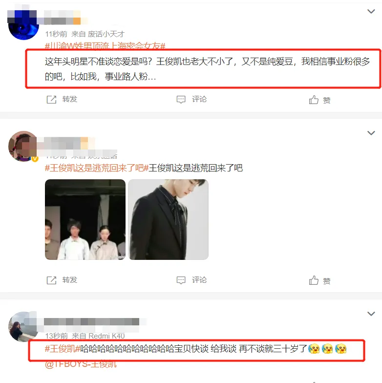 又有顶流塌房了?4月20日,狗仔曝瓜称川渝顶流W姓男星在上海密会女友,该女友还曾经私联过粉丝。 该话题一出引起吃瓜网友热议。王俊凯、王源、王鹤棣、吴磊等川渝W姓男艺人都被波及。 但很快就有网友扒出狗仔放出的男星运动图很像是王俊凯此前在上海加入品牌运动的现场图。 而且狗仔还发现该男星第二天发的旅店自拍和女方发的照片同等,疑似是在同一个地方拍摄的,恰恰王俊凯在3月19日运动的第二天也晒出了在旅店的自拍,死后配景和狗仔放出的图片非常相似。 因此网友推测这次的塌房顶流就是出生于重庆市的23岁男艺人王俊凯。随后网友扒出早在2022年的时间,就有人爆料吃到了王俊凯的恋情瓜。并晒出了疑似女方和王俊凯保镖的合照。 随后在2023年3月21日的时间更新称王俊凯上海运动竣事后和女友晤面了,和王俊凯3月份上海运动的时间线又对上了。 另有网友表现王俊凯在和董子健等朋侪聚会会议的时间把女友带去过,是很有气质的女孩子,圈内人透露王俊凯和女方是一见钟情。 另有曾经和王俊凯互助过的圈内人表现王俊凯在拍广告的苏息时间险些是手机不离手,每次苏息都会拿动手机发消息,其时另有同事挖苦王俊凯是不是在回女孩子消息。 不光云云,这位女生还被曝曾经和王俊凯的粉丝私联过,其时女生表现和王俊凯只是熟悉的“好朋侪”,粉丝和女方加上了挚友拜托女方给王俊凯送礼品,女方还答应了。如果粉丝知道当初偶然间发现的女生竟是“嫂子”,想想也是风趣。 不外也有王俊凯粉丝辟谣表现,固然照片中的女方和张小寒漫画爆料中的女方形象非常相似,但是原图女方的眼镜是相机滤镜不是真的眼镜,而且保镖也不像是王俊凯的保镖。 所谓的“女友视角”照片中的人也不是王俊凯,而是长相和王俊凯相似的一个网红。 而这种漫画式的曝瓜方式早在2021年的时间就有过一次了,其时也是以“川渝男顶流”作为男主,女方则是童星牛欣欣。网友也是通过某乎爆料扒出和牛欣欣疑似穿同款卫衣的王俊凯是“川渝男顶流”。 王俊凯牛欣欣的话题还登上过热搜,但随后牛欣欣就否认了谎言。 现在又是一个漫画恋情瓜曝光,王俊凯的词条跟着“川渝W姓男顶流上海密会女友”的话题灵敏窜上热搜第一。但现在王俊凯方对恋情听说还没有做出任何回应。 粉丝这边的反应也很耐人寻味,一边辟谣恋情一边表现王俊凯也到了该谈爱情的年事了,就算塌房也能继承。 而近几年王俊凯也很显着更方向演员的职业定位,信赖就算是真的有恋情也没什么不测的。以是照旧发起狗仔有锤放锤,炒一通转头没实锤也是很尴尬。 |