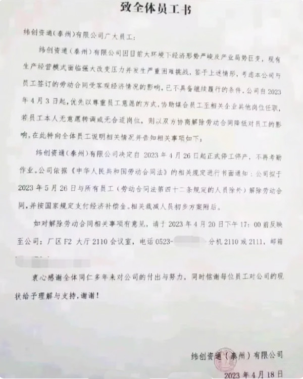 择要:4月20日,据中国台湾《经济日报》报道,举世第三大条记本电脑代工大厂纬创公布,旗下位于中国大陆的泰州厂因比年亏损,将于4月26日歇工停产。 4月20日消息,据中国台湾《经济日报》报道,举世第三大条记本电脑代工大厂纬创20日发布公告,公布旗下位于中国大陆的泰州厂因比年亏损,将于4月26日歇工停产。 纬创泰州厂公布“竣事业务” 纬创表现,为应对团体经贸局面的改变及客户需求厘革,纬创比年来徐徐调解举世产能布局,泰州厂因未达经济规模、比年亏损,经子公司董事会决定通过“竣事业务”。 纬创在4月18日向泰州厂员工发出的公告中也表现,因如今大情况下经济形势严肃及产业局面巨变,现有生产筹谋模式面临强盛改变压力,发生严肃困难挑衅。泰州厂与员工签订的劳动合约受到客观经济情况的影响,已不具备继承推行的条件。 公告表现,纬创泰州厂将自4月26日起正式歇工停产,拟于5月26日与全部员工排除劳动合约,并按规定付出经济赔偿金。 至于员工安置方面,公告指出,纬创泰州厂自本年4月3日起,优先以恭敬员工意愿的方式,帮忙员工转至干系企业其他岗位任职,若员工本人偶然愿转调或无得当岗位,则以双方协商排除劳动合约,低沉对员工的影响。 纬创夸大,已与泰州当田主管构造及干系单位积极互助,在合法合规的条件下,将会积极对子公司员工做最好的安置处理处罚。将来将以相近的昆山厂支应产能。 根据企查查数据表现,2021年纬创泰州厂参保员工人数为1475人。这也意味着此次泰州厂“竣事业务”或将导致上千人面临解约。 资料表现,纬创于2009年7月在中国江苏省泰州市投资近10亿美元创建了泰州厂——纬创资通(泰州)有限公司,厂区占地面积770余亩,生存区占地面积660余亩,总占地面积1400余亩,重要生产导光板、背光板、触控面板及模组、液晶面板及模组等光电产物(也是条记本电脑零部件)以及平板电脑、智能手机,客户重要为京东方、夏普、DELL、HP、SONY、ACER、遐想等着名企业。 据相识,纬创泰州厂创建14年以来,高峰时员工人数曾凌驾万人。2020年,该公司整年共完成工业产值14.5亿元,同比增长76.54%。但是,受2022年举世PC市场的大幅下滑,以及西欧客户推动供应链外迁等因素的影响,纬创泰州厂的业务也受到了不小的打击。纬创团体公布的财报表现,2022年团体整年条记本电脑出货达2120万台,同比下滑了17.19%。 纬创连续紧缩大陆产能 值得一提的是,比年来,在纬创大客户苹果连续推动下,纬创在连续低沉在中国大陆的产能,同时也在不绝扩大在印度的产能。 早在2020年7月,纬创就将其旗下的江苏纬创和昆山纬新的100%股权以33亿元出售给了立讯精密。此中昆山纬新是纬创在中国大陆唯一的一个iPhone生产基地。 当时,就有外媒报道称,包罗纬创、鸿海、和硕等在内的多家苹果供应商被施压,要求它们将15%至30%的生产业务搬出中国大陆。 在苹果推动下,纬创比年来不绝扩大在印度的产能。资料表现,纬创在印度的工厂重要位于卡纳塔克邦(Karnataka)的班加罗尔市区及郊区的纳拉萨普拉(Narasapura),重要为苹果代工便宜版的iPhone SE。此中,纳拉萨普拉厂区是纬创新建的厂区,占地220万平方英尺,有八条iPhone产线与1万名员工,包罗数千名工程师。 近期有听说称,印度大型财团塔塔团体(Tata Group)正和纬创睁开互助协商,操持在印度设立一家从事电子产物生产的合资公司,目标将纬创在印度的iPhone 产量提升至如今的5倍。而一旦上述协商告竣协议,塔塔将成为第一家生产iPhone 的印度企业。也有听说称,塔塔团体将以超6亿美元收购纬创印度iPhone组装厂。 编辑:芯智讯-浪客剑 |