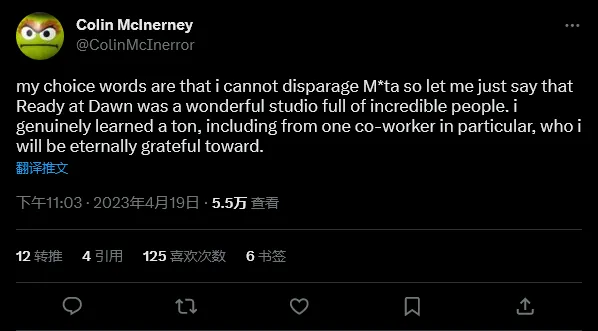 Quest VR 游戏《孤声(Lone Echo)》开发商 Ready at Dawn 据报道受到 Meta Quest 和 VR 全部者 Meta 最新一轮大型裁人的严肃影响,一名员工声称工作室三分之一的员工已被开除,此中还包罗工作室负责人。 根据《华盛顿邮报》开始报道,本日 Meta 的裁人大概会影响高达 4000 名员工,这是该公司客岁公布裁人 11,000 人后,在 2023 年再裁人 1 万人的既定目标的一部门。 《华盛顿邮报》报道称 Meta 在其最新一轮裁人中将“枪口”对准了“高技能员工”,包罗工程师和其他技能职员。而且自报道发布以来,又有员工体现 Ready at Dawn 和 Meta 收购的另一家开发商 Downpour Interactive 都收到了影响。 如今已经成为“前”技能筹划师的 Colin McInerney 在推特上写道:“我选词择句不能骂 M*ta,以是我只想说 Ready at Dawn 是一个很棒的工作室,包罗了很多超棒的人。我已经预备好了后路以是我会没事。但我的很多同事就不一样了。” 工作室的高级引擎/图形步伐员 Thomas Griebel 也在推特上透露了开发商裁人的规模,称“本日又 1/3 的工作室被开除,包罗工作室负责人。” 至于开发了 VR 战术筹划游戏《Onward》并于 2021 年被 Meta 收购的 Downpour Interactive,工作室高级筹划师 Michael Tsarouhas 在推特上写道:“我刚刚被 Meta 卷铺盖了,不再继续举行《Onward》开发。” 工作室关卡筹划师 Daan van Zelst 写道:“今台南市工作中暗中而艰巨的一天。我不敢信任如今发生的事变。” |