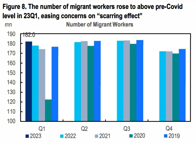 对于近期市场聚焦于经济“强复苏还是弱复苏”,外洋投行再次发出了积极信号。 继摩根大通、花旗、瑞银后,野村证券也将中国2023年GDP增速从5.3%上调至5.9%,并指出中国经济的复苏速率超出预期: 由于一季度GDP增长高于预期、国内服务斲丧的连续强劲以及出口数据惊喜,我们将2023年的年度GDP增长推测从5.3%再次上调至5.9%。 花旗银行则体现,在斲丧和服务业的领导下,中国正在顺遂实现复苏,且匿伏势头大概比数字所表现更强: 服务业和斲丧范畴是复苏的领头羊,分别贡献了3.1个百分点和3.0个百分点。我们将2023年年度GDP增长推测从之前的同比5.7%上调至6.1%。 此前,3月数据表现,物价指数增长较为痴钝,但与此同时新增信贷和社融大超预期,一度引发市场有关“通缩”讨论。 4月20日,人民银行在2023年一季度金融统计数据有关情况消息发布会上体现,中长期看,我国经济总供求根本平衡,货币条件公道适度,住民预期稳固,不存在长期通缩或通胀的底子。总体看,金融数据领先于经济数据,现实上反映出供需规复不匹配的近况。 值得注意的是,花旗在看好中国经济的陈诉中同样反驳了“通缩论”,来由是GDP平减指数回升,表明代价水平上升速率加速: GDP平减指数从2022年底的0.1%年比回升到0.5%年比,冲破了通缩担心。 GDP平减指数(GDP Deflator),又称GDP缩减指数,是指没有剔除物价变更前的GDP(现价GDP)增长与剔除了物价变更后的GDP(即稳定价GDP或实质GDP)增长之商(也但是名义GDP与真实GDP之比)。其盘算公式是:GDP平减指数=名义GDP/现实GDP X 100%。 GDP平减指数的盘算底子比CPI(住民斲丧代价指数)更广泛,涉及全部商品和服务,除斲丧外,还包罗生产资料和资源、收支口商品和劳务等。因此,这一指数可以或许更加准确地反映一样平常物价水平走向,是对代价水平最宏观的丈量。 对于经济复苏水平的判断,中信证券指出,从社融、出口、内需到GDP,一季度国内宏观经济数据有望团体超预期,且预计针对性政策将有望加码,重心大概在稳就业和稳信心。信赖经济正在从局部复苏走向全面复苏: 国内经济有望出现高增长、低通胀的组合:预计一季度GDP同比增长4.5~5%,二季度GDP同比增长8~10%。随着经济数据和A股财报的披露,市场的根本面预期正在不绝上修,成为短期市场的主驱动。 服务业复苏强劲野村证券指出,服务业在一季度体现出了强劲势头,而即将到来的五一假期有望进一步提振行业。 按名义代价盘算,餐饮服务零售贩卖在第一季度同比增长了13.9%,较第四序度的10.2%有所进步。 泉源:国家统计局 预测未来,我们预计面对面服务业的增长继承保持强劲。即将到来的五一黄金周是春节以来的首个多日假期。在线观光平台已经陈诉了即将到来的五一假期国内观光预订的激增,预订量已经到达疫情前的水平。 一些其他领先指标表明,在未来几个月内,服务业大概会保持强劲: 服务业采购司理人指数(PMIs)的新订单指数在近几个月连续攀升,表明对服务的需求强劲。 官方服务业PMI的新订单指数在3月份大幅上升至58.5,高于2月份的54.7和1月份的51.6,反映了新业务订单的连续增长。 同样,财新服务业PMI的新订单指数也在连续上升,从2月的54.9上升至3月的56.9,1月份为51.1,这表明由小型企业谋划的现场服务也有望在近期继承增长。 花旗指出,随着经济增长超出预期并由服务业引领的复苏,劳动力市场在3月份体现出显着的改善: 国家统计局数据表现,天下城镇观察赋闲率在3月份降至5.3%,低于2022年3月的5.8%,与2021年3月的5.3%持平。停止一季度末,农村外出务工劳动人数到达1.82亿人,较22Q1的1.78亿人和19Q1的1.77亿人有所增长。 这一数据有望大大缓解对中国劳动力市场“伤痕效应”的担心。 数据泉源:国家统计局,WIND,花旗银行 储备正常化斲丧提振经济的另一面,储备的正常化和就业的改善也大概会带来匿伏的增长。 对于此前引发讨论的“超额储备”标题,花旗体现,我国住民储备活动大概正在渐渐规复正常,这表现出了信心的规复: 都会家庭的可支配收入在2023年第一季度同比增长4.0%,而他们的付出增速更快,到达4.8%,这意味着第一季度的储备率为42.3%,高于2019年第一季度的38.5%。 储备的正常化在3月份的信贷和存款数据中体现出来。家庭信心的进一步提振大概有助于储备的正常化和过剩存款的开释。 在昨日的消息发布会上,人民银行观察统计司司长、消息发言人阮健弘指出,当前住户部分的斲丧和投资意愿在回升,储备意愿在降落,有利于住户存款更加稳固的增长: 本年一季度,人民银行城镇储户问卷观察表现,倾向于“更多斲丧”和“更多投资”的住民分别占23.2%和18.8%,比上季各增长0.5和3.3个百分点;倾向于“更多储备”的住民占58%,比上季镌汰了3.8个百分点。 3月当月住户部分存款同比多增2105亿元,这个多增额比1月份和2月份多增额显着收窄,1月份的多增额是靠近八千亿元,2月份大概是一万亿元,3月份同比多增2105亿元,多增的幅度还是在显着收窄。 |