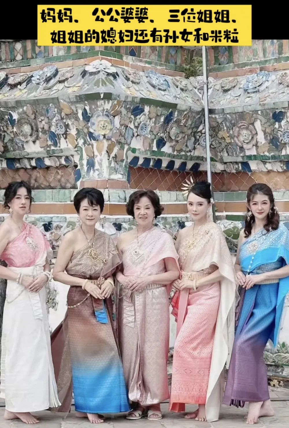 4月5日,伊能静分享了自己带妈妈、公公婆婆以及女儿等家人和工作职员到泰国观光的照片,全部加起来有足足15个人,秦昊没能参加,但奉上了祝福,还称“刷我滴卡”,与“萨瓦迪卡”发音靠近,相称幽默。 厥后伊能静又陆连续续地分享了不少行程。 4月21日,她再次更新视频,15个人全部都身穿泰国服饰出镜,局面相称壮观。 伊能静笑称公公是15人中唯一的男性,真是万花丛中一点绿,以是C位都让给他来站。 伊能静自称是导游,透露自己在出发前,就已经接洽好了扮装和拍摄的服务,这导游固然是业余的,但真的很负责。 此前伊能静就提到过偕行的有自己85岁的妈妈,尚有三位姐姐,没想到此中尚有姐姐的儿媳妇和孙女,而姐姐的孙女们看起来比伊能静的女儿小米粒小不了几岁,大概姐妹几人年事相差不小。 秦昊之以是没能到场如许的家庭运动,是由于正在拍戏。不得不说秦昊如今是受热捧的香饽饽,电视剧堪称拍一部火一部,比如《风中有朵雨做的云》《秘的角落》《酷爱的小孩》等等,想必如今脚本接得手软吧,同心用心一意搞奇迹。着实人在不在无所谓,卡到位了就好。 上一张百口福中,小米粒站在奶奶的身前,双眼被遮挡住。这几年开始,儿子哈利上大学那年,伊能静就开始不再曝光小女儿的正脸。 但是视频中有几秒钟时间,6岁的小米粒却不测曝光了高清正脸,和小时间相比堪称是大变样,差点没认出来。 小米粒戴着眼镜改正眼睛,正处在换牙期,饱满圆润的大额头很有福气,乍一看像极了奶奶,丝毫看不到秦昊和伊能静的影子,应该算是隔代遗传了。 网友大赞小米粒已经长成烈?挑的小玉人。 这是小米粒小时间被爸爸秦昊抱在怀里的容貌,脸颊肉嘟嘟的,如今长高变瘦了不少。 视频中,伊能静还分享了换装的过程,妆容非常风雅,笑容好少女。 女儿也被打扮了一番,母女俩手牵动手画风有爱。小米粒的身高都已经到了妈妈的胸口位置,从小学舞蹈的她气质很不错。 换上泰国服饰的伊能静非常养眼,出道的时间就长如许,如今55岁也照旧没有变,和44岁的秦昊倒是像极了同龄人。视频中的伊能静也依然还保持着娃娃音,各方面状态都非常年轻。 翻看品评区,还真的有网友在泰国偶遇了伊能静一家人,但是不美意思打搅。 小米粒被知心地挡住了脸,伊能静生图也很漂亮。 不外品评区里同样也有一些反面谐的声音,挖苦伊能静不敷苗条。 发起拿伊能静和55岁的人对比,而不是20来岁的二八佳人。年过半百还能保持如许的状态,估计做梦都会笑作声吧。 |