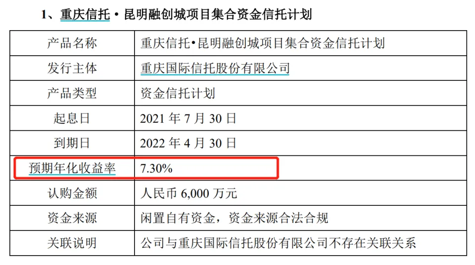 界面消息记者 | 邹文榕 界面消息编辑 | 又有上市公司买信托产物“踩雷”了。 “中招”的南华仪器(300417.SZ)不光没能收回本息,还为此计提了大额减值预备导致业绩大变脸。 这次失事的信托产物为重庆信托所发行的“重庆信托·昆明融创城项目聚集资金信托筹划”(下称:昆明融创城信托项目)。 据南华仪器2022年报披露,陈诉期内,公司实现归属于上市公司的股东净利润-3313.38万元,较客岁同期淘汰370.59%。业绩亏损除受行业政策厘革影响外,重庆信托发行的该款产物发生实质性违约也为此贡献了不少“负能量”。 具体来看,南华仪器表明称,2021年7月30日公司以自有资金6000万元认购了重庆信托发行的“昆明融创城信托项目“。 2022年4月30日,南华仪器收到重庆信托发来的昆明融创城项目《暂时公告》,由于债务人昆明融创城投资有限公司及其包管人资金出现运动性困难,到期未能归还乞贷,构成实质违约,信托筹划停止。 南华仪器表现,团结公司近期回款环境,从审慎性原则出发对“昆明融创城信托项目”理财产物计提减值预备3029.4万元,由此对公司净利润产生了较大影响。 团结南华仪器此前公告可以发现,该重庆信托信托发行的“昆明融创城信托项目”的产物起息日为2021年7月30日,到期日为2022年4月30日,预期年化收益率7.30%。因此,如若产物正常到期偿本付息,南华仪器该笔投资预计可赢利约328.5万元。 图源:南华仪器公告 然而,从如今披露的信息来看,南华仪器大概仅仅收回了1%的信托本金,别的部分全部打了“水漂”。 据此前信托投资人爆料,昆明融创城项目聚集资金信托筹划停止2022年4月30日,信托资金重要用于向昆明融创城投资有限公司发放乞贷以及受让重庆万达城投资有限公司对项目公司享有的债权,终极由项目公司向信托筹划归还乞贷本息和债权本息。 发生违约的分别是第一期和第五期信托,此中第五期存续信托规模79,995万元,于2022年4月30日到期;第一期存续信托规模120,000万元,于2022年8月7日到期,两期信托项目公司合计持有49,075万元。 据南华仪器此前公告,信托实质性违约后,重庆信托曾于2022年4月30日至2022年7月30日设置了三个月的“处理观察期”,但终极各方未能就昆明融创城宋品旅店(即该信托筹划项下抵押物 A2 地块上的构筑物)的转让代价以及转让价款分配方案告竣划一,导致首个处理观察期的还款目标和资产处理目标均未告竣。 终极项目公司仅向信托筹划还款600万元,停止2022年7月28日,信托专户现金余额1580.65万元,重庆信托根据信托约定及第一次暂时公告的信托财产分配方式及次序,向除项目公司以外的全体受益人分配1%的信托本金合计1509.20万元。2022年7月29日,南华仪器收到重庆信托的昆明融创城项目部分信托本金60万元。 重庆信托方面已启动司法处理步调,已向公证处申请出具实验证书,待取得实验证书后将立刻向法院申请实验存案,加快推进后续司法流程。 值得注意的是,南华仪器自此之后便未在干系公告中披露该信托筹划的后续处理环境,界面消息多次致电上市公司举行问询,但均无人接听。 重庆信托方面则向界面消息回应称,当前该款违约产物简直处于处理阶段,法院方面正在走干系流程。 据中国信托登记有限责任公司披露,重庆信托此前曾对该款违约的信托产物举行过信托更正登记。产物初次申请登记时间为2018年8月13日,公式日期为2018年8月20日。2022年2月15日,重庆信托发起更正登记,“重庆信托-昆明万达城项目聚集资金信托筹划”变更为“重庆信托·昆明融创城项目聚集资金信托筹划”,同时信托功能从投资类变更为融资类。 图源:中国信托登记有限责任公司 此前不久,重庆信托还刚因信息披露等题目收到羁系处罚。 据2023年3月31日重庆银保监局公告表现,因重庆信托存在——1.非清洁转让信贷资产,粉饰表表里资产质量;2.内部风险控制欠审慎;3.向投资人披露信息不全面不正确;4.信托资金被用于房地产开发企业缴纳地皮出让款。根据《中华人民共和国银行业监视管理法》第四十六条、第四十八条,重庆银保监局对重庆信托机构自己处以罚款200万元,干系责任人罗怀建被处以告诫并罚款5万元。 官网信息表现,重庆信托建立于1984年10月,于2001年启动改制重组。在先后五轮增资后,公司注册资源金从初始3500万元提拔至150亿元,为全行业最高。公司重要股东为:同方国信投资控股有限公司、国寿投资保险资产管理有限公司和上海淮矿资产管理有限公司。 停止如今,重庆信托官网仍未披露2022年年报,但此前银行间市场披露的重庆信托2022年未经考核业绩数据表现,2022年重庆信托实现营收51.48亿元,同比下滑34.96%;净利润同比降落56.6%至13.52亿元。 |