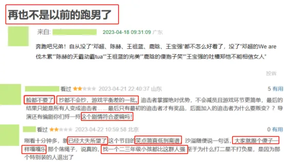 还记得那些年风靡天下的爆款综艺吗? 其时间,网络期间还未遍及,周末的夜晚险些全部人都守在电视机前,等待新一期节目的到临。 首当其冲,固然是年轻观众最爱的芒果台。 1997年《快乐大本营》横空出世,李湘、何炅、李维嘉三人,成为了内娱最火的“铁三角”,其时真正的顶流。 它的出现,不光让湖南台立即称霸各大卫视,全新的内容和情势更是重新界说了“娱乐”这一词汇。 主持的情势也焕然一新,乃至引起了春晚主持的厘革。 如今的综艺都靠明星顶人气,其时间超一线顶流但是都挤破头进《快乐大本营》为本身造势。 随后,李湘退出,谢娜、吴昕与杜海涛相继参加,“快乐家属”应运而生。 只管存在不少争议,但不可否认的是这五个人仍然是浩繁粉丝每周六的快乐源泉。 2021年,《快乐大本营》正式与观众告别。 就如许20多年的老朋侪说了再见,一代人的芳华影象就此落幕。 芒果台渐渐走下神坛,不再是遥遥领先、触不可及的星。 而其他卫视也乘隙打造了本身的王牌综艺。 《奔驰吧!兄弟》带着浙江台横冲直撞,成为了综艺界的另一大巨头。 它一脚踹开了内娱户外真人秀的大门。 观众缘爆棚的邓超,力大如“牛”的猛男李晨,凭“曾小贤”一角跻身一线的陈赫,其时亚洲都着名的杨颖与“小猎豹”郑恺。 再加上王宝强和王祖蓝,这两对活宝。 一部综艺,整整7个人,观众能见地到差异地域的风光与美食,新颖搞笑、接地气,视觉结果拉满。 每期差异的飞行高朋,更是让每次都看到不一样的亮点。 不火都天理难容。 背面鹿晗的参加更是将节目推向了高潮。 不知不觉,这档综艺陪伴了我们整整七年。 如今已经来到了第十一季,正确的说,是改名后的《奔驰吧第七季》。 第一期表态,首播口碑也奇怪出炉。 主持阵容早已发生翻天覆地的变革,如今的他们还会如七年前那样,热情汹涌地奔驰吗? 一、收视率夺冠、游戏量拉满,却被吐槽:烂得表里如一《奔驰吧第七季》的固定高朋有李晨、Angelababy、郑恺、沙溢、白鹿、周深、范丞丞尚有宋雨琦。 第一期的飞行高朋是韩庚、苏醒、武大靖、张婧仪。 这些人大部分都很熟,以是在节目中的互动比力天然。 收视坦白接斩获天下综艺档冠军,就连湖南卫视都被甩在了背面。 1.分队 整个先导片一个多小时,前半部分由新成员范丞丞挨个“认人”。 第一个要找的,固然是前期宣传的重点,范丞丞与李晨。 着实也没那么尴尬,这几个内里有成员的房间,也有工作职员的屋子。 一个人在镜头里溜达了整整34分钟,人数终于凑齐发车。 作为“跑男”,队伍固然分为追与被追,背面便是阵营的分类。 先将十二个人分成三组,每组的每人各选一个视频举行观看,根据视频推测对应的文物。 率先完成的两组可以或许得到关键道具。 这两个得到道具的组就是“神鸟队”,另一组是追击队。 2.游戏 第一个游戏叫“飞翔吧神鸟”。 此中一队须要借助绳子荡到柱子上,几个人站稳后。 另一队同样借助绳子发起打击,用各种方法让对方跌落柱子,霸占柱子。 哪一队成员存活多,谁就得胜。 两队匀称分成两个小组,以2V4的情势,开始两局游戏。 从配景来看有点像年事较低的儿童玩的项目,实际上照旧有点难度的。 好比较为瘦小的周深,体重太轻很难荡到对面。 于是李晨和范丞丞架着他,借力帮他悠到柱子那边。 你别说,还真有点结果。 他一下子就悠到了最远的郑恺那边,腿一夹伸手拽向他的衣领。 只不外如许的姿势,人家一推也就给推下去了。 下一个李晨出击,柱子上的成员“瑟瑟发抖”开始尖叫。 他原来想站稳后举行攻击,结果到了第一个柱子被导演告知,站稳后就不能发起打击了。 防守瓜代后,另一队更拉胯。 四个人还没开始就已经竣事了,直接往地上扎,全场只能闻声女生的嚎啼声,三军覆没。 末了把武大靖和李晨安排到一起肯定是最有看点的。 在武大靖的打击下,李晨被控制住,两人双双倒下,也算是给游戏画个句号了。 在等待的时间,追击队做了个根据首字母组词的小游戏。 成员还约请了路人一起参加。 简单没什么意义,但也算是和群众互动了。 另一边神鸟队根据节目组给的标识照片,推测各个使命地点。 第一个使命点游戏是,在跑步机上跑一分钟,然后一口吻朗读文章。 四个人须要接力一轮将文章读完。 那边追击队的使命是约请市民踢毽子。 须要全部人都要踢到毽子,不落地就乐成了。 神鸟队此时已经到达了下一个使命点。 游戏分为两个,此中一个是“掷不出的骰子”。 不外规则还没先容完,追击队就已经找来了。 另一个游戏是“胡不了的麻将”。 四排麻将都缺一张可以胡的牌,说出全部能胡的那张牌,就完成使命了。 接着是要在路人中,找到八个符合列出题目的人并署名就可以。 下面是“砸不完的核桃”。 一个人放核桃,另一个人拿着锤子砸,25个才算及格。 这个确实比力难,不光反应要敏捷,还要把握好力度。 尚有一个“套不进的呼啦圈”。 就是两个人向五米高的柱子扔呼啦圈,套中十个过关。 末了就是“告急刺激”的抓人了。 一个综艺节目九个游戏,这看似炸裂的计划实则每一个都透着导演的“江郎才尽”。 先不说这规则怎么样,踢毽子、直接提问式找人、套呼啦圈、掷骰子以及麻将这种游戏都能放进来。 网友大胆开麦:烂得表里如一。 二、“老”人尴尬、笑点低,李晨一句话上热搜七年了,只有李晨、杨